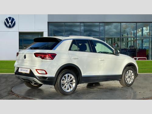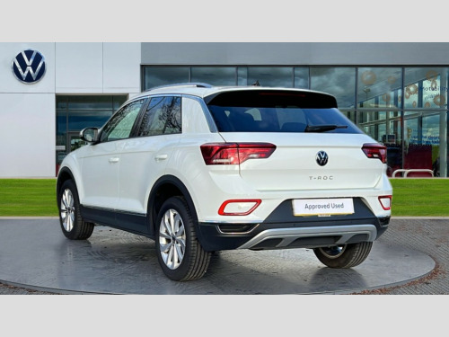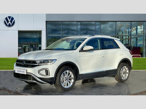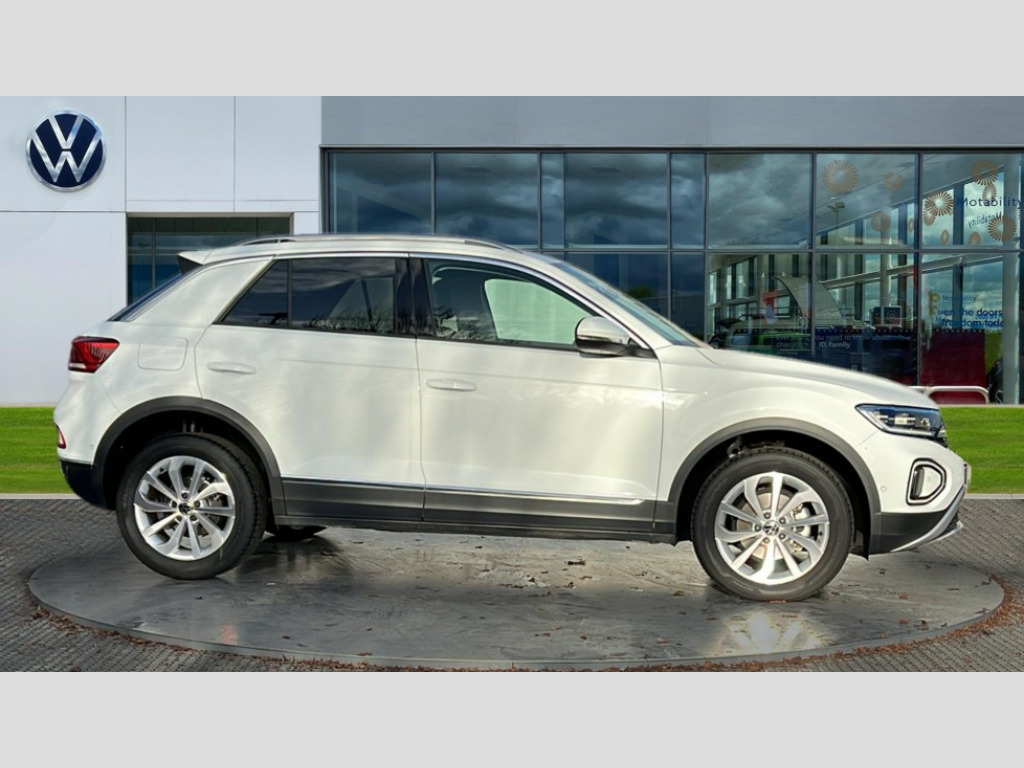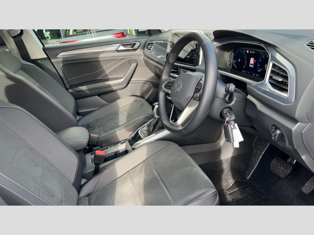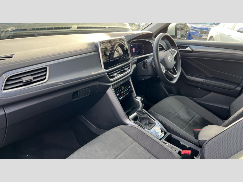 Volkswagen T-Roc 1.5 TSI Style 5dr DSG 10.25" Digital cockpit pro, Advanced driver attention and drowsiness monitor, Emergency call service, Lane keeping system Lane Assist, Mobile phone interface, Modified key software - reduce switch off time for key status change to Long no motion, Online services, Park assist including front and rear parking sensors, Power assisted speed sensitive steering, Service interval indicator, Tailgate/trunk lid release from outside, Think blue trainer driver tips and journey analysis, Warning sound and light for front seatbelts unfastened, Wireless app connect, Battery regeneration during braking, Start/stop function with battery regeneration, DAB Digital radio, Diversity antenna for FM reception, Front and rear 6 speakers, Music playback - MP3, WMA and AAC files, Premium USB cable in choice of either Apple or Android smartphone compatibility, SD card slot, Simultaneous pairing of 2 compatible mobile devices, Title and cover art display, We Connect and We Connect Plus functionality, Auto dimming interior rear view mirror, Automatic hazard lights activation under emergency braking, Automatic headlight control with LED separate daytime running lights with coming/leaving home function, Body colour sports bumpers with silver metallic underbody fascia, Body coloured exterior mirror housings and door handles, Dynamic headlight range control with self adjusting whilst driving, Electrically adjustable and heated door mirrors, Extended roof spoiler, Exterior mirrors aspherical on driver side, convex on front passenger side, External USB type C socket and charging sockets, Front windscreen wiper with intermittent wipe and 4 position delay, Heated rear window, LED 3rd brake light, LED rear combination lamps, LED rear number plate lights, Light mode for poor weather, rain, fog or snow, Power windows with comfort operation and circuit breaker, Privacy glass for rear side windows and rear window, Rain sensor, Rear exhaust tailpipe, Rear fog light on one side and reversing lights on both sides, Rear side wing doors, Rear wash/wipe with intermittent wipe setting, Remote electrically foldable door mirrors, puddle lights and reverse activated passenger's door mirror, 12V power socket in centre console, 3 rear head restraints, 3 seat bench in 2nd row, 4 load lashing points in luggage compartment, Air care climatronic air conditoning system with active combination filter and 2-zone temperature control, Chrome plated radiator grille inserts, air vent surrounds and light switch surrounds, Door and side trim panel with leatherette insert, Drawer under drivers seat, Front + rear carpet mats, Front centre armrest, Front comfort sports seats, Front cupholders x 2, Front footwell illumination, Front seat back storage pockets, Glove compartment door with light, Instrument lighting, white adjustable panel illumination, Interior ambient lighting and surround lighting, Interior light delay, Isofix child seat preparation, Leather gearshift handle, LED interior light with switch off delay/dimmer and 2 front/rear LED reading lights, Load-through provision with cup holder when folded down ('Unsplit rear seat bench, split folding backrest, with centre armrest), Luggage compartment lighting, Non-folding front passenger seat backrest, Single front passenger seat, Storage compartment in left and right luggage area, Storage compartment in rear doors, Storage compartments in driver and front passenger doors, Sunvisors with illuminated vanity mirrors, Variable boot floor, height adjustable and removable, Driver assistance pack without proactive passenger protection - T-Roc, 3 point height adj front seatbelts + pretensioners, 3 point seatbelts in outer rear with ECE label, ABS, Child locks on rear doors, City emergency braking and pedestrian monitoring, Driver and front passenger airbag with front passenger airbag deactivation, Driver and front passenger safety-optimised head restraints, Drivers seatbelt reminder, Electronic parking brake, Electronic Stability Control (ESC) inc EDL (Electronic Differential Lock) and ASR (Traction Control), Front and rear passengers curtain airbag system including front side airbags, Predictive pedestrian protection, Rear disc brakes, Two tone horn, Tyre pressure loss indicator, Volkswagen roadside assistance, Deep iron grey decorative inserts in dashboard, centre console and front door trim panels, Trims for alloy wheels