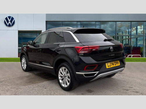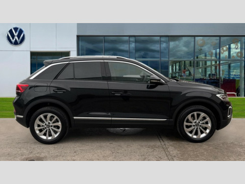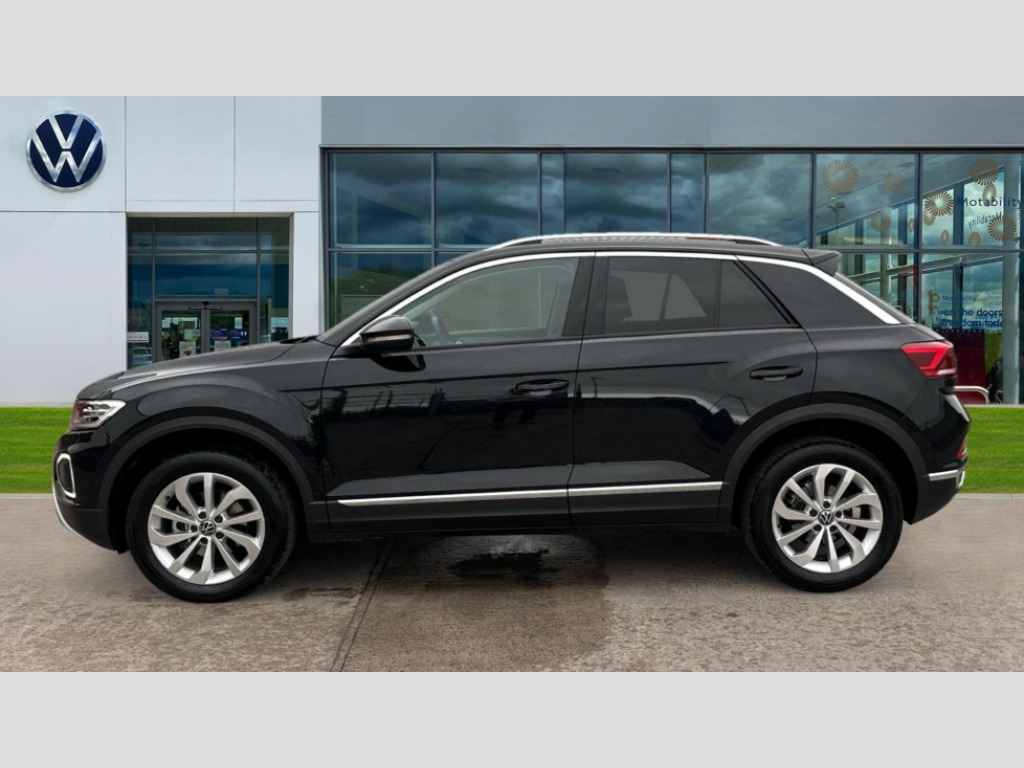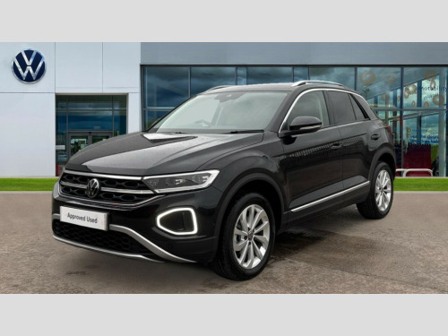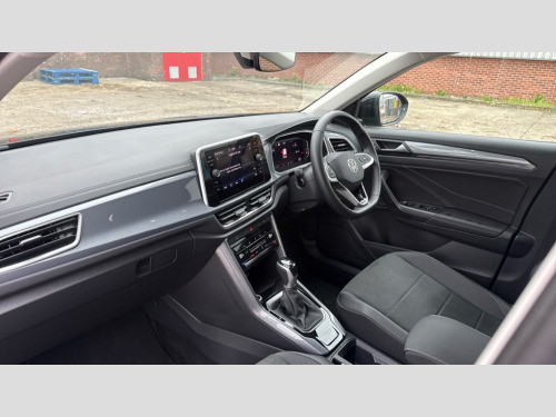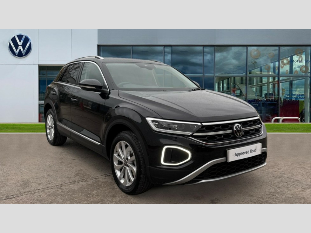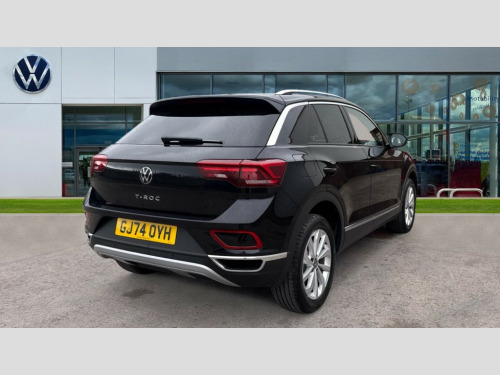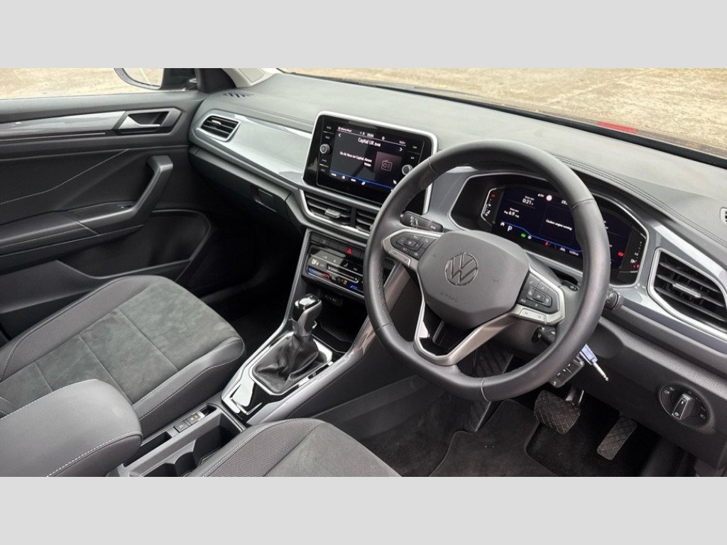 Volkswagen T-Roc 1.5 TSI Style 5dr DSG 10.25" Digital cockpit pro, Advanced driver attention and drowsiness monitor, Emergency call service, Lane keeping system Lane Assist, Mobile phone interface, Modified key software - reduce switch off time for key status change to Long no motion, Online services, Park assist including front and rear parking sensors, Power assisted speed sensitive steering, Service interval indicator, Tailgate/trunk lid release from outside, Think blue trainer driver tips and journey analysis, Warning sound and light for front seatbelts unfastened, Wireless app connect, Wireless Smartphone charger, Battery regeneration during braking, Start/stop function with battery regeneration, DAB Digital radio, Diversity antenna for FM reception, Front and rear 6 speakers, Music playback - MP3, WMA and AAC files, Premium USB cable in choice of either Apple or Android smartphone compatibility, SD card slot, Simultaneous pairing of 2 compatible mobile devices, Title and cover art display, We Connect and We Connect Plus functionality, Auto dimming interior rear view mirror, Automatic hazard lights activation under emergency braking, Automatic headlight control with LED separate daytime running lights with coming/leaving home function, Body colour sports bumpers with silver metallic underbody fascia, Dynamic headlight range control with self adjusting whilst driving, Electrically adjustable and heated door mirrors, Extended roof spoiler, Exterior mirrors aspherical on driver side, convex on front passenger side, External USB type C socket and charging sockets, Front windscreen wiper with intermittent wipe and 4 position delay, Heated rear window, LED 3rd brake light, LED rear combination lamps, LED rear number plate lights, Light mode for poor weather, rain, fog or snow, Power windows with comfort operation and circuit breaker, Rain sensor, Rear exhaust tailpipe, Rear fog light on one side and reversing lights on both sides, Rear side wing doors, Rear wash/wipe with intermittent wipe setting, Remote electrically foldable door mirrors, puddle lights and reverse activated passenger's door mirror, 12V power socket in centre console, 3 rear head restraints, 3 seat bench in 2nd row, 4 load lashing points in luggage compartment, Air care climatronic air conditoning system with active combination filter and 2-zone temperature control, Chrome plated radiator grille inserts, air vent surrounds and light switch surrounds, Door and side trim panel with leatherette insert, Drawer under drivers seat, Front + rear carpet mats, Front centre armrest, Front comfort sports seats, Front cupholders x 2, Front footwell illumination, Front seat back storage pockets, Glove compartment door with light, Instrument lighting, white adjustable panel illumination, Interior ambient lighting and surround lighting, Interior light delay, Isofix child seat preparation, Leather gearshift handle, LED interior light with switch off delay/dimmer and 2 front/rear LED reading lights, Load-through provision with cup holder when folded down ('Unsplit rear seat bench, split folding backrest, with centre armrest), Luggage compartment lighting, Non-folding front passenger seat backrest, Single front passenger seat, Storage compartment in left and right luggage area, Storage compartment in rear doors, Storage compartments in driver and front passenger doors, Sunvisors with illuminated vanity mirrors, Variable boot floor, height adjustable and removable, Driver assistance pack without proactive passenger protection - T-Roc, 3 point height adj front seatbelts + pretensioners, 3 point seatbelts in outer rear with ECE label, ABS, Child locks on rear doors, City emergency braking and pedestrian monitoring, Driver and front passenger airbag with front passenger airbag deactivation, Driver and front passenger safety-optimised head restraints, Drivers seatbelt reminder, Electronic parking brake, Electronic Stability Control (ESC) inc EDL (Electronic Differential Lock) and ASR (Traction Control), Front and rear passengers curtain airbag system including front side airbags, Predictive pedestrian protection, Rear disc brakes, Two tone horn, Tyre pressure loss indicator, Volkswagen roadside assistance, Trims for alloy wheels