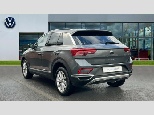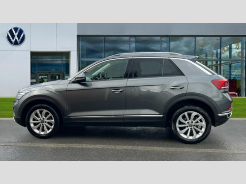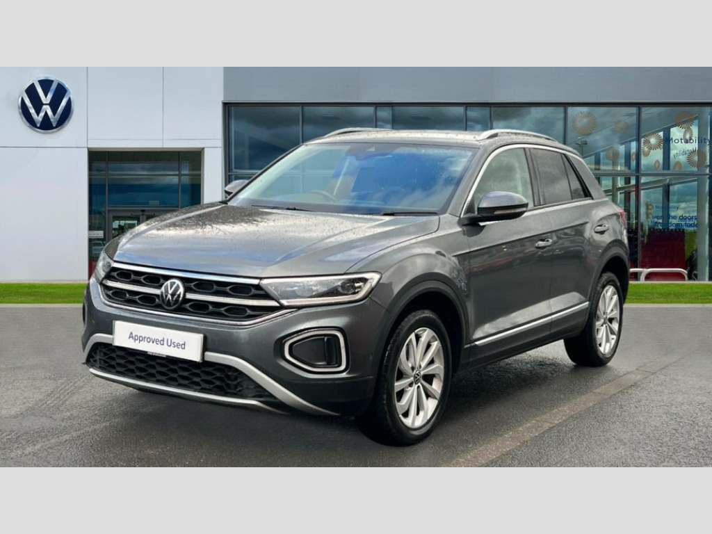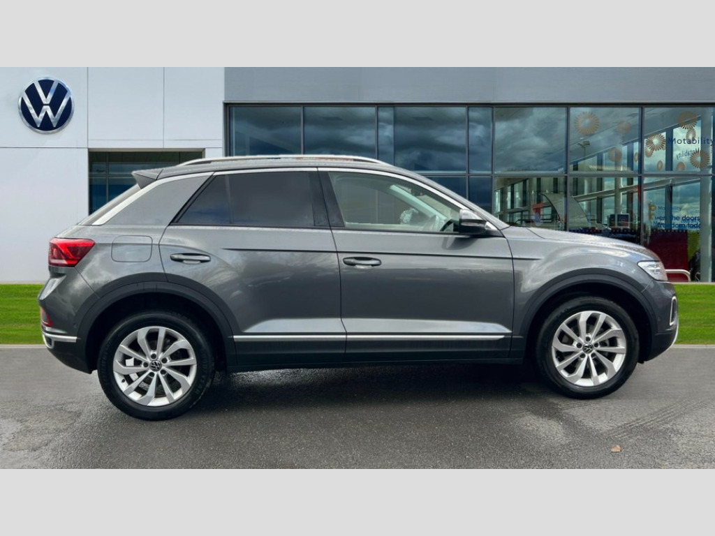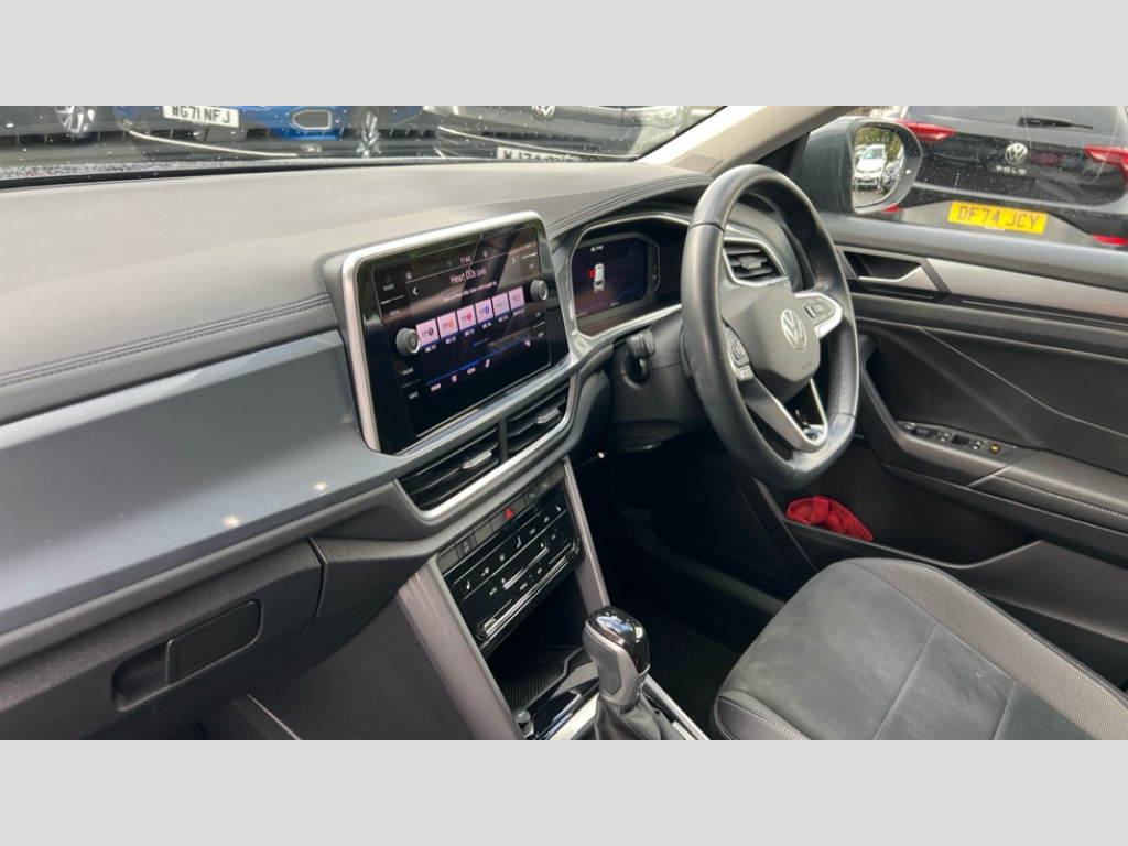 Volkswagen T-Roc 1.5 TSI Style 5dr DSG 10.25" Digital cockpit pro, Bluetooth mobile phone interface, Driver alert system with fatigue detection, Driver tips and journey analysis, Emergency call service, Lane keeping system Lane Assist, Modified key software - reduce switch off time for key status change to Long no motion, Online services, Park assist including front and rear parking sensors, Service interval indicator, Tailgate/trunk lid release from outside, Think blue trainer driver tips and journey analysis, Warning sound and light for front seatbelts unfastened, Wireless app connect, Battery regeneration during braking, Start/stop function with battery regeneration, Diversity antenna for FM reception, Front and rear 6 speakers, Music playback - MP3, WMA and AAC files, Premium USB cable in choice of either Apple or Android smartphone compatibility, SD card slot, Simultaneous pairing of 2 compatible mobile devices, Title and cover art display, We Connect and We Connect Plus functionality, 3rd brake light, Auto dimming interior rear view mirror, Automatic hazard lights activation under emergency braking, Automatic headlight control with LED separate daytime running lights with coming/leaving home function, Body colour sports bumpers with silver metallic underbody fascia, Dynamic headlight range control with self adjusting whilst driving, Extended roof spoiler, Exterior mirrors aspherical on driver side, convex on front passenger side, External USB type C socket and charging sockets, Front windscreen wiper with intermittent wipe and 4 position delay, Heated rear window, LED Plus headlamps, LED rear combination lamps, LED rear number plate lights, LED tail lamp rear comination lamps, Light mode for poor weather, rain, fog or snow, Power windows with comfort operation and circuit breaker, Rain sensor, Rear exhaust tailpipe, Rear fog light on one side and reversing lights on both sides, Rear side wing doors, Rear wash/wipe with intermittent wipe setting, Remote electrically foldable door mirrors, puddle lights and reverse activated passenger's door mirror, 12V power socket in centre console, 3 rear head restraints, 3 seat bench in 2nd row, 4 load lashing points in luggage compartment, Air care climatronic air conditoning system with active combination filter and 2-zone temperature control, Chrome plated radiator grille inserts, air vent surrounds and light switch surrounds, Door and side trim panel with leatherette insert, Drawer under drivers seat, Front + rear carpet mats, Front centre armrest, Front comfort sports seats, Front cupholders x 2, Front footwell illumination, Instrument lighting, white adjustable panel illumination, Interior ambient lighting and surround lighting, Interior light delay, Isofix child seat preparation, Leather gearshift handle, LED interior light with switch off delay/dimmer and 2 front/rear LED reading lights, Load-through provision with cup holder when folded down ('Unsplit rear seat bench, split folding backrest, with centre armrest), Luggage compartment lighting, Non-folding front passenger seat backrest, Single front passenger seat, Storage compartment in left and right luggage area, Storage compartment in rear doors, Storage compartments in driver and front passenger doors, Sunvisors with illuminated vanity mirrors, Variable boot floor, height adjustable and removable, Driver assistance pack without proactive passenger protection - T-Roc, 3 point height adj front seatbelts + pretensioners, 3 point seatbelts in outer rear with ECE label, ABS, Child locks on rear doors, Driver and front passenger airbag with front passenger airbag deactivation, Driver and front passenger safety-optimised head restraints, Drivers seatbelt reminder, Electronic parking brake, Electronic Stability Control (ESC) inc EDL (Electronic Differential Lock) and ASR (Traction Control), Front and rear passengers curtain airbag system including front side airbags, Front assist with city emergency braking and pedestrian monitoring, Front seat side impact airbags, Predictive pedestrian protection, Rear disc brakes, Single tone horn, Tyre pressure loss indicator, Volkswagen roadside assistance, Alarm with interior protection, Anti-theft alarm system with interior monitoring, backup horn, and towing protection, Remote central locking with SAFELOCK, radio remote control with 2 remote control folding keys, Trims for alloy wheels
