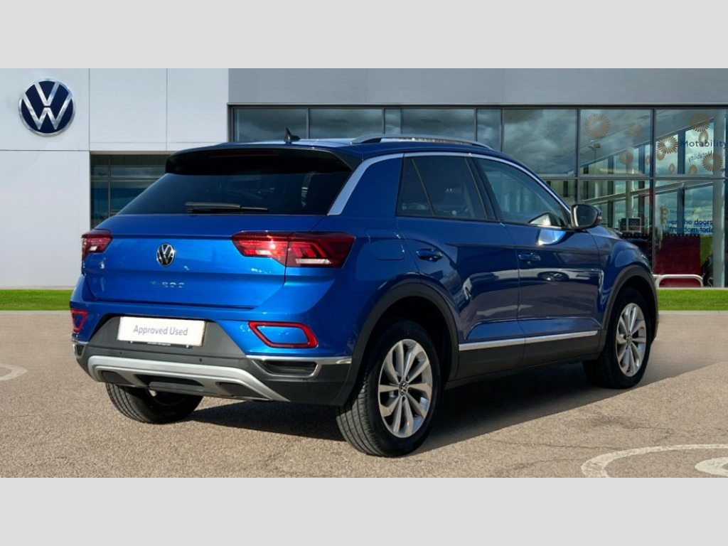 This 2023 Volkswagen T-Roc TSI Style presents an exceptional ownership proposition with an incredibly low mileage of just 6899 miles, having had only one owner from new and benefiting from Volkswagen manufacturer approval. This stylish compact SUV is powered by an efficient 1.5 litre Euro 6 compliant petrol engine, offering a compelling blend of performance and economy. Inside, you'll find the Discover Media Navigation System, complete with streaming and internet capabilities, alongside a Bluetooth mobile phone interface for seamless connectivity. The T-Roc also boasts advanced convenience and safety features, including Park Assist with front and rear parking sensors and cameras, ensuring effortless manoeuvring in any situation.