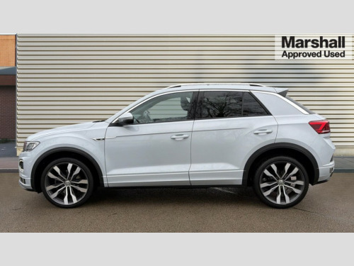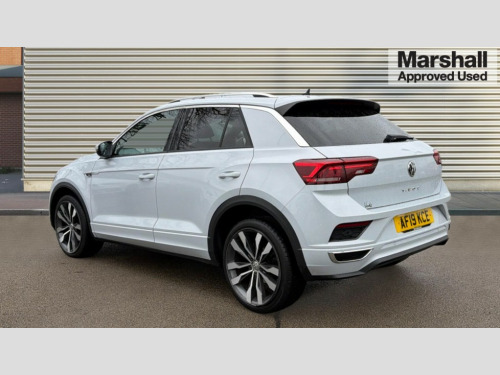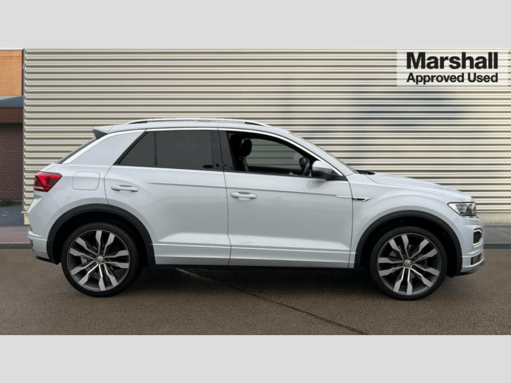 Volkswagen T-Roc 1.6 TDI R-Line 5dr 2 USB connection charging sockets, Active Info Display, 10.3" high resolution TFT dash display screen with customised information, Adaptive cruise control, App-Connect, Automatic start/stop system, Bluetooth telephone and audio connection for compatible devices, Car information display, Car-Net Security and Service, Discover navigation, 8" touch screen navigation/infotainment system with Car-Net, European map, CD/radio, 2D/3D map and speed limiter, Driver alert system with audible and visual fatigue detection system, Driver profile selection, Front assist, radar sensor controlled distance monitor, city emergency braking + predictive pedestrian protection, Lane assist, Multifunction computer with visual gear change recommendation for fuel consumption, Progressive power assisted steering, Service interval indicator, Think blue trainer driver tips and journey analysis, Voice activation, Warning sound and light for doors and tailgate open, Warning sound and light for front seatbelts unfastened, Battery regeneration during braking, Misfuel prevention device for diesel engine, Bluetooth - Simultaneous pairing of 2 compatible mobile devices, DAB Digital radio, Dynamic navigation based on TMC+, Multi device interface (MDI) with USB connection, Music playback - MP3, WMA and AAC files, Premium USB cable in choice of either Apple or Android smartphone compatibility, SD card slot, SMS functionality - read, compose and send SMS messages using touch-screen display, Three route options - Fast, Short, Eco, Title and cover art display, Auto dimming interior rear view mirror, Automatic hazard lights activation under emergency braking, Black grained lower door protectors, Black grained wheel arches, Body colour door handles, Body colour rear roof spoiler, Chrome effect left and right trapezoid exhaust tailpipe fascia surround, Chrome trim on upper and lower radiator grille, Door mirror integrated indicators, Dusk sensor, Electrically foldable, adjustable and heated door mirrors with puddle lights and reverse activated kerb-view adjustment on passenger's door mirror, Front and rear electric windows, Front fog lights with static cornering function, Front windscreen wiper with intermittent wipe and 4 position delay, Fully galvanised body, Heated rear window, High level 3rd brake light, LED darkened rear light clusters, LED dipped and main beam headlights with automatic range adjustment including signature LED daytime running lights, LED rear number plate lights, Manual coming/automatic leaving home lighting function, Matt chrome finish roof rails, Rain sensor, Rear tinted glass from B-pillar backwards approx 65% tinted, Rear windscreen washer and wiper with interval delay, 12V socket in centre console storage area, 2 LED front and rear reading lights, 3 rear head restraints, 4 load lashing points in luggage compartment, Aluminium pedals, Ambient lighting in front footwell and light strips below trim in front doors, Black roof lining and sun visors, Carbon flag cloth upholstery, Climate control - 2 zone electronic air conditioning with automatic air recirculation and allergy filter, Drawer under drivers seat, Front + rear carpet mats, Front centre armrest with storage compartment, longitudinal and height adjustable and two rear air vents, Front cupholders x 2, Front footwell illumination, Front seat back storage pockets, Front sport seats, Glovebox, Height adjustable front seats, Height/reach adjust steering wheel, Illuminated vanity mirrors, Instrument lighting, white adjustable panel illumination, Interior light delay, Isofix easy fit child seat preparation for 2 outer rear seats, Load through provision with single cup holder when folded down, Luggage compartment cover, removable, Luggage compartment lighting, R Line badge, Split folding rear seat backrests with centre armrest, Storage compartment in left and right luggage area, Storage compartment in rear doors, Storage compartments in driver and front passenger doors, Three spoke multi-function leather trimmed steering wheel and gearknob, Unique R Line door sill protectors, R line styling pack - T-Roc, Winter pack - T-Roc, 3 rear three point seatbelts, ABS, Driver and front passenger safety-optimised head restraints, Electronic parking brake with auto hold, ESC with EDL, ASR, EDTC and trailer stabilisation function, Front and rear curtain airbags, driver and front passenger airbags with passenger deactivation switch and front side impact airbags, Rigid safety cell with front and rear crumple zones, Three point height adjust front seatbelts + pretensioners, Tyre pressure loss indicator, Ventilated front and rear disc brakes, Volkswagen roadside assistance, Alarm with remote central locking and interior protection, Electronic engine immobiliser, Remote central locking with 2 remote folding keys, Caribou grey decorative inserts in dash and door panel, 19" Suzuka alloy wheels with low rolling resistance tyres and anti wheel bolts, Steel space saver spare wheel