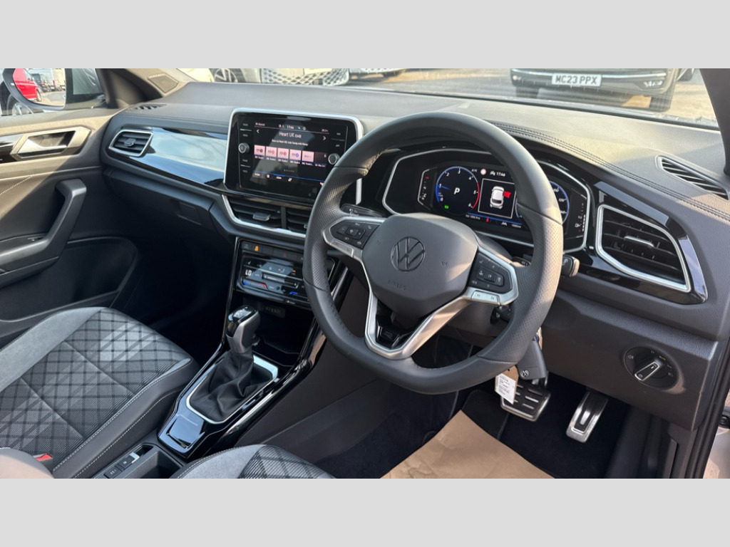 Volkswagen T-Roc 2.0 TDI 150 EVO R-Line 5dr DSG 10.25" Digital cockpit pro, Advanced driver attention and drowsiness monitor, Dynamic road sign display, Emergency call service, Lane keeping system Lane Assist, Mobile phone interface, Modified key software - reduce switch off time for key status change to Long no motion, Online services, Park assist including front and rear parking sensors, Service interval indicator, Tailgate/trunk lid release from outside, Think blue trainer driver tips and journey analysis, Warning sound and light for front seatbelts unfastened, Wireless app connect, Battery regeneration during braking, Start/stop function with battery regeneration, DAB Digital radio, Diversity antenna for FM reception, Front and rear 6 speakers, Music playback - MP3, WMA and AAC files, Premium USB cable in choice of either Apple or Android smartphone compatibility, SD card slot, Simultaneous pairing of 2 compatible mobile devices, Title and cover art display, We Connect and We Connect Plus functionality, Auto dimming interior rear view mirror, Automatic hazard lights activation under emergency braking, Automatic headlight control with LED separate daytime running lights with coming/leaving home function, Body coloured exterior mirror housings and door handles, Electrically adjustable and heated door mirrors, Extended roof spoiler, Exterior mirrors aspherical on driver side, convex on front passenger side, External USB type C socket and charging sockets, Front windscreen wiper with intermittent wipe and 4 position delay, Heated rear window, LED 3rd brake light, LED rear combination lamps, LED rear number plate lights, Power windows with comfort operation and circuit breaker, Privacy glass for rear side windows and rear window, R-Line design body coloured bumpers, Rain sensor, Rear exhaust tailpipe, Rear fog light on one side and reversing lights on both sides, Rear side wing doors, Rear wash/wipe with intermittent wipe setting, Remote electrically foldable door mirrors, puddle lights and reverse activated passenger's door mirror, 12V power socket in centre console, 3 rear head restraints, 3 seat bench in 2nd row, 4 load lashing points in luggage compartment, Air care climatronic air conditoning system with active combination filter and 2-zone temperature control, Black roof lining, Chrome plated decorative trims, Chrome plated radiator grille inserts, air vent surrounds and light switch surrounds, Door and side trim panel with leatherette insert, Front + rear carpet mats, Front centre armrest, Front cupholders x 2, Front footwell illumination, Front reading light, Front scuff plates with R Line logo, Front seat back storage pockets, Glove compartment door with light, Instrument lighting, white adjustable panel illumination, Interior ambient lighting and surround lighting, Interior light delay, Isofix child seat preparation, Leather gearshift handle, Load-through provision with cup holder when folded down ('Unsplit rear seat bench, split folding backrest, with centre armrest), Luggage compartment lighting, Single front passenger seat, Stainless steel pedals, Storage compartment in left and right luggage area, Storage compartment in rear doors, Storage compartments in driver and front passenger doors, Sunvisors with illuminated vanity mirrors, Variable boot floor, height adjustable and removable, Driver assistance pack without proactive passenger protection - T-Roc, 3 point height adj front seatbelts + pretensioners, 3 point seatbelts in outer rear with ECE label, ABS, Child locks on rear doors, City emergency braking and pedestrian monitoring, Driver and front passenger airbag with front passenger airbag deactivation, Driver and front passenger safety-optimised head restraints, Drivers seatbelt reminder, Electronic parking brake, Electronic Stability Control (ESC) inc EDL (Electronic Differential Lock) and ASR (Traction Control), Front and rear passengers curtain airbag system including front side airbags, Hill start assist, Predictive pedestrian protection, Rear disc brakes, Two tone horn, Tyre pressure loss indicator, Volkswagen roadside assistance, Piano black decorative inserts in dashboard and front door trim panels, Trims for alloy wheels