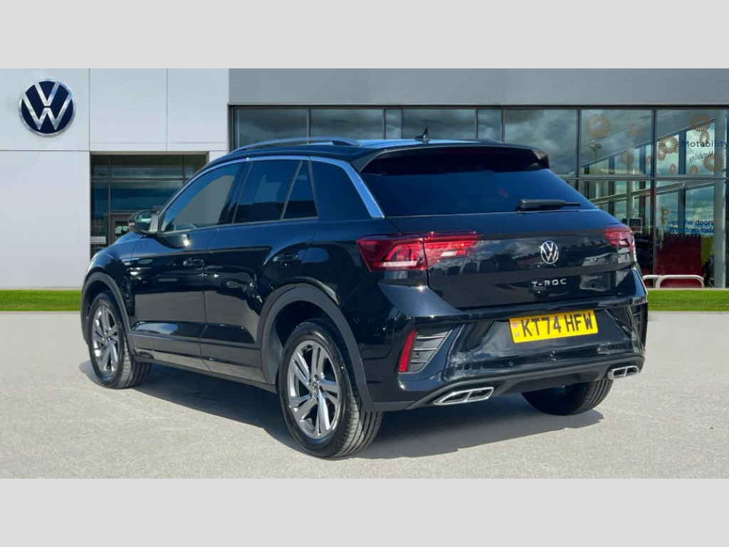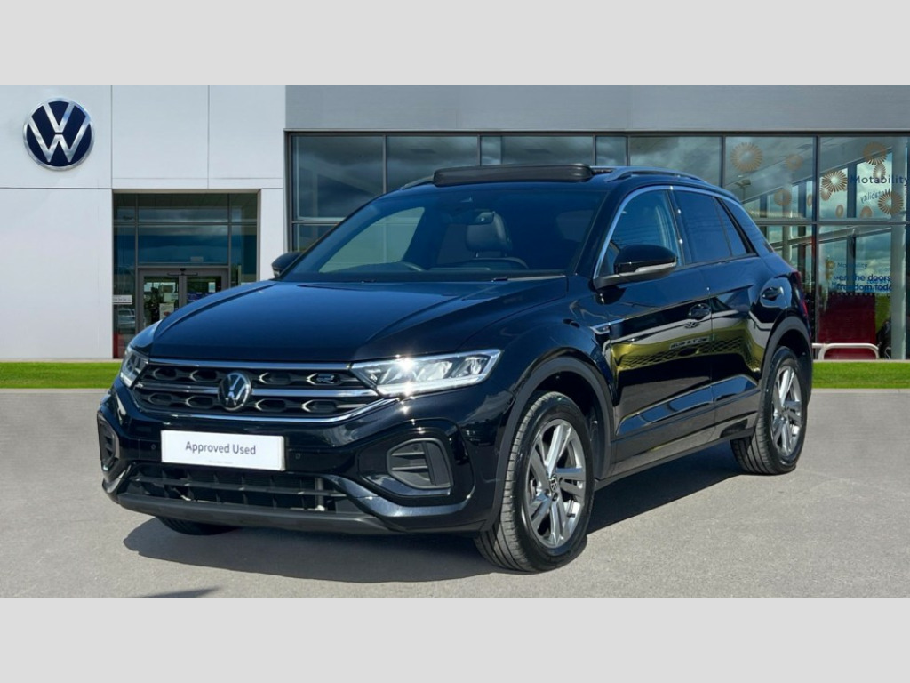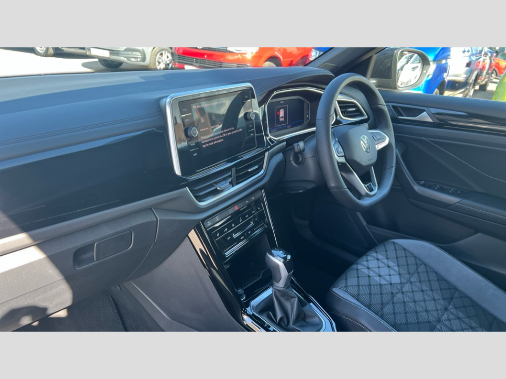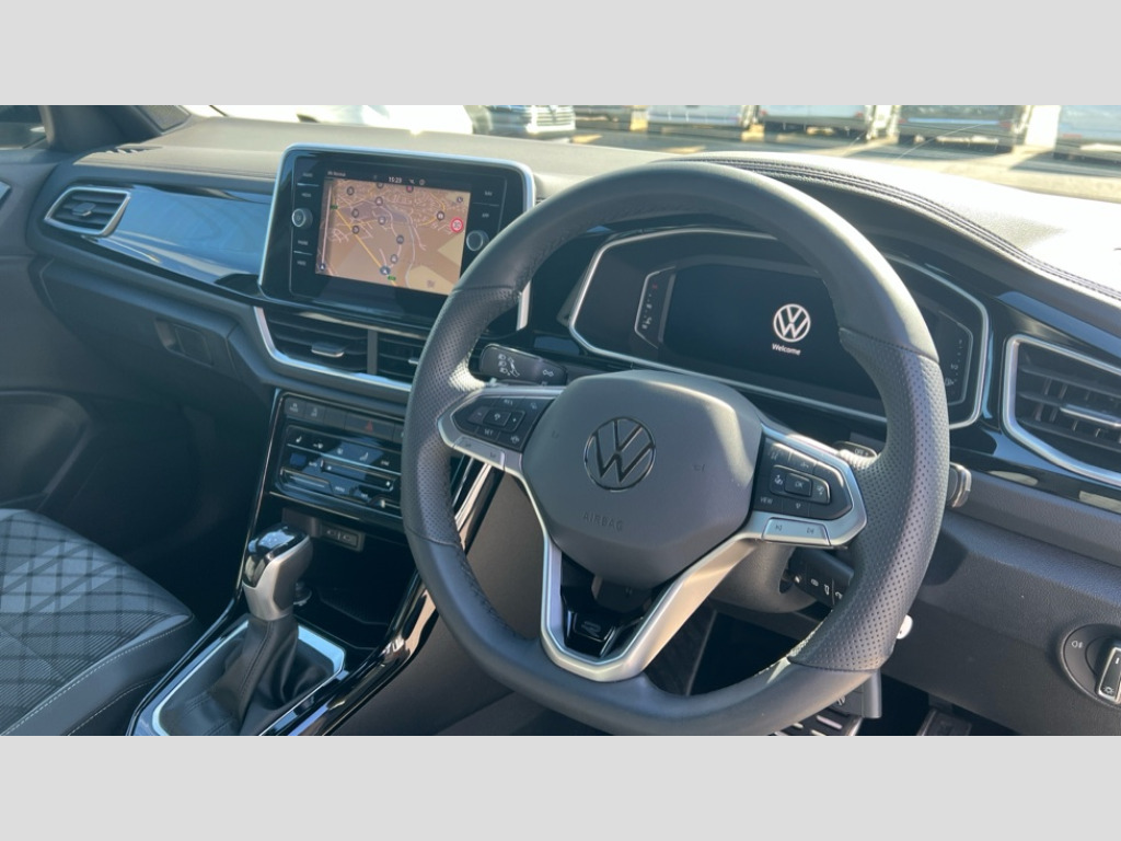 Volkswagen T-Roc 2.0 TDI 150 EVO R-Line 5dr DSG 10.25" Digital cockpit pro, Advanced driver attention and drowsiness monitor, Dynamic road sign display, Emergency call service, Lane keeping system Lane Assist, Mobile phone interface, Modified key software - reduce switch off time for key status change to Long no motion, Online services, Park assist including front and rear parking sensors, Service interval indicator, Tailgate/trunk lid release from outside, Think blue trainer driver tips and journey analysis, Warning sound and light for front seatbelts unfastened, Wireless app connect, Battery regeneration during braking, Start/stop function with battery regeneration, DAB Digital radio, Diversity antenna for FM reception, Front and rear 6 speakers, Music playback - MP3, WMA and AAC files, Premium USB cable in choice of either Apple or Android smartphone compatibility, SD card slot, Simultaneous pairing of 2 compatible mobile devices, Title and cover art display, We Connect and We Connect Plus functionality, Auto dimming interior rear view mirror, Automatic hazard lights activation under emergency braking, Automatic headlight control with LED separate daytime running lights with coming/leaving home function, Body coloured exterior mirror housings and door handles, Electrically adjustable and heated door mirrors, Extended roof spoiler, Exterior mirrors aspherical on driver side, convex on front passenger side, External USB type C socket and charging sockets, Front windscreen wiper with intermittent wipe and 4 position delay, Heated rear window, LED 3rd brake light, LED rear combination lamps, LED rear number plate lights, Power windows with comfort operation and circuit breaker, Privacy glass for rear side windows and rear window, R-Line design body coloured bumpers, Rain sensor, Rear exhaust tailpipe, Rear fog light on one side and reversing lights on both sides, Rear side wing doors, Rear wash/wipe with intermittent wipe setting, Remote electrically foldable door mirrors, puddle lights and reverse activated passenger's door mirror, 12V power socket in centre console, 3 rear head restraints, 3 seat bench in 2nd row, 4 load lashing points in luggage compartment, Air care climatronic air conditoning system with active combination filter and 2-zone temperature control, Black roof lining, Chrome plated decorative trims, Chrome plated radiator grille inserts, air vent surrounds and light switch surrounds, Door and side trim panel with leatherette insert, Front + rear carpet mats, Front centre armrest, Front cupholders x 2, Front footwell illumination, Front reading light, Front scuff plates with R Line logo, Front seat back storage pockets, Glove compartment door with light, Instrument lighting, white adjustable panel illumination, Interior ambient lighting and surround lighting, Interior light delay, Isofix child seat preparation, Leather gearshift handle, Load-through provision with cup holder when folded down ('Unsplit rear seat bench, split folding backrest, with centre armrest), Luggage compartment lighting, Single front passenger seat, Stainless steel pedals, Storage compartment in left and right luggage area, Storage compartment in rear doors, Storage compartments in driver and front passenger doors, Sunvisors with illuminated vanity mirrors, Variable boot floor, height adjustable and removable, Driver assistance pack without proactive passenger protection - T-Roc, 3 point height adj front seatbelts + pretensioners, 3 point seatbelts in outer rear with ECE label, ABS, Child locks on rear doors, City emergency braking and pedestrian monitoring, Driver and front passenger airbag with front passenger airbag deactivation, Driver and front passenger safety-optimised head restraints, Drivers seatbelt reminder, Electronic parking brake, Electronic Stability Control (ESC) inc EDL (Electronic Differential Lock) and ASR (Traction Control), Front and rear passengers curtain airbag system including front side airbags, Hill start assist, Predictive pedestrian protection, Rear disc brakes, Two tone horn, Tyre pressure loss indicator, Volkswagen roadside assistance, Piano black decorative inserts in dashboard and front door trim panels, Trims for alloy wheels