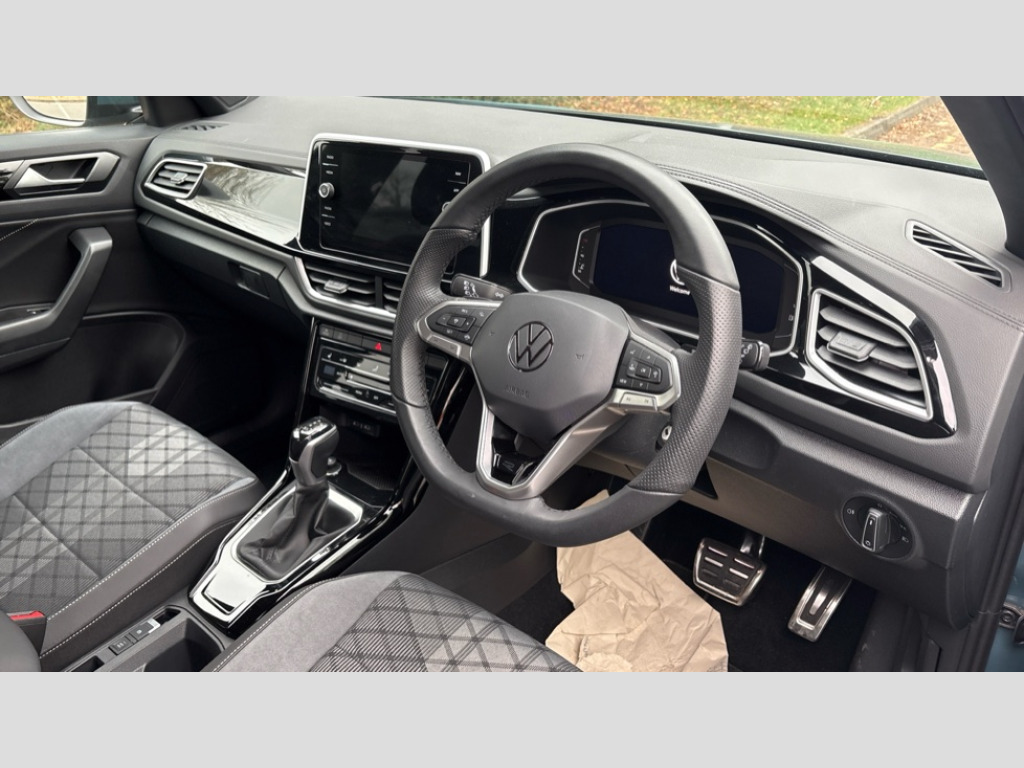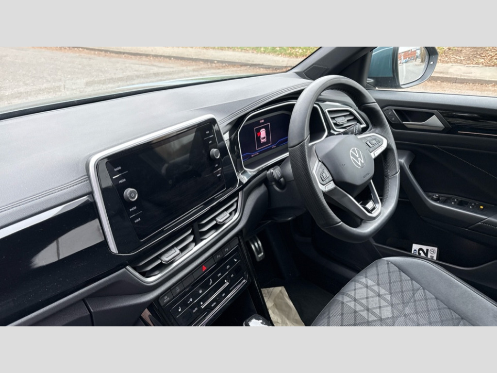 Volkswagen T-Roc 2.0 TDI 150 EVO R-Line 5dr DSG 10.25" Digital cockpit pro, Advanced driver attention and drowsiness monitor, Dynamic road sign display, Emergency call service, Lane keeping system Lane Assist, Mobile phone interface, Modified key software - reduce switch off time for key status change to Long no motion, Online services, Park assist including front and rear parking sensors, Service interval indicator, Tailgate/trunk lid release from outside, Think blue trainer driver tips and journey analysis, Warning sound and light for front seatbelts unfastened, Wireless app connect, Battery regeneration during braking, Start/stop function with battery regeneration, DAB Digital radio, Diversity antenna for FM reception, Front and rear 6 speakers, Music playback - MP3, WMA and AAC files, Premium USB cable in choice of either Apple or Android smartphone compatibility, SD card slot, Simultaneous pairing of 2 compatible mobile devices, Title and cover art display, We Connect and We Connect Plus functionality, Auto dimming interior rear view mirror, Automatic hazard lights activation under emergency braking, Automatic headlight control with LED separate daytime running lights with coming/leaving home function, Body coloured exterior mirror housings and door handles, Electrically adjustable and heated door mirrors, Extended roof spoiler, Exterior mirrors aspherical on driver side, convex on front passenger side, External USB type C socket and charging sockets, Front windscreen wiper with intermittent wipe and 4 position delay, Heated rear window, LED 3rd brake light, LED rear combination lamps, LED rear number plate lights, Power windows with comfort operation and circuit breaker, Privacy glass for rear side windows and rear window, R-Line design body coloured bumpers, Rain sensor, Rear exhaust tailpipe, Rear fog light on one side and reversing lights on both sides, Rear side wing doors, Rear wash/wipe with intermittent wipe setting, Remote electrically foldable door mirrors, puddle lights and reverse activated passenger's door mirror, 12V power socket in centre console, 3 rear head restraints, 3 seat bench in 2nd row, 4 load lashing points in luggage compartment, Air care climatronic air conditoning system with active combination filter and 2-zone temperature control, Black roof lining, Chrome plated decorative trims, Chrome plated radiator grille inserts, air vent surrounds and light switch surrounds, Door and side trim panel with leatherette insert, Front + rear carpet mats, Front centre armrest, Front cupholders x 2, Front footwell illumination, Front reading light, Front scuff plates with R Line logo, Front seat back storage pockets, Glove compartment door with light, Instrument lighting, white adjustable panel illumination, Interior ambient lighting and surround lighting, Interior light delay, Isofix child seat preparation, Leather gearshift handle, Load-through provision with cup holder when folded down ('Unsplit rear seat bench, split folding backrest, with centre armrest), Luggage compartment lighting, Single front passenger seat, Stainless steel pedals, Storage compartment in left and right luggage area, Storage compartment in rear doors, Storage compartments in driver and front passenger doors, Sunvisors with illuminated vanity mirrors, Variable boot floor, height adjustable and removable, Driver assistance pack without proactive passenger protection - T-Roc, 3 point height adj front seatbelts + pretensioners, 3 point seatbelts in outer rear with ECE label, ABS, Child locks on rear doors, City emergency braking and pedestrian monitoring, Driver and front passenger airbag with front passenger airbag deactivation, Driver and front passenger safety-optimised head restraints, Drivers seatbelt reminder, Electronic parking brake, Electronic Stability Control (ESC) inc EDL (Electronic Differential Lock) and ASR (Traction Control), Front and rear passengers curtain airbag system including front side airbags, Hill start assist, Predictive pedestrian protection, Rear disc brakes, Two tone horn, Tyre pressure loss indicator, Volkswagen roadside assistance, Piano black decorative inserts in dashboard and front door trim panels, Trims for alloy wheels
