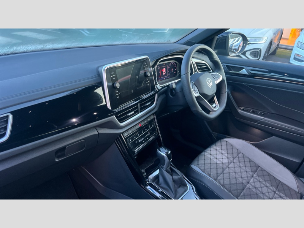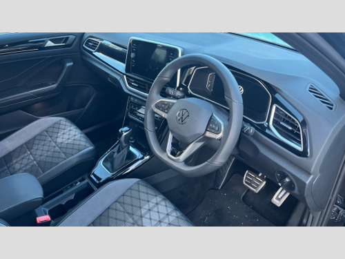 Volkswagen T-Roc 2.0 TDI 150 EVO R-Line 5dr DSG 10.25" Digital cockpit pro, Advanced driver attention and drowsiness monitor, Dynamic road sign display, Emergency call service, Lane keeping system Lane Assist, Mobile phone interface, Modified key software - reduce switch off time for key status change to Long no motion, Online services, Park assist including front and rear parking sensors, Service interval indicator, Tailgate/trunk lid release from outside, Think blue trainer driver tips and journey analysis, Warning sound and light for front seatbelts unfastened, Wireless app connect, Battery regeneration during braking, Start/stop function with battery regeneration, DAB Digital radio, Diversity antenna for FM reception, Front and rear 6 speakers, Music playback - MP3, WMA and AAC files, Premium USB cable in choice of either Apple or Android smartphone compatibility, SD card slot, Simultaneous pairing of 2 compatible mobile devices, Title and cover art display, We Connect and We Connect Plus functionality, Auto dimming interior rear view mirror, Automatic hazard lights activation under emergency braking, Automatic headlight control with LED separate daytime running lights with coming/leaving home function, Body coloured exterior mirror housings and door handles, Electrically adjustable and heated door mirrors, Extended roof spoiler, Exterior mirrors aspherical on driver side, convex on front passenger side, External USB type C socket and charging sockets, Front windscreen wiper with intermittent wipe and 4 position delay, Heated rear window, LED 3rd brake light, LED rear combination lamps, LED rear number plate lights, Power windows with comfort operation and circuit breaker, Privacy glass for rear side windows and rear window, R-Line design body coloured bumpers, Rain sensor, Rear exhaust tailpipe, Rear fog light on one side and reversing lights on both sides, Rear side wing doors, Rear wash/wipe with intermittent wipe setting, Remote electrically foldable door mirrors, puddle lights and reverse activated passenger's door mirror, 12V power socket in centre console, 3 rear head restraints, 3 seat bench in 2nd row, 4 load lashing points in luggage compartment, Air care climatronic air conditoning system with active combination filter and 2-zone temperature control, Black roof lining, Chrome plated decorative trims, Chrome plated radiator grille inserts, air vent surrounds and light switch surrounds, Door and side trim panel with leatherette insert, Front + rear carpet mats, Front centre armrest, Front cupholders x 2, Front footwell illumination, Front reading light, Front scuff plates with R Line logo, Front seat back storage pockets, Glove compartment door with light, Instrument lighting, white adjustable panel illumination, Interior ambient lighting and surround lighting, Interior light delay, Isofix child seat preparation, Leather gearshift handle, Load-through provision with cup holder when folded down ('Unsplit rear seat bench, split folding backrest, with centre armrest), Luggage compartment lighting, Single front passenger seat, Stainless steel pedals, Storage compartment in left and right luggage area, Storage compartment in rear doors, Storage compartments in driver and front passenger doors, Sunvisors with illuminated vanity mirrors, Variable boot floor, height adjustable and removable, Driver assistance pack without proactive passenger protection - T-Roc, 3 point height adj front seatbelts + pretensioners, 3 point seatbelts in outer rear with ECE label, ABS, Child locks on rear doors, City emergency braking and pedestrian monitoring, Driver and front passenger airbag with front passenger airbag deactivation, Driver and front passenger safety-optimised head restraints, Drivers seatbelt reminder, Electronic parking brake, Electronic Stability Control (ESC) inc EDL (Electronic Differential Lock) and ASR (Traction Control), Front and rear passengers curtain airbag system including front side airbags, Hill start assist, Predictive pedestrian protection, Rear disc brakes, Two tone horn, Tyre pressure loss indicator, Volkswagen roadside assistance, Piano black decorative inserts in dashboard and front door trim panels, Trims for alloy wheels