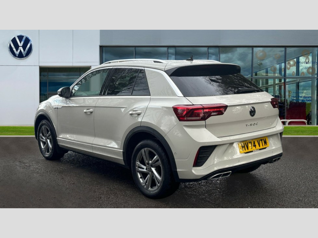 Volkswagen T-Roc 2.0 TDI 150 EVO R-Line 5dr DSG 10.25" Digital cockpit pro, Advanced driver attention and drowsiness monitor, Dynamic road sign display, Emergency call service, Lane keeping system Lane Assist, Mobile phone interface, Modified key software - reduce switch off time for key status change to Long no motion, Online services, Park assist including front and rear parking sensors, Service interval indicator, Tailgate/trunk lid release from outside, Think blue trainer driver tips and journey analysis, Warning sound and light for front seatbelts unfastened, Wireless app connect, Battery regeneration during braking, Start/stop function with battery regeneration, DAB Digital radio, Diversity antenna for FM reception, Front and rear 6 speakers, Music playback - MP3, WMA and AAC files, Premium USB cable in choice of either Apple or Android smartphone compatibility, SD card slot, Simultaneous pairing of 2 compatible mobile devices, Title and cover art display, We Connect and We Connect Plus functionality, Auto dimming interior rear view mirror, Automatic hazard lights activation under emergency braking, Automatic headlight control with LED separate daytime running lights with coming/leaving home function, Body coloured exterior mirror housings and door handles, Electrically adjustable and heated door mirrors, Extended roof spoiler, Exterior mirrors aspherical on driver side, convex on front passenger side, External USB type C socket and charging sockets, Front windscreen wiper with intermittent wipe and 4 position delay, Heated rear window, LED 3rd brake light, LED rear combination lamps, LED rear number plate lights, Power windows with comfort operation and circuit breaker, Privacy glass for rear side windows and rear window, R-Line design body coloured bumpers, Rain sensor, Rear exhaust tailpipe, Rear fog light on one side and reversing lights on both sides, Rear side wing doors, Rear wash/wipe with intermittent wipe setting, Remote electrically foldable door mirrors, puddle lights and reverse activated passenger's door mirror, 12V power socket in centre console, 3 rear head restraints, 3 seat bench in 2nd row, 4 load lashing points in luggage compartment, Air care climatronic air conditoning system with active combination filter and 2-zone temperature control, Black roof lining, Chrome plated decorative trims, Chrome plated radiator grille inserts, air vent surrounds and light switch surrounds, Door and side trim panel with leatherette insert, Front + rear carpet mats, Front centre armrest, Front cupholders x 2, Front footwell illumination, Front reading light, Front scuff plates with R Line logo, Front seat back storage pockets, Glove compartment door with light, Instrument lighting, white adjustable panel illumination, Interior ambient lighting and surround lighting, Interior light delay, Isofix child seat preparation, Leather gearshift handle, Load-through provision with cup holder when folded down ('Unsplit rear seat bench, split folding backrest, with centre armrest), Luggage compartment lighting, Single front passenger seat, Stainless steel pedals, Storage compartment in left and right luggage area, Storage compartment in rear doors, Storage compartments in driver and front passenger doors, Sunvisors with illuminated vanity mirrors, Variable boot floor, height adjustable and removable, Driver assistance pack without proactive passenger protection - T-Roc, 3 point height adj front seatbelts + pretensioners, 3 point seatbelts in outer rear with ECE label, ABS, Child locks on rear doors, City emergency braking and pedestrian monitoring, Driver and front passenger airbag with front passenger airbag deactivation, Driver and front passenger safety-optimised head restraints, Drivers seatbelt reminder, Electronic parking brake, Electronic Stability Control (ESC) inc EDL (Electronic Differential Lock) and ASR (Traction Control), Front and rear passengers curtain airbag system including front side airbags, Hill start assist, Predictive pedestrian protection, Rear disc brakes, Two tone horn, Tyre pressure loss indicator, Volkswagen roadside assistance, Piano black decorative inserts in dashboard and front door trim panels, Trims for alloy wheels