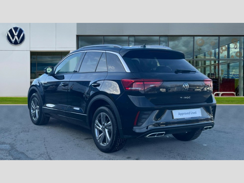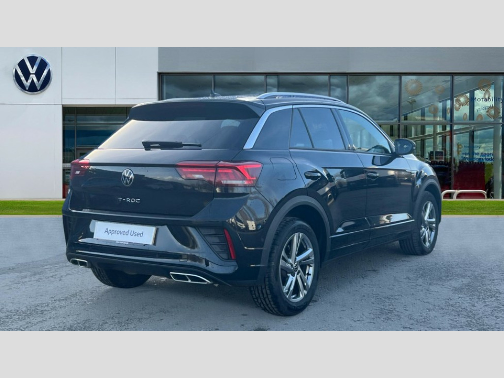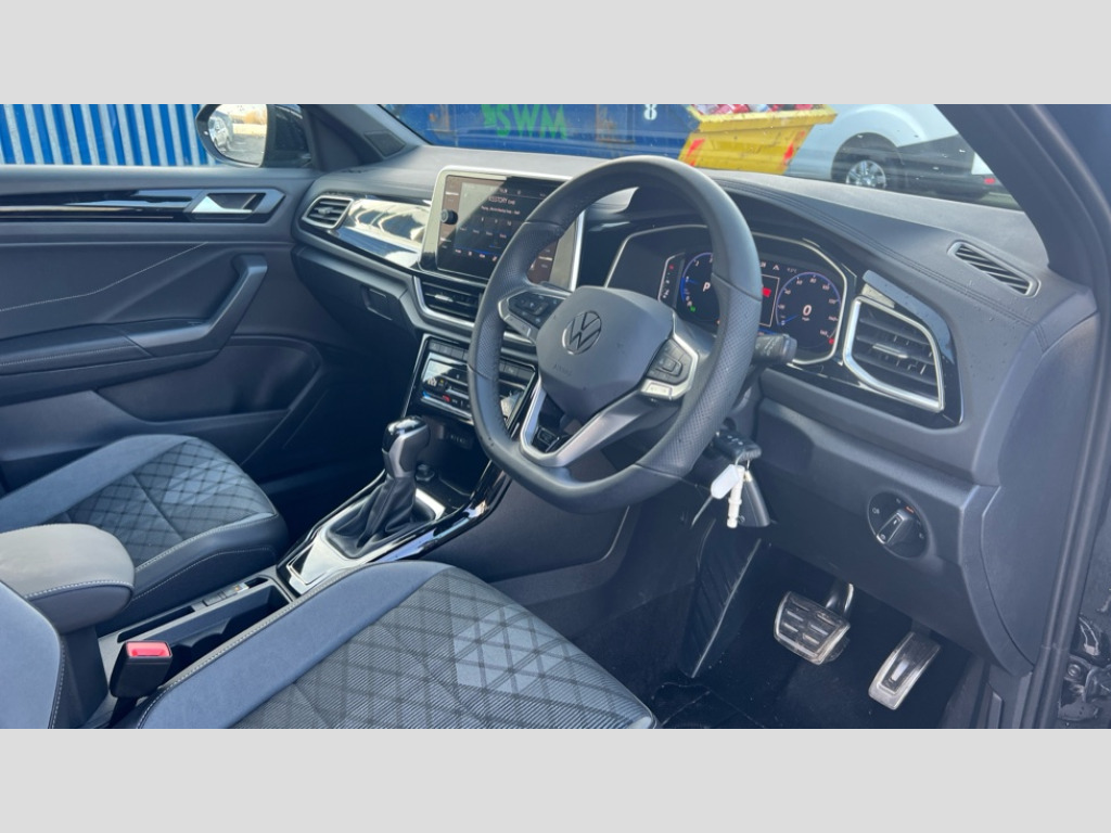 Volkswagen T-Roc 2.0 TDI 150 EVO R-Line 5dr DSG 10.25" Digital cockpit pro, Advanced driver attention and drowsiness monitor, Dynamic road sign display, Emergency call service, Lane keeping system Lane Assist, Mobile phone interface, Modified key software - reduce switch off time for key status change to Long no motion, Online services, Park assist including front and rear parking sensors, Service interval indicator, Tailgate/trunk lid release from outside, Think blue trainer driver tips and journey analysis, Warning sound and light for front seatbelts unfastened, Wireless app connect, Battery regeneration during braking, Start/stop function with battery regeneration, DAB Digital radio, Diversity antenna for FM reception, Front and rear 6 speakers, Music playback - MP3, WMA and AAC files, Premium USB cable in choice of either Apple or Android smartphone compatibility, SD card slot, Simultaneous pairing of 2 compatible mobile devices, Title and cover art display, We Connect and We Connect Plus functionality, Auto dimming interior rear view mirror, Automatic hazard lights activation under emergency braking, Automatic headlight control with LED separate daytime running lights with coming/leaving home function, Body coloured exterior mirror housings and door handles, Electrically adjustable and heated door mirrors, Extended roof spoiler, Exterior mirrors aspherical on driver side, convex on front passenger side, External USB type C socket and charging sockets, Front windscreen wiper with intermittent wipe and 4 position delay, Heated rear window, LED 3rd brake light, LED rear combination lamps, LED rear number plate lights, Power windows with comfort operation and circuit breaker, Privacy glass for rear side windows and rear window, R-Line design body coloured bumpers, Rain sensor, Rear exhaust tailpipe, Rear fog light on one side and reversing lights on both sides, Rear side wing doors, Rear wash/wipe with intermittent wipe setting, Remote electrically foldable door mirrors, puddle lights and reverse activated passenger's door mirror, 12V power socket in centre console, 3 rear head restraints, 3 seat bench in 2nd row, 4 load lashing points in luggage compartment, Air care climatronic air conditoning system with active combination filter and 2-zone temperature control, Black roof lining, Chrome plated decorative trims, Chrome plated radiator grille inserts, air vent surrounds and light switch surrounds, Door and side trim panel with leatherette insert, Front + rear carpet mats, Front centre armrest, Front cupholders x 2, Front footwell illumination, Front reading light, Front scuff plates with R Line logo, Front seat back storage pockets, Glove compartment door with light, Instrument lighting, white adjustable panel illumination, Interior ambient lighting and surround lighting, Interior light delay, Isofix child seat preparation, Leather gearshift handle, Load-through provision with cup holder when folded down ('Unsplit rear seat bench, split folding backrest, with centre armrest), Luggage compartment lighting, Single front passenger seat, Stainless steel pedals, Storage compartment in left and right luggage area, Storage compartment in rear doors, Storage compartments in driver and front passenger doors, Sunvisors with illuminated vanity mirrors, Variable boot floor, height adjustable and removable, Driver assistance pack without proactive passenger protection - T-Roc, 3 point height adj front seatbelts + pretensioners, 3 point seatbelts in outer rear with ECE label, ABS, Child locks on rear doors, City emergency braking and pedestrian monitoring, Driver and front passenger airbag with front passenger airbag deactivation, Driver and front passenger safety-optimised head restraints, Drivers seatbelt reminder, Electronic parking brake, Electronic Stability Control (ESC) inc EDL (Electronic Differential Lock) and ASR (Traction Control), Front and rear passengers curtain airbag system including front side airbags, Hill start assist, Predictive pedestrian protection, Rear disc brakes, Two tone horn, Tyre pressure loss indicator, Volkswagen roadside assistance, Piano black decorative inserts in dashboard and front door trim panels, Trims for alloy wheels