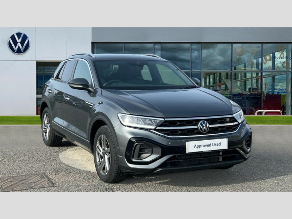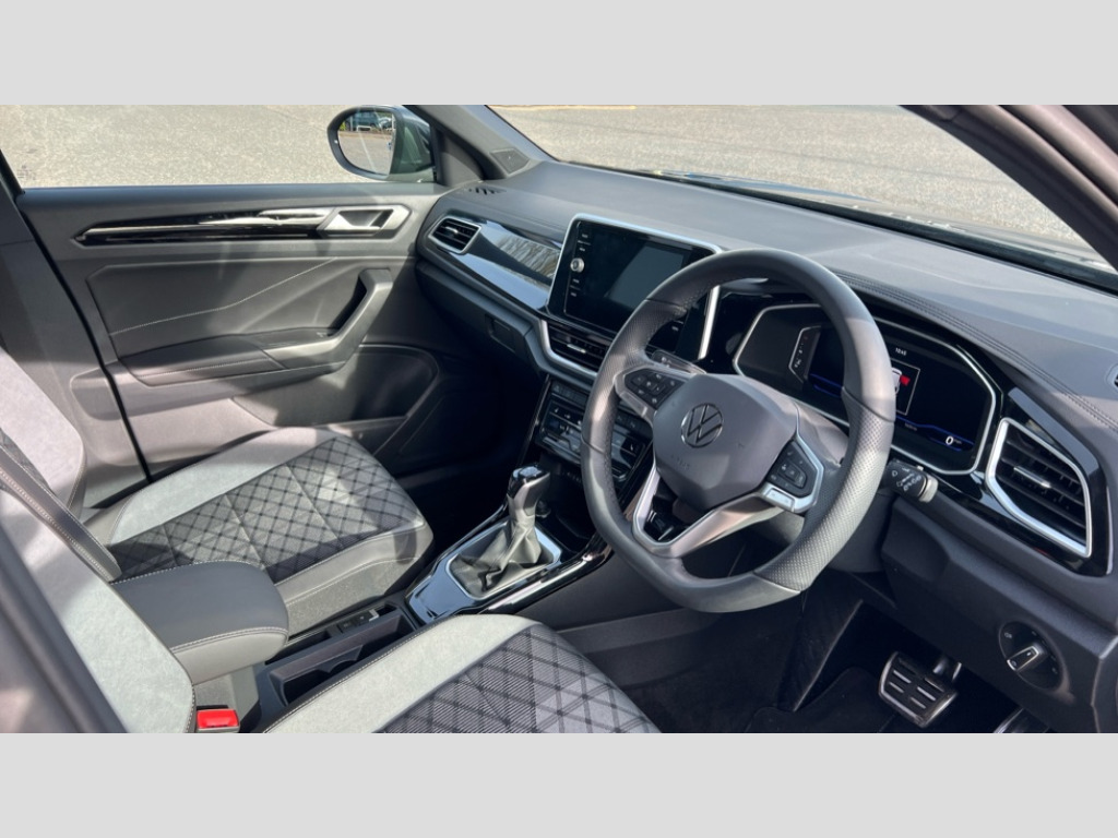 Volkswagen T-Roc 2.0 TDI 150 EVO R-Line 5dr DSG 10.25" Digital cockpit pro, Advanced driver attention and drowsiness monitor, Dynamic road sign display, Emergency call service, Lane keeping system Lane Assist, Mobile phone interface, Modified key software - reduce switch off time for key status change to Long no motion, Online services, Park assist including front and rear parking sensors, Service interval indicator, Tailgate/trunk lid release from outside, Think blue trainer driver tips and journey analysis, Warning sound and light for front seatbelts unfastened, Wireless app connect, Battery regeneration during braking, Start/stop function with battery regeneration, DAB Digital radio, Diversity antenna for FM reception, Front and rear 6 speakers, Music playback - MP3, WMA and AAC files, Premium USB cable in choice of either Apple or Android smartphone compatibility, SD card slot, Simultaneous pairing of 2 compatible mobile devices, Title and cover art display, We Connect and We Connect Plus functionality, Auto dimming interior rear view mirror, Automatic hazard lights activation under emergency braking, Automatic headlight control with LED separate daytime running lights with coming/leaving home function, Body coloured exterior mirror housings and door handles, Electrically adjustable and heated door mirrors, Extended roof spoiler, Exterior mirrors aspherical on driver side, convex on front passenger side, External USB type C socket and charging sockets, Front windscreen wiper with intermittent wipe and 4 position delay, Heated rear window, LED 3rd brake light, LED rear combination lamps, LED rear number plate lights, Power windows with comfort operation and circuit breaker, Privacy glass for rear side windows and rear window, R-Line design body coloured bumpers, Rain sensor, Rear exhaust tailpipe, Rear fog light on one side and reversing lights on both sides, Rear side wing doors, Rear wash/wipe with intermittent wipe setting, Remote electrically foldable door mirrors, puddle lights and reverse activated passenger's door mirror, 12V power socket in centre console, 3 rear head restraints, 3 seat bench in 2nd row, 4 load lashing points in luggage compartment, Air care climatronic air conditoning system with active combination filter and 2-zone temperature control, Black roof lining, Chrome plated decorative trims, Chrome plated radiator grille inserts, air vent surrounds and light switch surrounds, Door and side trim panel with leatherette insert, Front + rear carpet mats, Front centre armrest, Front cupholders x 2, Front footwell illumination, Front reading light, Front scuff plates with R Line logo, Front seat back storage pockets, Glove compartment door with light, Instrument lighting, white adjustable panel illumination, Interior ambient lighting and surround lighting, Interior light delay, Isofix child seat preparation, Leather gearshift handle, Load-through provision with cup holder when folded down ('Unsplit rear seat bench, split folding backrest, with centre armrest), Luggage compartment lighting, Single front passenger seat, Stainless steel pedals, Storage compartment in left and right luggage area, Storage compartment in rear doors, Storage compartments in driver and front passenger doors, Sunvisors with illuminated vanity mirrors, Variable boot floor, height adjustable and removable, Driver assistance pack without proactive passenger protection - T-Roc, 3 point height adj front seatbelts + pretensioners, 3 point seatbelts in outer rear with ECE label, ABS, Child locks on rear doors, City emergency braking and pedestrian monitoring, Driver and front passenger airbag with front passenger airbag deactivation, Driver and front passenger safety-optimised head restraints, Drivers seatbelt reminder, Electronic parking brake, Electronic Stability Control (ESC) inc EDL (Electronic Differential Lock) and ASR (Traction Control), Front and rear passengers curtain airbag system including front side airbags, Hill start assist, Predictive pedestrian protection, Rear disc brakes, Two tone horn, Tyre pressure loss indicator, Volkswagen roadside assistance, Piano black decorative inserts in dashboard and front door trim panels, Trims for alloy wheels