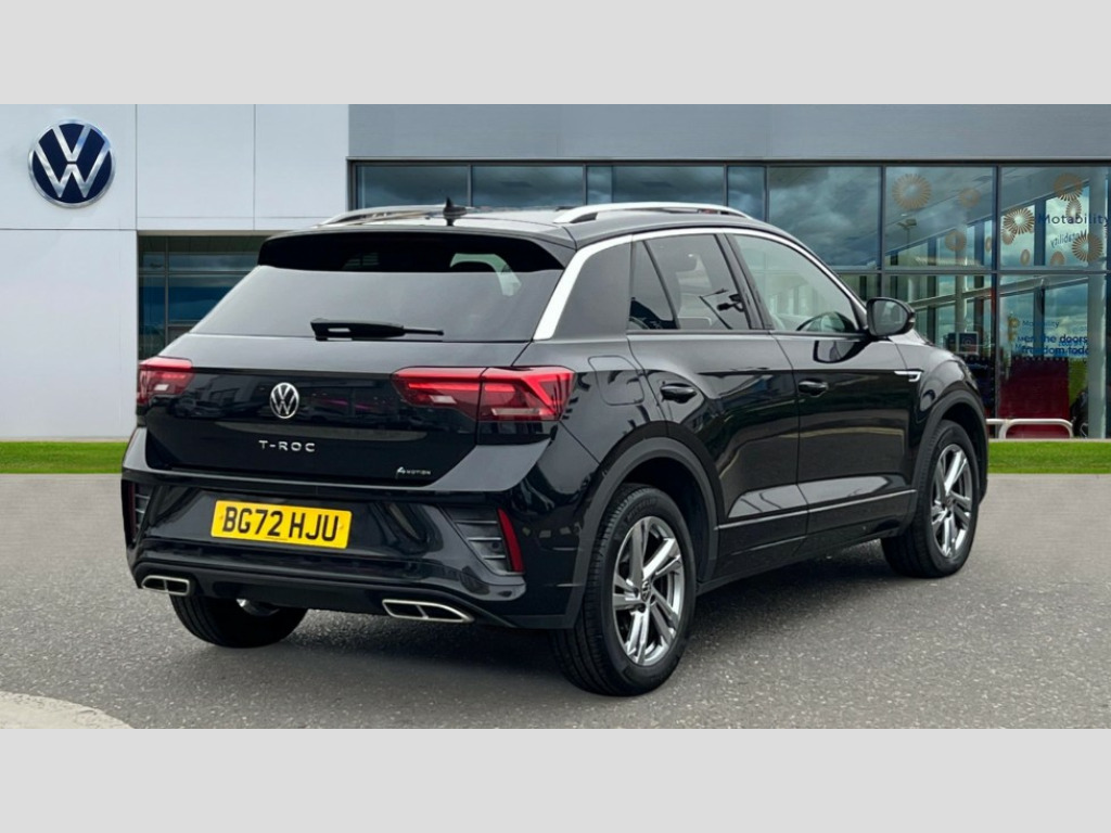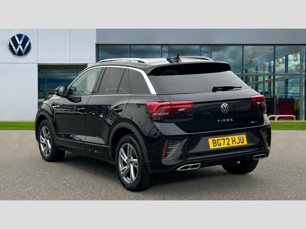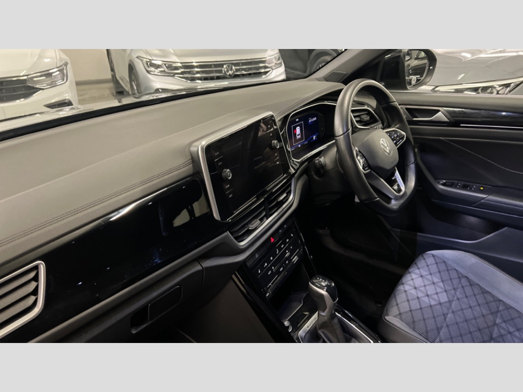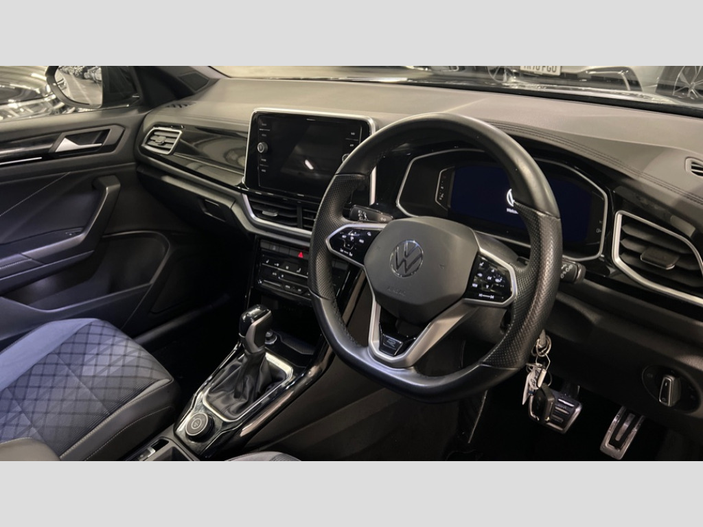 Volkswagen T-Roc 2.0 TSI 4MOTION R-Line 5dr DSG 10.25" Digital cockpit pro, Bluetooth mobile phone interface, Driver alert system with fatigue detection, Driver tips and journey analysis, Emergency call service, Lane keeping system Lane Assist, Modified key software - reduce switch off time for key status change to Long no motion, Online services, Park assist including front and rear parking sensors, Service interval indicator, Tailgate/trunk lid release from outside, Think blue trainer driver tips and journey analysis, Warning sound and light for front seatbelts unfastened, Wireless app connect, Battery regeneration during braking, Four wheel drive, Start/stop function with battery regeneration, Diversity antenna for FM reception, Front and rear 6 speakers, Music playback - MP3, WMA and AAC files, Premium USB cable in choice of either Apple or Android smartphone compatibility, SD card slot, Simultaneous pairing of 2 compatible mobile devices, Title and cover art display, We Connect and We Connect Plus functionality, 3rd brake light, Auto dimming interior rear view mirror, Automatic hazard lights activation under emergency braking, Automatic headlight control with LED separate daytime running lights with coming/leaving home function, Extended roof spoiler, Exterior mirrors aspherical on driver side, convex on front passenger side, External USB type C socket and charging sockets, Front windscreen wiper with intermittent wipe and 4 position delay, Heated rear window, LED Plus headlamps, LED rear combination lamps, LED rear number plate lights, LED tail lamp rear comination lamps, Power windows with comfort operation and circuit breaker, R-Line design body coloured bumpers, Rain sensor, Rear exhaust tailpipe, Rear fog light on one side and reversing lights on both sides, Rear side wing doors, Rear wash/wipe with intermittent wipe setting, Remote electrically foldable door mirrors, puddle lights and reverse activated passenger's door mirror, 12V power socket in centre console, 3 rear head restraints, 3 seat bench in 2nd row, 4 load lashing points in luggage compartment, Air care climatronic air conditoning system with active combination filter and 2-zone temperature control, Black roof lining, Chrome plated radiator grille inserts, air vent surrounds and light switch surrounds, Door and side trim panel with leatherette insert, Drawer under drivers seat, Front + rear carpet mats, Front centre armrest, Front cupholders x 2, Front footwell illumination, Front reading light, Front scuff plates with R logo, Instrument lighting, white adjustable panel illumination, Interior ambient lighting and surround lighting, Interior light delay, Isofix child seat preparation, Leather gearshift handle, Load-through provision with cup holder when folded down ('Unsplit rear seat bench, split folding backrest, with centre armrest), Luggage compartment lighting, Single front passenger seat, Stainless steel pedals, Storage compartment in left and right luggage area, Storage compartment in rear doors, Storage compartments in driver and front passenger doors, Sunvisors with illuminated vanity mirrors, Variable boot floor, height adjustable and removable, Driver assistance pack without proactive passenger protection - T-Roc, 3 point height adj front seatbelts + pretensioners, 3 point seatbelts in outer rear with ECE label, ABS, Child locks on rear doors, Driver and front passenger airbag with front passenger airbag deactivation, Driver and front passenger safety-optimised head restraints, Drivers seatbelt reminder, Electronic parking brake, Electronic Stability Control (ESC) inc EDL (Electronic Differential Lock) and ASR (Traction Control), Front and rear passengers curtain airbag system including front side airbags, Front assist with city emergency braking and pedestrian monitoring, Front seat side impact airbags, Hill start assist, Predictive pedestrian protection, Rear disc brakes, Single tone horn, Tyre pressure loss indicator, Volkswagen roadside assistance, Alarm with interior protection, Anti-theft alarm system with interior monitoring, backup horn, and towing protection, Remote central locking with SAFELOCK, radio remote control with 2 remote control folding keys, Trims for alloy wheels