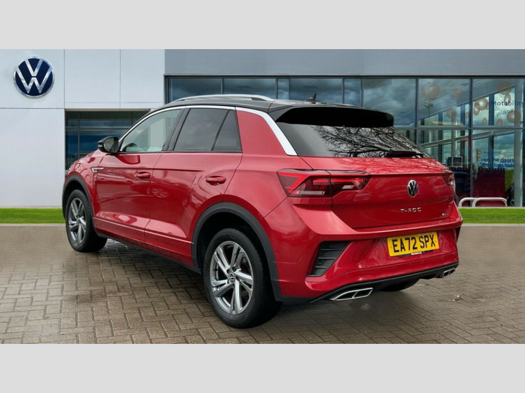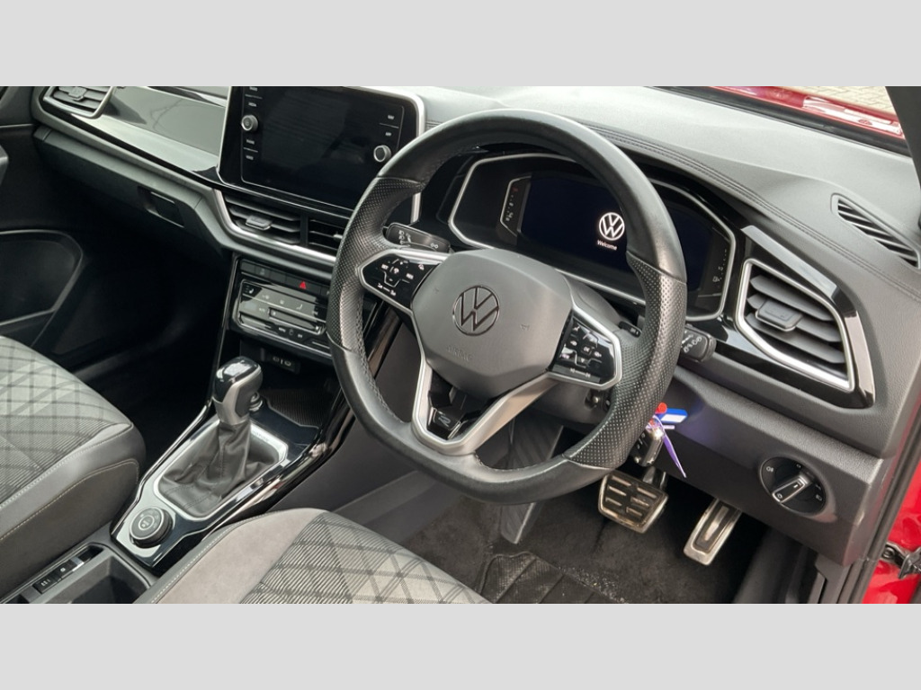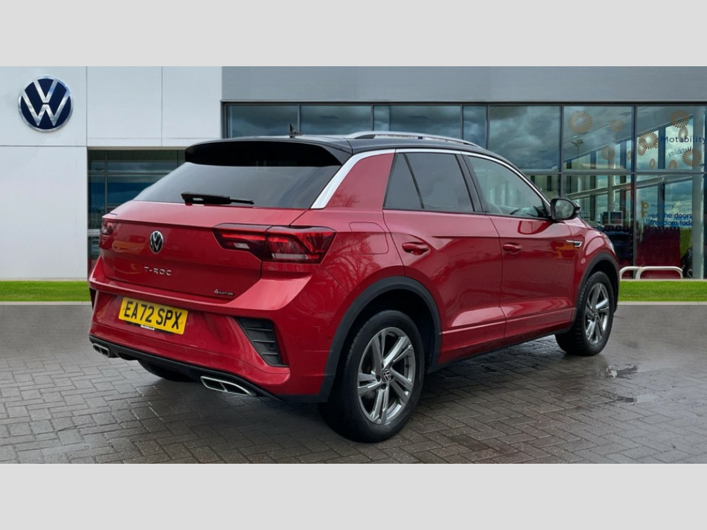 Volkswagen T-Roc 2.0 TSI 4MOTION R-Line 5dr DSG 10.25" Digital cockpit pro, Bluetooth mobile phone interface, Driver alert system with fatigue detection, Driver tips and journey analysis, Emergency call service, Lane keeping system Lane Assist, Modified key software - reduce switch off time for key status change to Long no motion, Online services, Park assist including front and rear parking sensors, Service interval indicator, Tailgate/trunk lid release from outside, Think blue trainer driver tips and journey analysis, Warning sound and light for front seatbelts unfastened, Wireless app connect, Battery regeneration during braking, Four wheel drive, Start/stop function with battery regeneration, Diversity antenna for FM reception, Front and rear 6 speakers, Music playback - MP3, WMA and AAC files, Premium USB cable in choice of either Apple or Android smartphone compatibility, SD card slot, Simultaneous pairing of 2 compatible mobile devices, Title and cover art display, We Connect and We Connect Plus functionality, 3rd brake light, Auto dimming interior rear view mirror, Automatic hazard lights activation under emergency braking, Automatic headlight control with LED separate daytime running lights with coming/leaving home function, Extended roof spoiler, Exterior mirrors aspherical on driver side, convex on front passenger side, External USB type C socket and charging sockets, Front windscreen wiper with intermittent wipe and 4 position delay, Heated rear window, LED Plus headlamps, LED rear combination lamps, LED rear number plate lights, LED tail lamp rear comination lamps, Power windows with comfort operation and circuit breaker, R-Line design body coloured bumpers, Rain sensor, Rear exhaust tailpipe, Rear fog light on one side and reversing lights on both sides, Rear side wing doors, Rear wash/wipe with intermittent wipe setting, Remote electrically foldable door mirrors, puddle lights and reverse activated passenger's door mirror, 12V power socket in centre console, 3 rear head restraints, 3 seat bench in 2nd row, 4 load lashing points in luggage compartment, Air care climatronic air conditoning system with active combination filter and 2-zone temperature control, Black roof lining, Chrome plated radiator grille inserts, air vent surrounds and light switch surrounds, Door and side trim panel with leatherette insert, Drawer under drivers seat, Front + rear carpet mats, Front centre armrest, Front cupholders x 2, Front footwell illumination, Front reading light, Front scuff plates with R logo, Instrument lighting, white adjustable panel illumination, Interior ambient lighting and surround lighting, Interior light delay, Isofix child seat preparation, Leather gearshift handle, Load-through provision with cup holder when folded down ('Unsplit rear seat bench, split folding backrest, with centre armrest), Luggage compartment lighting, Single front passenger seat, Stainless steel pedals, Storage compartment in left and right luggage area, Storage compartment in rear doors, Storage compartments in driver and front passenger doors, Sunvisors with illuminated vanity mirrors, Variable boot floor, height adjustable and removable, Driver assistance pack without proactive passenger protection - T-Roc, 3 point height adj front seatbelts + pretensioners, 3 point seatbelts in outer rear with ECE label, ABS, Child locks on rear doors, Driver and front passenger airbag with front passenger airbag deactivation, Driver and front passenger safety-optimised head restraints, Drivers seatbelt reminder, Electronic parking brake, Electronic Stability Control (ESC) inc EDL (Electronic Differential Lock) and ASR (Traction Control), Front and rear passengers curtain airbag system including front side airbags, Front assist with city emergency braking and pedestrian monitoring, Front seat side impact airbags, Hill start assist, Predictive pedestrian protection, Rear disc brakes, Single tone horn, Tyre pressure loss indicator, Volkswagen roadside assistance, Alarm with interior protection, Anti-theft alarm system with interior monitoring, backup horn, and towing protection, Remote central locking with SAFELOCK, radio remote control with 2 remote control folding keys, Trims for alloy wheels