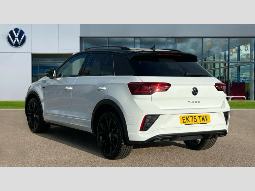Give us a call and we guarantee to provide you with the best experience possible when buying your next vehicle. 10.25" Digital cockpit pro, Advanced driver attention and drowsiness monitor, Emergency call service, Lane keeping system Lane Assist, Mobile phone interface, Modified key software - reduce switch off time for key status change to Long no motion, Online services, Park assist including front and rear parking sensors, Power assisted speed sensitive steering, Rear view camera, Service interval indicator, Tailgate/trunk lid release from outside, Think blue trainer driver tips and journey analysis, Warning sound and light for front seatbelts unfastened, Wireless app connect, Battery regeneration during braking, Rear shock absorption chassis with increased ride height, Start/stop function with battery regeneration, DAB Digital radio, Diversity antenna for FM reception, Music playback - MP3, WMA and AAC files, Premium USB cable in choice of either Apple or Android smartphone compatibility, SD card slot, Simultaneous pairing of 2 compatible mobile devices, Title and cover art display, We Connect and We Connect Plus functionality, Advanced dynamic light assist for LED matrix headlights, Auto dimming interior rear view mirror, Automatic hazard lights activation under emergency braking, Black roof rails, Dynamic cornering light, Dynamic headlight range control with self adjusting whilst driving, Electrically adjustable and heated door mirrors, Extended roof spoiler, Exterior ambient lighting, Exterior mirrors aspherical on driver side, convex on front passenger side, External USB type C socket and charging sockets, Front windscreen wiper with intermittent wipe and 4 position delay, Heated rear window, Illuminated front grille, IQ LED matrix headlights, LED 3rd brake light, LED rear number plate lights, LED rear tail lights with dynamic turn signal, LED separate daytime running light, Light mode for poor weather, rain, fog or snow, Power windows with comfort operation and circuit breaker, Privacy glass for rear side windows and rear window, R-Line design body coloured bumpers, Rain sensor, Rear exhaust tailpipe, Rear fog light on one side and reversing lights on both sides, Rear side wing doors, Rear wash/wipe with intermittent wipe setting, Remote electrically foldable door mirrors, puddle lights and reverse activated passenger's door mirror, Tilting and sliding panoramic sunroof with rear panoramic sunroof, 12V power socket in centre console, 3 rear head restraints, 3 seat bench in 2nd row, 4 load lashing points in luggage compartment, Air care climatronic air conditoning system with active combination filter and 2-zone temperature control, Chrome plated radiator grille inserts, air vent surrounds and light switch surrounds, Door and side trim panel with leatherette insert, Drawer under drivers seat, Front + rear carpet mats, Front centre armrest, Front comfort sports seats, Front cupholders x 2, Front footwell illumination, Front reading light, Front scuff plates with R Line logo, Front seat back storage pockets, Glove compartment door with light, Instrument lighting, white adjustable panel illumination, Interior ambient lighting and surround lighting, Interior light delay, Isofix child seat preparation, Leather gearshift handle, Load-through provision with cup holder when folded down ('Unsplit rear seat bench, split folding backrest, with centre armrest), Luggage compartment lighting, Non-folding front passenger seat backrest, Single front passenger seat, Stainless steel pedals, Storage compartment in left and right luggage area, Storage compartment in rear doors, Storage compartments in driver and front passenger doors, Sunvisors with illuminated vanity mirrors, Variable boot floor, height adjustable and removable, Black design pack - T-Roc black edition plus, Easy open package with safelock - T-Roc, Sport pack with sports suspension - T-Roc, 3 point height adj front seatbelts + pretensioners, 3 point seatbelts in outer rear with ECE label, ABS, Child locks on rear doors, City emergency braking and pedestrian monitoring, Driver and front passenger airbag with front passenger airbag deactivation, Driver and front passenger safety-optimised head restraints, Drivers seatbelt reminder, Electronic parking brake, Electronic Stability Control (ESC) inc EDL (Electronic Differential Lock) and ASR (Traction Control), Front and rear passengers curtain airbag system including front side airbags, Front disc brakes, Hill start assist, Predictive pedestrian protection, Rear disc brakes, Two tone horn, Tyre pressure loss indicator, Volkswagen roadside assistance, Keyless locking and starting system keyless access with safelock, Gloss deep iron dash trim, 19" Misano black diamond turned alloy wheels with low rolling resistance and anti theft wheel bolts, Tool kit, Trims for alloy wheels, Tyre mobility kit including compressor and sealing foam