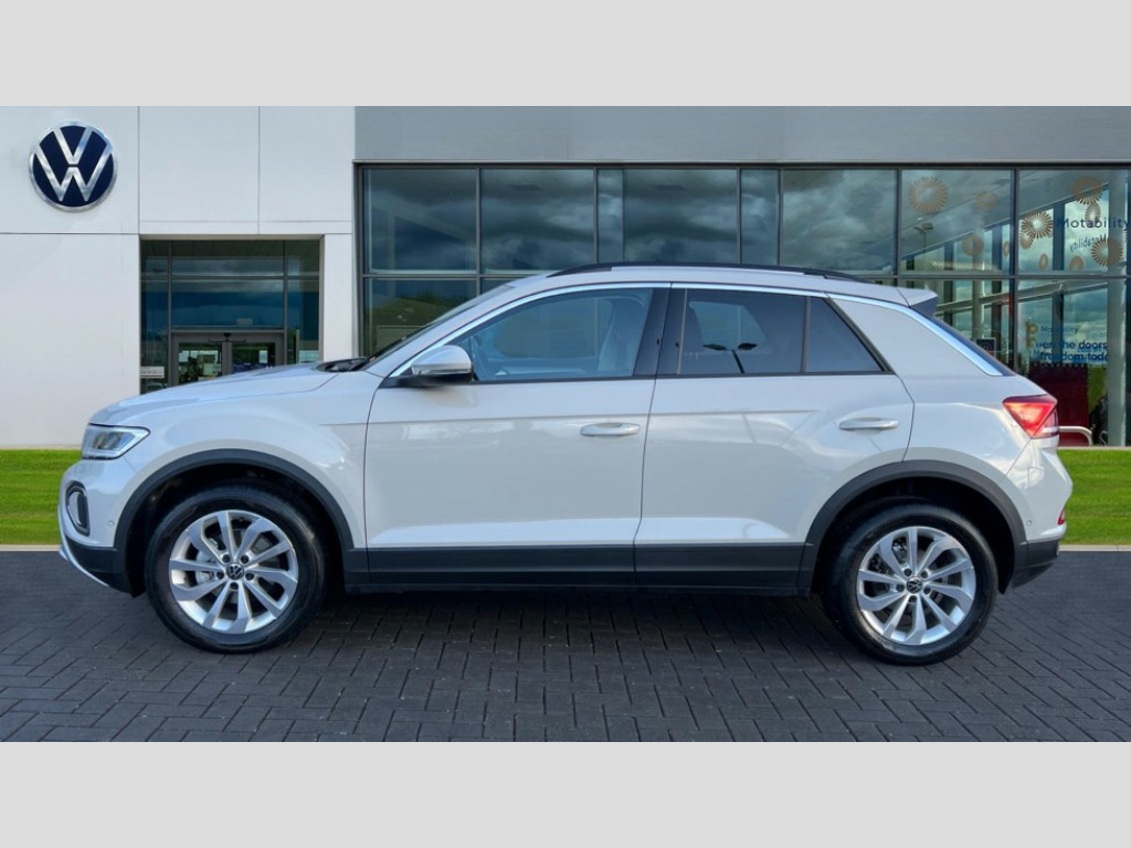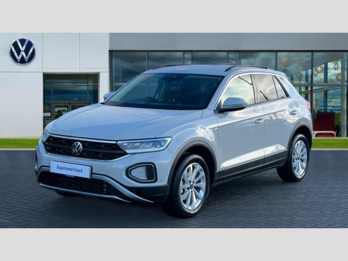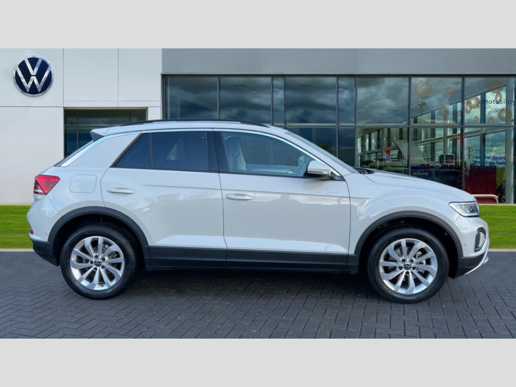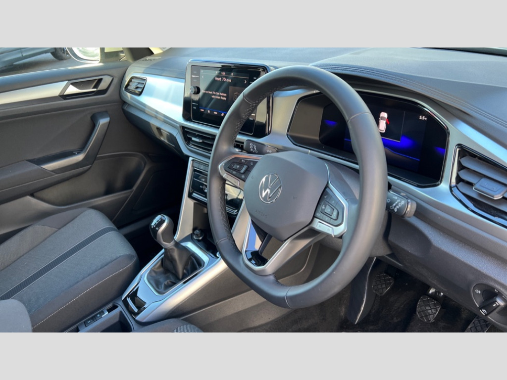 Volkswagen T-Roc 1.5 TSI Match 5dr Advanced driver attention and drowsiness monitor, Dynamic road sign display, Emergency call service, Lane keeping system Lane Assist, Mobile phone interface, Modified key software - reduce switch off time for key status change to Long no motion, Online services, Park assist including front and rear parking sensors, Power assisted speed sensitive steering, Rear view camera, Service interval indicator, Tailgate/trunk lid release from outside, Think blue trainer driver tips and journey analysis, Warning sound and light for front seatbelts unfastened, Wireless app connect, Battery regeneration during braking, Front shock absorption, Rear shock absorption chassis with increased ride height, Start/stop function with battery regeneration, DAB Digital radio, Diversity antenna for FM reception, Music playback - MP3, WMA and AAC files, SD card slot, Simultaneous pairing of 2 compatible mobile devices, Title and cover art display, We Connect and We Connect Plus functionality, Auto dimming interior rear view mirror, Automatic hazard lights activation under emergency braking, Automatic headlight control with LED separate daytime running lights with coming/leaving home function, Black roof rails, Body coloured bumpers and radiator grille with chrome trim and front fog lamps with chrome bezel, Body coloured exterior mirror housings and door handles, Electrically adjustable and heated door mirrors, Extended roof spoiler, Exterior mirrors aspherical on driver side, convex on front passenger side, External USB type C socket and charging sockets, Front windscreen wiper with intermittent wipe and 4 position delay, Heated rear window, LED 3rd brake light, LED rear combination lamps, LED rear number plate lights, Power windows with comfort operation and circuit breaker, Privacy glass for rear side windows and rear window, Rain sensor, Rear exhaust tailpipe, Rear fog light on one side and reversing lights on both sides, Rear side wing doors, Rear wash/wipe with intermittent wipe setting, Remote electrically foldable door mirrors, puddle lights and reverse activated passenger's door mirror, 12V power socket in centre console, 3 rear head restraints, 3 seat bench in 2nd row, 4 load lashing points in luggage compartment, Air care climatronic air conditoning system with active combination filter and 2-zone temperature control, Black stitching for floor mats, Ceramique roof liner, Cloth upholstery, Door and side trim panel in cloth, Drawer under drivers seat, Driver/front passenger seat height adjustment, Front centre armrest, Front comfort sports seats, Front cupholders x 2, Front reading light, Front seat back storage pockets, Glove compartment door with light, Instrument lighting, white adjustable panel illumination, Interior ambient lighting and surround lighting, Interior light delay, Isofix child seat preparation, Leather gearshift handle, Load-through provision with cup holder when folded down ('Unsplit rear seat bench, split folding backrest, with centre armrest), Luggage compartment lighting, Lumbar support for driver's and front passengers seat, Non-folding front passenger seat backrest, Single front passenger seat, Storage compartment in left and right luggage area, Storage compartment in rear doors, Storage compartments in driver and front passenger doors, Sunvisors with illuminated vanity mirrors, Variable boot floor, height adjustable and removable, Driver assistance pack without proactive passenger protection - T-Roc Life/Match, 3 point height adj front seatbelts + pretensioners, 3 point seatbelts in outer rear with ECE label, ABS, Child locks on rear doors, City emergency braking and pedestrian monitoring, Driver and front passenger airbag with front passenger airbag deactivation, Driver and front passenger safety-optimised head restraints, Drivers seatbelt reminder, Electronic parking brake, Electronic Stability Control (ESC) inc EDL (Electronic Differential Lock) and ASR (Traction Control), Front and rear passengers curtain airbag system including front side airbags, Front disc brakes, Hill start assist, Predictive pedestrian protection, Rear disc brakes, Two tone horn, Tyre pressure loss indicator, Volkswagen roadside assistance, Alarm with interior protection, Keyless locking and starting system keyless access with safelock, Pewter matt decorative inserts for intrument panel, centre console and door panels at the front, Trims for alloy wheels