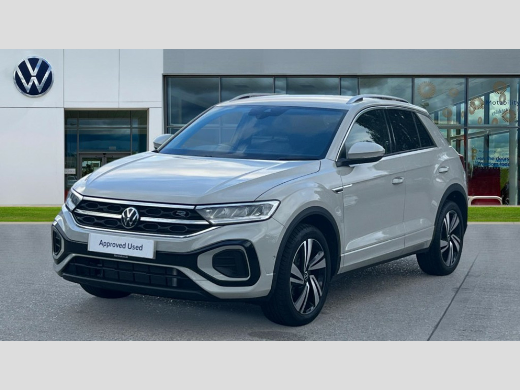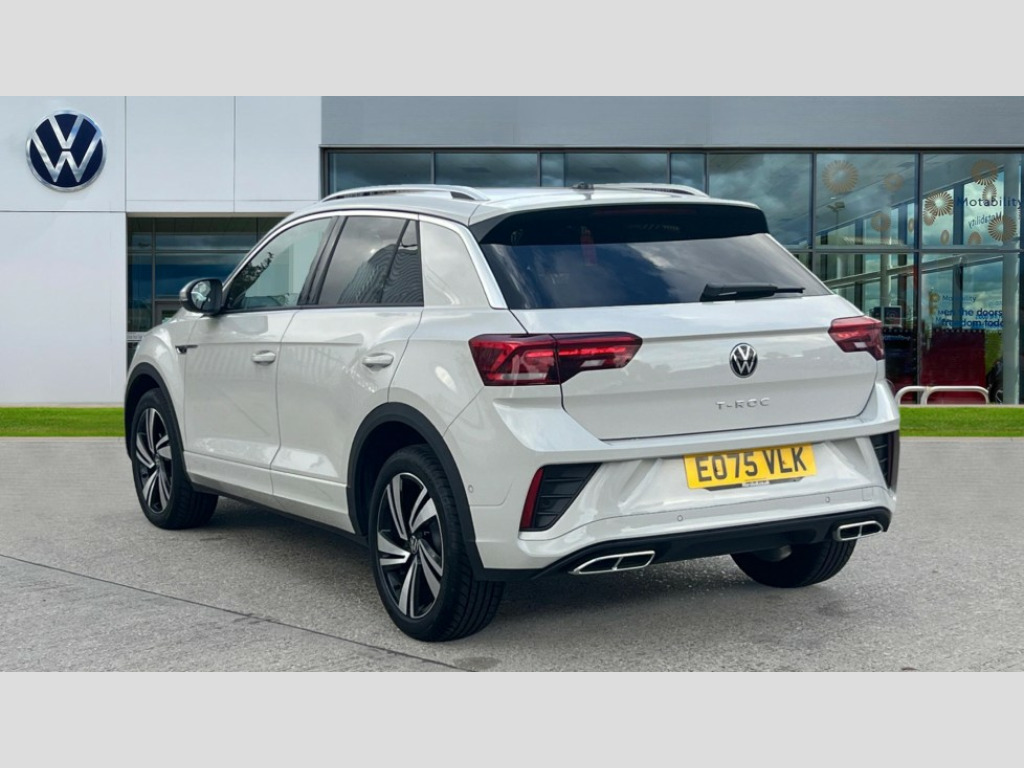 Volkswagen T-Roc 1.5 TSI R-Line 5dr 10.25" Digital cockpit pro, Advanced driver attention and drowsiness monitor, Emergency call service, Lane keeping system Lane Assist, Mobile phone interface, Modified key software - reduce switch off time for key status change to Long no motion, Online services, Park assist including front and rear parking sensors, Service interval indicator, Tailgate/trunk lid release from outside, Think blue trainer driver tips and journey analysis, Warning sound and light for front seatbelts unfastened, Wireless app connect, Battery regeneration during braking, Start/stop function with battery regeneration, DAB Digital radio, Diversity antenna for FM reception, Front and rear 6 speakers, Music playback - MP3, WMA and AAC files, Premium USB cable in choice of either Apple or Android smartphone compatibility, SD card slot, Simultaneous pairing of 2 compatible mobile devices, Title and cover art display, We Connect and We Connect Plus functionality, Auto dimming interior rear view mirror, Automatic hazard lights activation under emergency braking, Automatic headlight control with LED separate daytime running lights with coming/leaving home function, Body coloured exterior mirror housings and door handles, Electrically adjustable and heated door mirrors, Extended roof spoiler, Exterior mirrors aspherical on driver side, convex on front passenger side, External USB type C socket and charging sockets, Front windscreen wiper with intermittent wipe and 4 position delay, Heated rear window, LED 3rd brake light, LED rear combination lamps, LED rear number plate lights, Power windows with comfort operation and circuit breaker, Privacy glass for rear side windows and rear window, R-Line design body coloured bumpers, Rain sensor, Rear exhaust tailpipe, Rear fog light on one side and reversing lights on both sides, Rear side wing doors, Rear wash/wipe with intermittent wipe setting, Remote electrically foldable door mirrors, puddle lights and reverse activated passenger's door mirror, 12V power socket in centre console, 3 rear head restraints, 3 seat bench in 2nd row, 4 load lashing points in luggage compartment, Air care climatronic air conditoning system with active combination filter and 2-zone temperature control, Black roof lining, Chrome plated decorative trims, Chrome plated radiator grille inserts, air vent surrounds and light switch surrounds, Door and side trim panel with leatherette insert, Front + rear carpet mats, Front centre armrest, Front cupholders x 2, Front footwell illumination, Front reading light, Front scuff plates with R Line logo, Front seat back storage pockets, Glove compartment door with light, Instrument lighting, white adjustable panel illumination, Interior ambient lighting and surround lighting, Interior light delay, Isofix child seat preparation, Leather gearshift handle, Load-through provision with cup holder when folded down ('Unsplit rear seat bench, split folding backrest, with centre armrest), Luggage compartment lighting, Single front passenger seat, Stainless steel pedals, Storage compartment in left and right luggage area, Storage compartment in rear doors, Storage compartments in driver and front passenger doors, Sunvisors with illuminated vanity mirrors, Variable boot floor, height adjustable and removable, Driver assistance pack without proactive passenger protection - T-Roc, 3 point height adj front seatbelts + pretensioners, 3 point seatbelts in outer rear with ECE label, ABS, Child locks on rear doors, City emergency braking and pedestrian monitoring, Driver and front passenger airbag with front passenger airbag deactivation, Driver and front passenger safety-optimised head restraints, Drivers seatbelt reminder, Electronic parking brake, Electronic Stability Control (ESC) inc EDL (Electronic Differential Lock) and ASR (Traction Control), Front and rear passengers curtain airbag system including front side airbags, Hill start assist, Predictive pedestrian protection, Rear disc brakes, Two tone horn, Tyre pressure loss indicator, Volkswagen roadside assistance, Piano black decorative inserts in dashboard and front door trim panels, Trims for alloy wheels