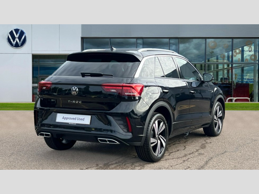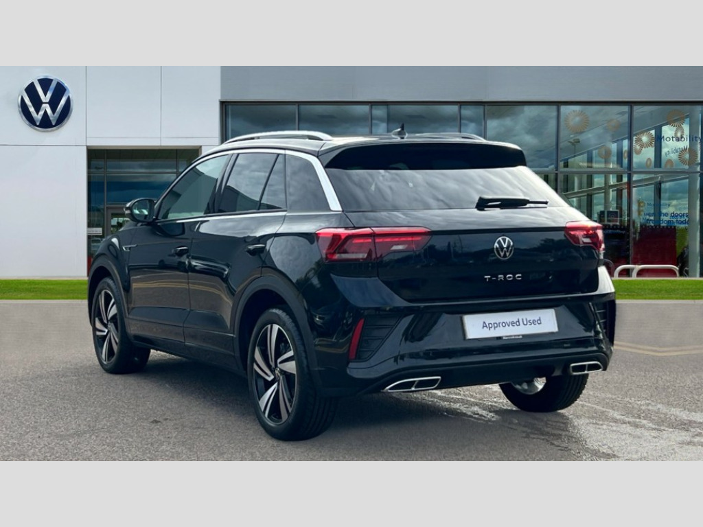 Give us a call and we guarantee to provide you with the best experience possible when buying your next vehicle. 10.25" Digital cockpit pro, Advanced driver attention and drowsiness monitor, Emergency call service, Lane keeping system Lane Assist, Mobile phone interface, Modified key software - reduce switch off time for key status change to Long no motion, Online services, Park assist including front and rear parking sensors, Service interval indicator, Tailgate/trunk lid release from outside, Think blue trainer driver tips and journey analysis, Warning sound and light for front seatbelts unfastened, Wireless app connect, Battery regeneration during braking, Start/stop function with battery regeneration, DAB Digital radio, Diversity antenna for FM reception, Front and rear 6 speakers, Music playback - MP3, WMA and AAC files, Premium USB cable in choice of either Apple or Android smartphone compatibility, SD card slot, Simultaneous pairing of 2 compatible mobile devices, Title and cover art display, We Connect and We Connect Plus functionality, Auto dimming interior rear view mirror, Automatic hazard lights activation under emergency braking, Automatic headlight control with LED separate daytime running lights with coming/leaving home function, Body coloured exterior mirror housings and door handles, Electrically adjustable and heated door mirrors, Extended roof spoiler, Exterior mirrors aspherical on driver side, convex on front passenger side, External USB type C socket and charging sockets, Front windscreen wiper with intermittent wipe and 4 position delay, Heated rear window, LED 3rd brake light, LED rear combination lamps, LED rear number plate lights, Power windows with comfort operation and circuit breaker, Privacy glass for rear side windows and rear window, R-Line design body coloured bumpers, Rain sensor, Rear exhaust tailpipe, Rear fog light on one side and reversing lights on both sides, Rear side wing doors, Rear wash/wipe with intermittent wipe setting, Remote electrically foldable door mirrors, puddle lights and reverse activated passenger's door mirror, 12V power socket in centre console, 3 rear head restraints, 3 seat bench in 2nd row, 4 load lashing points in luggage compartment, Air care climatronic air conditoning system with active combination filter and 2-zone temperature control, Black roof lining, Chrome plated decorative trims, Chrome plated radiator grille inserts, air vent surrounds and light switch surrounds, Door and side trim panel with leatherette insert, Front + rear carpet mats, Front centre armrest, Front cupholders x 2, Front footwell illumination, Front reading light, Front scuff plates with R Line logo, Front seat back storage pockets, Glove compartment door with light, Instrument lighting, white adjustable panel illumination, Interior ambient lighting and surround lighting, Interior light delay, Isofix child seat preparation, Leather gearshift handle, Load-through provision with cup holder when folded down ('Unsplit rear seat bench, split folding backrest, with centre armrest), Luggage compartment lighting, Single front passenger seat, Stainless steel pedals, Storage compartment in left and right luggage area, Storage compartment in rear doors, Storage compartments in driver and front passenger doors, Sunvisors with illuminated vanity mirrors, Variable boot floor, height adjustable and removable, Driver assistance pack without proactive passenger protection - T-Roc, 3 point height adj front seatbelts + pretensioners, 3 point seatbelts in outer rear with ECE label, ABS, Child locks on rear doors, City emergency braking and pedestrian monitoring, Driver and front passenger airbag with front passenger airbag deactivation, Driver and front passenger safety-optimised head restraints, Drivers seatbelt reminder, Electronic parking brake, Electronic Stability Control (ESC) inc EDL (Electronic Differential Lock) and ASR (Traction Control), Front and rear passengers curtain airbag system including front side airbags, Hill start assist, Predictive pedestrian protection, Rear disc brakes, Two tone horn, Tyre pressure loss indicator, Volkswagen roadside assistance, Piano black decorative inserts in dashboard and front door trim panels, Trims for alloy wheels