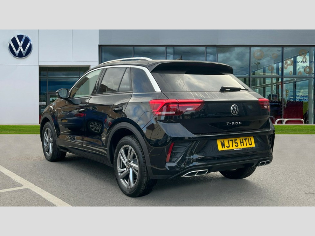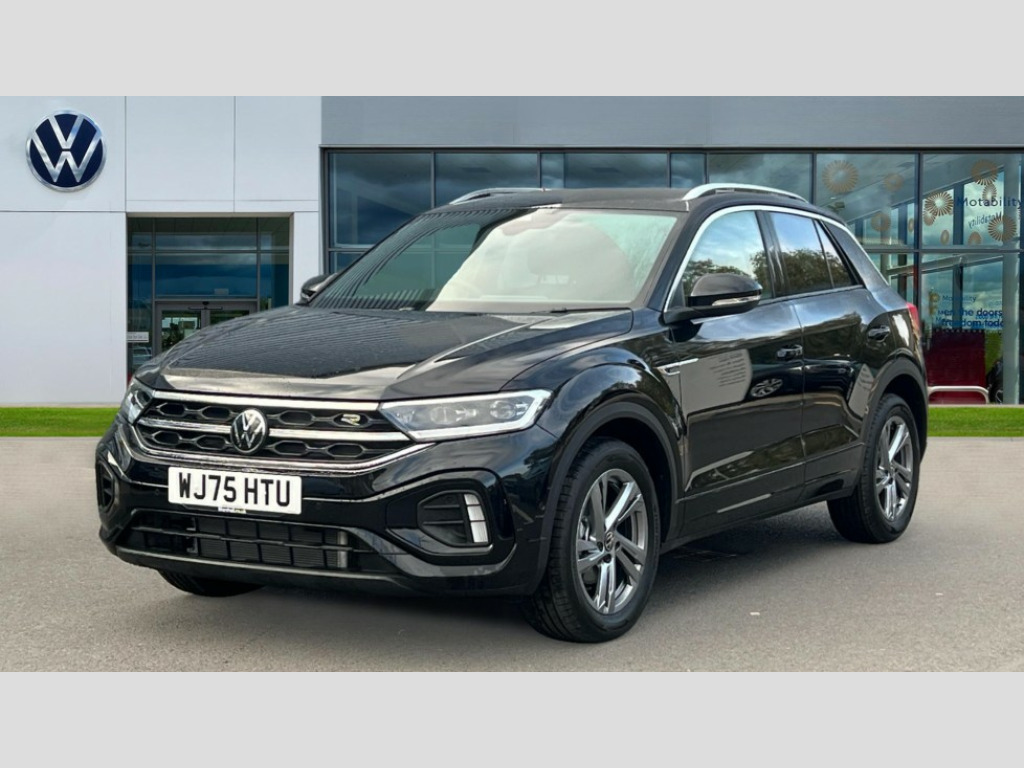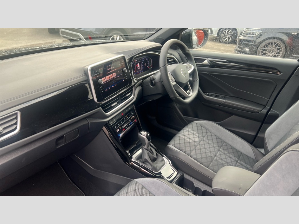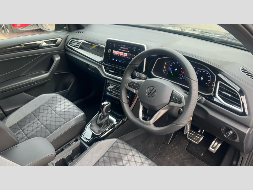 Volkswagen T-Roc 1.5 TSI R-Line 5dr DSG 10.25" Digital cockpit pro, Advanced driver attention and drowsiness monitor, Emergency call service, Lane keeping system Lane Assist, Mobile phone interface, Modified key software - reduce switch off time for key status change to Long no motion, Online services, Park assist including front and rear parking sensors, Service interval indicator, Tailgate/trunk lid release from outside, Think blue trainer driver tips and journey analysis, Warning sound and light for front seatbelts unfastened, Wireless app connect, Battery regeneration during braking, Start/stop function with battery regeneration, DAB Digital radio, Diversity antenna for FM reception, Front and rear 6 speakers, Music playback - MP3, WMA and AAC files, Premium USB cable in choice of either Apple or Android smartphone compatibility, SD card slot, Simultaneous pairing of 2 compatible mobile devices, Title and cover art display, We Connect and We Connect Plus functionality, Auto dimming interior rear view mirror, Automatic hazard lights activation under emergency braking, Automatic headlight control with LED separate daytime running lights with coming/leaving home function, Body coloured exterior mirror housings and door handles, Electrically adjustable and heated door mirrors, Extended roof spoiler, Exterior mirrors aspherical on driver side, convex on front passenger side, External USB type C socket and charging sockets, Front windscreen wiper with intermittent wipe and 4 position delay, Heated rear window, LED 3rd brake light, LED rear combination lamps, LED rear number plate lights, Power windows with comfort operation and circuit breaker, Privacy glass for rear side windows and rear window, R-Line design body coloured bumpers, Rain sensor, Rear exhaust tailpipe, Rear fog light on one side and reversing lights on both sides, Rear side wing doors, Rear wash/wipe with intermittent wipe setting, Remote electrically foldable door mirrors, puddle lights and reverse activated passenger's door mirror, 12V power socket in centre console, 3 rear head restraints, 3 seat bench in 2nd row, 4 load lashing points in luggage compartment, Air care climatronic air conditoning system with active combination filter and 2-zone temperature control, Black roof lining, Chrome plated decorative trims, Chrome plated radiator grille inserts, air vent surrounds and light switch surrounds, Door and side trim panel with leatherette insert, Front + rear carpet mats, Front centre armrest, Front cupholders x 2, Front footwell illumination, Front reading light, Front scuff plates with R Line logo, Front seat back storage pockets, Glove compartment door with light, Instrument lighting, white adjustable panel illumination, Interior ambient lighting and surround lighting, Interior light delay, Isofix child seat preparation, Leather gearshift handle, Load-through provision with cup holder when folded down ('Unsplit rear seat bench, split folding backrest, with centre armrest), Luggage compartment lighting, Single front passenger seat, Stainless steel pedals, Storage compartment in left and right luggage area, Storage compartment in rear doors, Storage compartments in driver and front passenger doors, Sunvisors with illuminated vanity mirrors, Variable boot floor, height adjustable and removable, Driver assistance pack without proactive passenger protection - T-Roc, 3 point height adj front seatbelts + pretensioners, 3 point seatbelts in outer rear with ECE label, ABS, Child locks on rear doors, City emergency braking and pedestrian monitoring, Driver and front passenger airbag with front passenger airbag deactivation, Driver and front passenger safety-optimised head restraints, Drivers seatbelt reminder, Electronic parking brake, Electronic Stability Control (ESC) inc EDL (Electronic Differential Lock) and ASR (Traction Control), Front and rear passengers curtain airbag system including front side airbags, Hill start assist, Predictive pedestrian protection, Rear disc brakes, Two tone horn, Tyre pressure loss indicator, Volkswagen roadside assistance, Piano black decorative inserts in dashboard and front door trim panels, Trims for alloy wheels