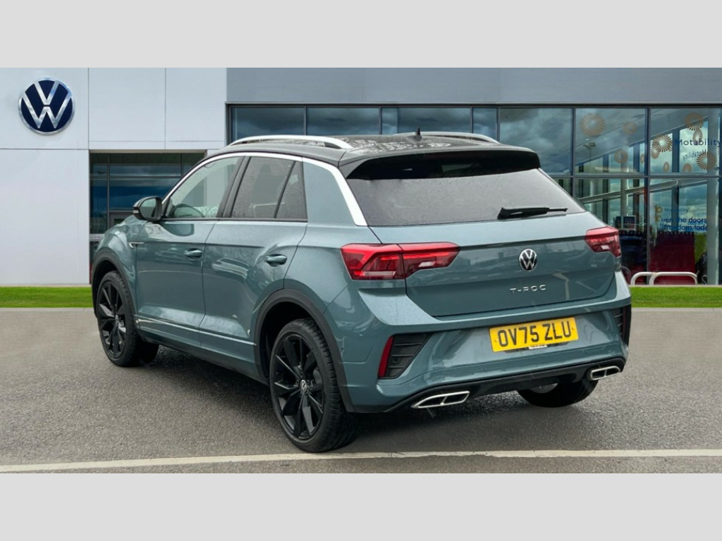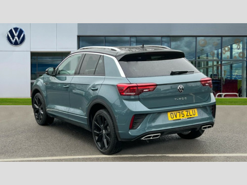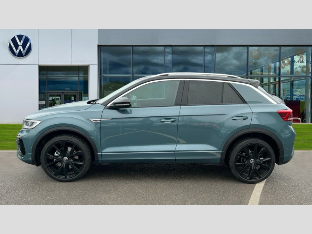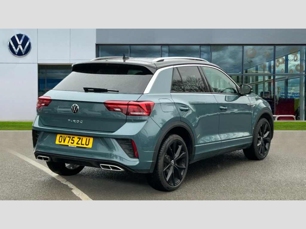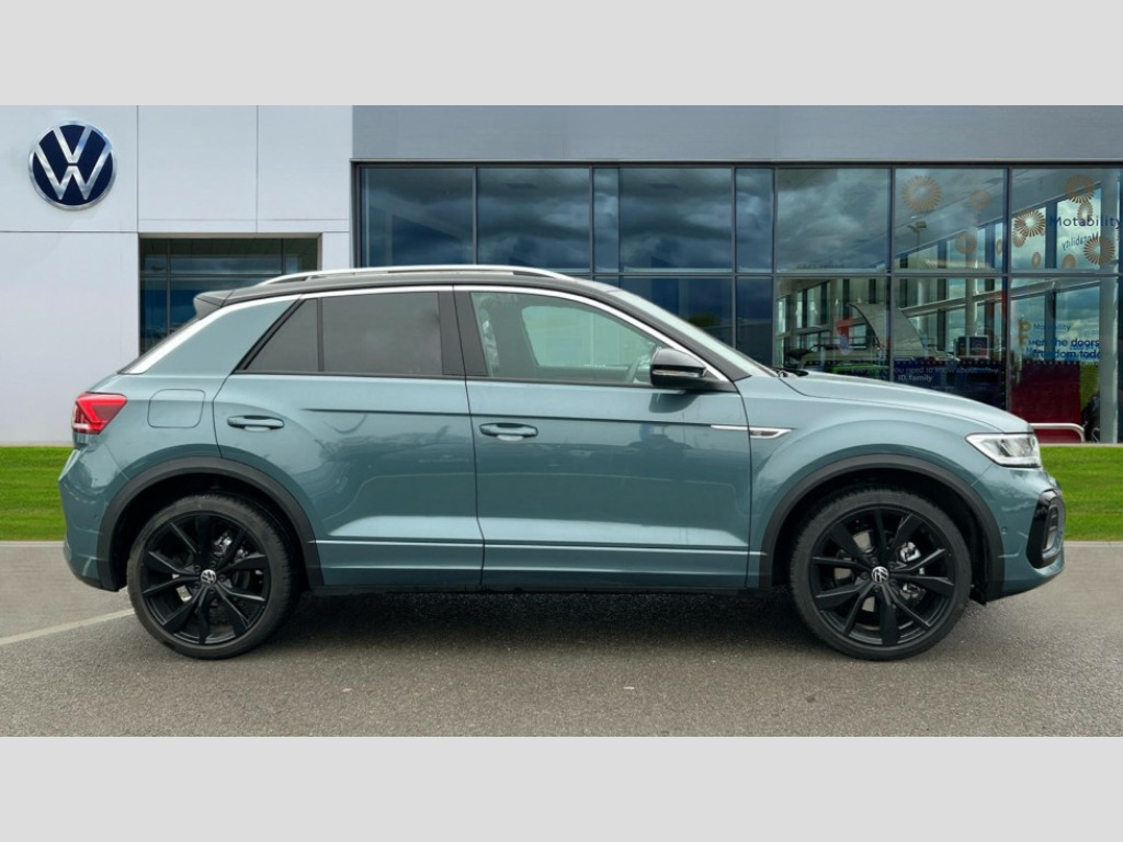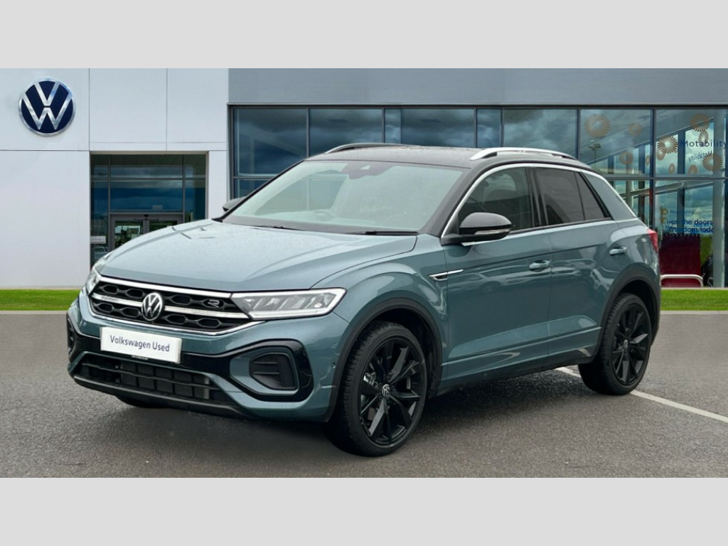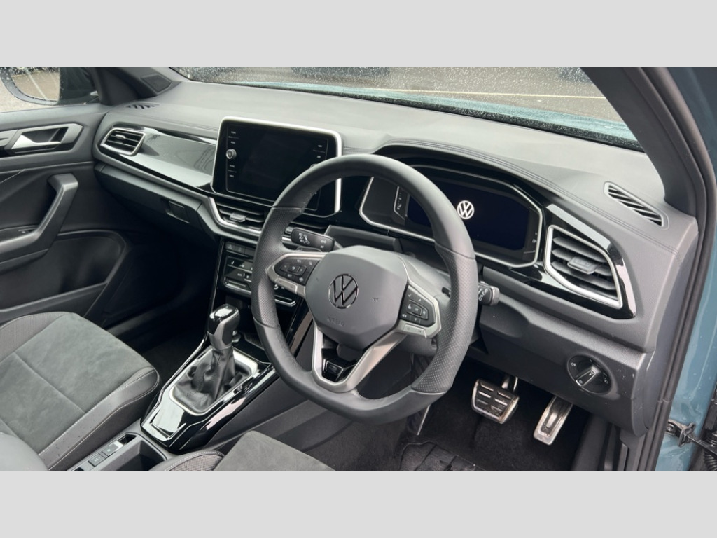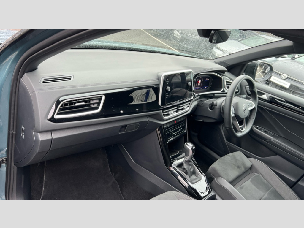Volkswagen T-Roc 1.5 TSI R-Line 5dr DSG 10.25" Digital cockpit pro, Advanced driver attention and drowsiness monitor, Emergency call service, Lane keeping system Lane Assist, Mobile phone interface, Modified key software - reduce switch off time for key status change to Long no motion, Online services, Park assist including front and rear parking sensors, Service interval indicator, Tailgate/trunk lid release from outside, Think blue trainer driver tips and journey analysis, Warning sound and light for front seatbelts unfastened, Wireless app connect, Battery regeneration during braking, Start/stop function with battery regeneration, DAB Digital radio, Diversity antenna for FM reception, Front and rear 6 speakers, Music playback - MP3, WMA and AAC files, Premium USB cable in choice of either Apple or Android smartphone compatibility, SD card slot, Simultaneous pairing of 2 compatible mobile devices, Title and cover art display, We Connect and We Connect Plus functionality, Auto dimming interior rear view mirror, Automatic hazard lights activation under emergency braking, Automatic headlight control with LED separate daytime running lights with coming/leaving home function, Body coloured exterior mirror housings and door handles, Electrically adjustable and heated door mirrors, Extended roof spoiler, Exterior mirrors aspherical on driver side, convex on front passenger side, External USB type C socket and charging sockets, Front windscreen wiper with intermittent wipe and 4 position delay, Heated rear window, LED 3rd brake light, LED rear combination lamps, LED rear number plate lights, Power windows with comfort operation and circuit breaker, Privacy glass for rear side windows and rear window, R-Line design body coloured bumpers, Rain sensor, Rear exhaust tailpipe, Rear fog light on one side and reversing lights on both sides, Rear side wing doors, Rear wash/wipe with intermittent wipe setting, Remote electrically foldable door mirrors, puddle lights and reverse activated passenger's door mirror, 12V power socket in centre console, 3 rear head restraints, 3 seat bench in 2nd row, 4 load lashing points in luggage compartment, Air care climatronic air conditoning system with active combination filter and 2-zone temperature control, Black roof lining, Chrome plated decorative trims, Chrome plated radiator grille inserts, air vent surrounds and light switch surrounds, Door and side trim panel with leatherette insert, Front + rear carpet mats, Front centre armrest, Front cupholders x 2, Front footwell illumination, Front reading light, Front scuff plates with R Line logo, Front seat back storage pockets, Glove compartment door with light, Instrument lighting, white adjustable panel illumination, Interior ambient lighting and surround lighting, Interior light delay, Isofix child seat preparation, Leather gearshift handle, Load-through provision with cup holder when folded down ('Unsplit rear seat bench, split folding backrest, with centre armrest), Luggage compartment lighting, Single front passenger seat, Stainless steel pedals, Storage compartment in left and right luggage area, Storage compartment in rear doors, Storage compartments in driver and front passenger doors, Sunvisors with illuminated vanity mirrors, Variable boot floor, height adjustable and removable, Driver assistance pack without proactive passenger protection - T-Roc, 3 point height adj front seatbelts + pretensioners, 3 point seatbelts in outer rear with ECE label, ABS, Child locks on rear doors, City emergency braking and pedestrian monitoring, Driver and front passenger airbag with front passenger airbag deactivation, Driver and front passenger safety-optimised head restraints, Drivers seatbelt reminder, Electronic parking brake, Electronic Stability Control (ESC) inc EDL (Electronic Differential Lock) and ASR (Traction Control), Front and rear passengers curtain airbag system including front side airbags, Hill start assist, Predictive pedestrian protection, Rear disc brakes, Two tone horn, Tyre pressure loss indicator, Volkswagen roadside assistance, Piano black decorative inserts in dashboard and front door trim panels, Trims for alloy wheels