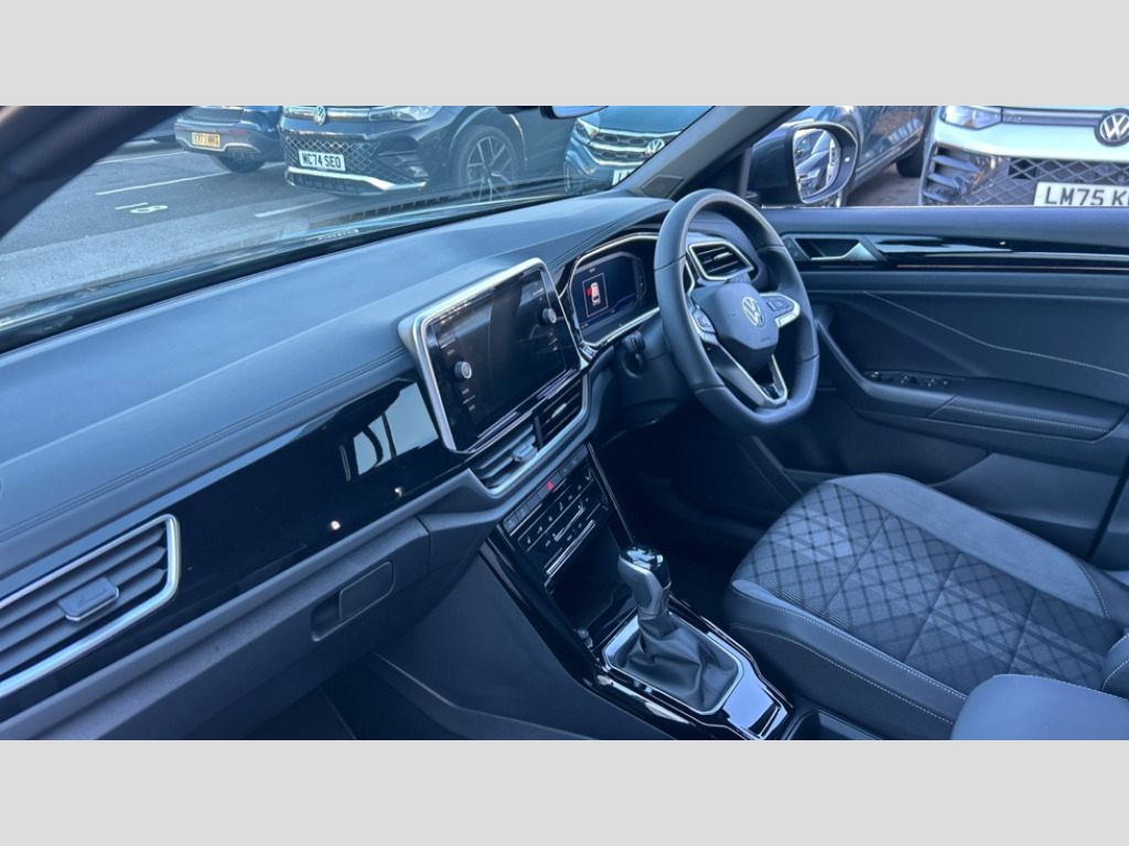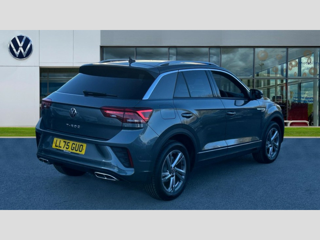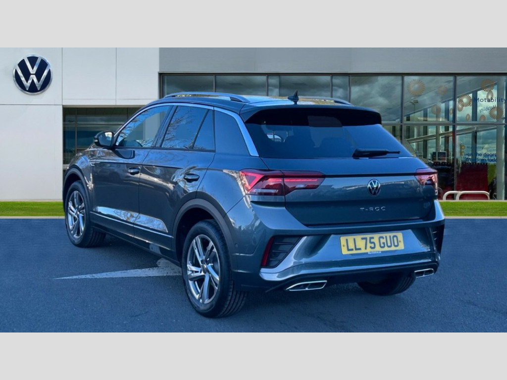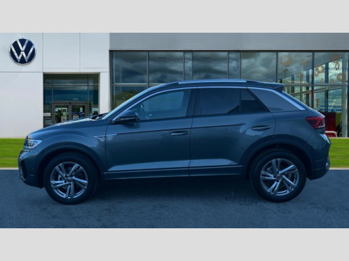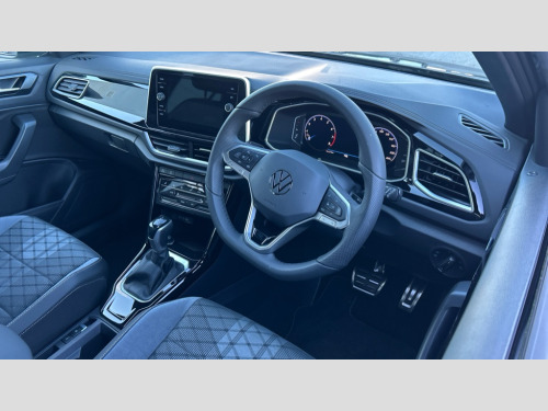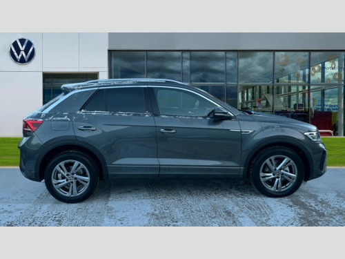 Volkswagen T-Roc 1.5 TSI R-Line 5dr DSG This 2025 Volkswagen T-Roc TSI R-Line is a Volkswagen manufacturer approved vehicle with only one owner from new, offering peace of mind and excellent provenance. This stylish R-Line variant is powered by a 1.5 litre petrol engine, meeting Euro 6 emission standards. It comes equipped with impressive LED Performance Headlights, a premium VW Sound system, and a Winter Pack that includes heated seats for your comfort. Stay connected and charged with the mobile phone interface featuring wireless inductive charging, and navigate with ease using the Discover Media Navigation System, complete with streaming, internet capabilities, and a front camera for parking assistance.