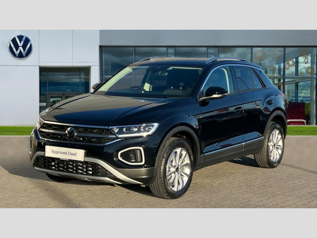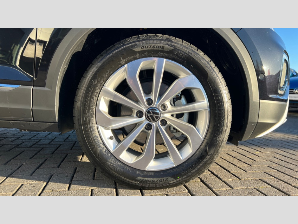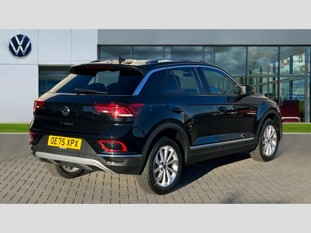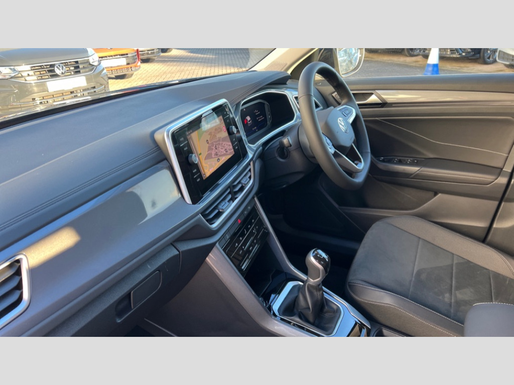Volkswagen T-Roc 1.5 TSI Style 5dr 10.25" Digital cockpit pro, Advanced driver attention and drowsiness monitor, Emergency call service, Lane keeping system Lane Assist, Mobile phone interface, Modified key software - reduce switch off time for key status change to Long no motion, Online services, Park assist including front and rear parking sensors, Power assisted speed sensitive steering, Service interval indicator, Tailgate/trunk lid release from outside, Think blue trainer driver tips and journey analysis, Warning sound and light for front seatbelts unfastened, Wireless app connect, Battery regeneration during braking, Start/stop function with battery regeneration, DAB Digital radio, Diversity antenna for FM reception, Front and rear 6 speakers, Music playback - MP3, WMA and AAC files, Premium USB cable in choice of either Apple or Android smartphone compatibility, SD card slot, Simultaneous pairing of 2 compatible mobile devices, Title and cover art display, We Connect and We Connect Plus functionality, Auto dimming interior rear view mirror, Automatic hazard lights activation under emergency braking, Automatic headlight control with LED separate daytime running lights with coming/leaving home function, Body colour sports bumpers with silver metallic underbody fascia, Body coloured exterior mirror housings and door handles, Dynamic headlight range control with self adjusting whilst driving, Electrically adjustable and heated door mirrors, Extended roof spoiler, Exterior mirrors aspherical on driver side, convex on front passenger side, External USB type C socket and charging sockets, Front windscreen wiper with intermittent wipe and 4 position delay, Heated rear window, LED 3rd brake light, LED rear combination lamps, LED rear number plate lights, Light mode for poor weather, rain, fog or snow, Power windows with comfort operation and circuit breaker, Privacy glass for rear side windows and rear window, Rain sensor, Rear exhaust tailpipe, Rear fog light on one side and reversing lights on both sides, Rear side wing doors, Rear wash/wipe with intermittent wipe setting, Remote electrically foldable door mirrors, puddle lights and reverse activated passenger's door mirror, 12V power socket in centre console, 3 rear head restraints, 3 seat bench in 2nd row, 4 load lashing points in luggage compartment, Air care climatronic air conditoning system with active combination filter and 2-zone temperature control, Chrome plated radiator grille inserts, air vent surrounds and light switch surrounds, Door and side trim panel with leatherette insert, Drawer under drivers seat, Front + rear carpet mats, Front centre armrest, Front comfort sports seats, Front cupholders x 2, Front footwell illumination, Front seat back storage pockets, Glove compartment door with light, Instrument lighting, white adjustable panel illumination, Interior ambient lighting and surround lighting, Interior light delay, Isofix child seat preparation, Leather gearshift handle, LED interior light with switch off delay/dimmer and 2 front/rear LED reading lights, Load-through provision with cup holder when folded down ('Unsplit rear seat bench, split folding backrest, with centre armrest), Luggage compartment lighting, Non-folding front passenger seat backrest, Single front passenger seat, Storage compartment in left and right luggage area, Storage compartment in rear doors, Storage compartments in driver and front passenger doors, Sunvisors with illuminated vanity mirrors, Variable boot floor, height adjustable and removable, Driver assistance pack without proactive passenger protection - T-Roc, 3 point height adj front seatbelts + pretensioners, 3 point seatbelts in outer rear with ECE label, ABS, Child locks on rear doors, City emergency braking and pedestrian monitoring, Driver and front passenger airbag with front passenger airbag deactivation, Driver and front passenger safety-optimised head restraints, Drivers seatbelt reminder, Electronic parking brake, Electronic Stability Control (ESC) inc EDL (Electronic Differential Lock) and ASR (Traction Control), Front and rear passengers curtain airbag system including front side airbags, Predictive pedestrian protection, Rear disc brakes, Two tone horn, Tyre pressure loss indicator, Volkswagen roadside assistance, Deep iron grey decorative inserts in dashboard, centre console and front door trim panels, Trims for alloy wheels