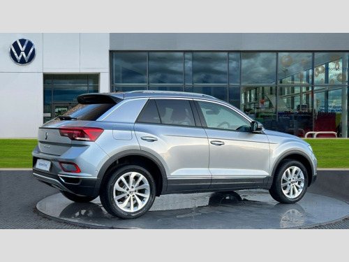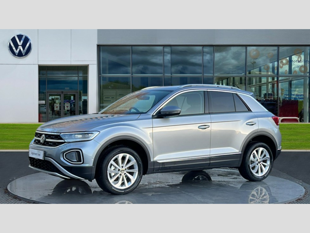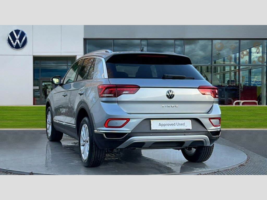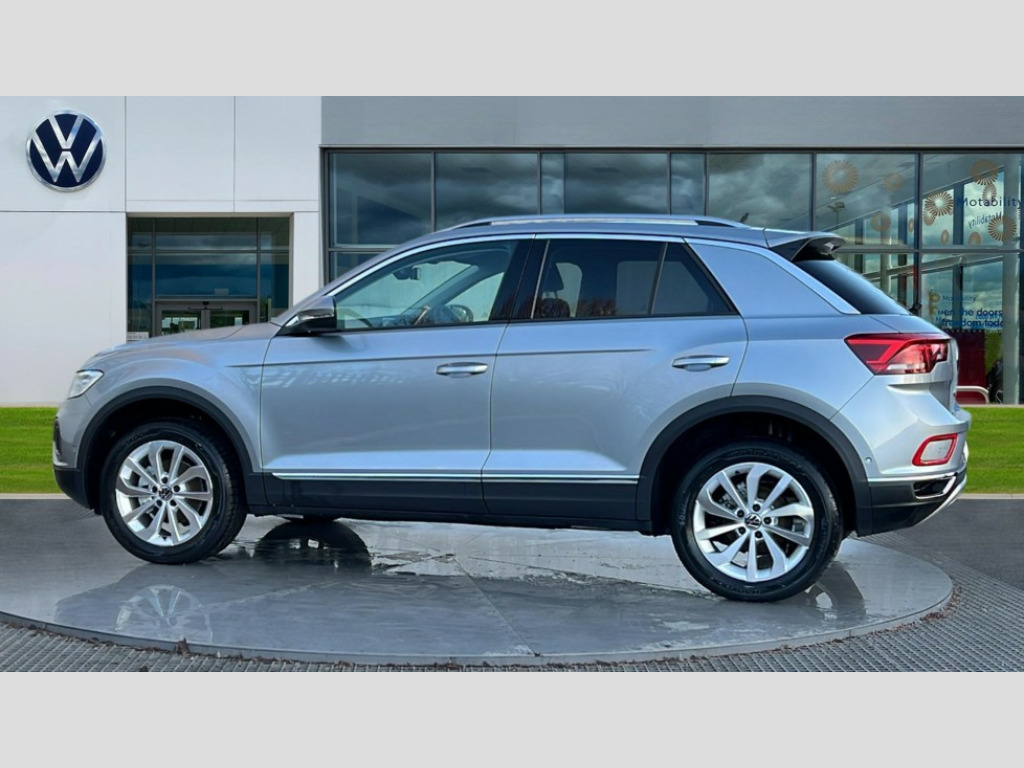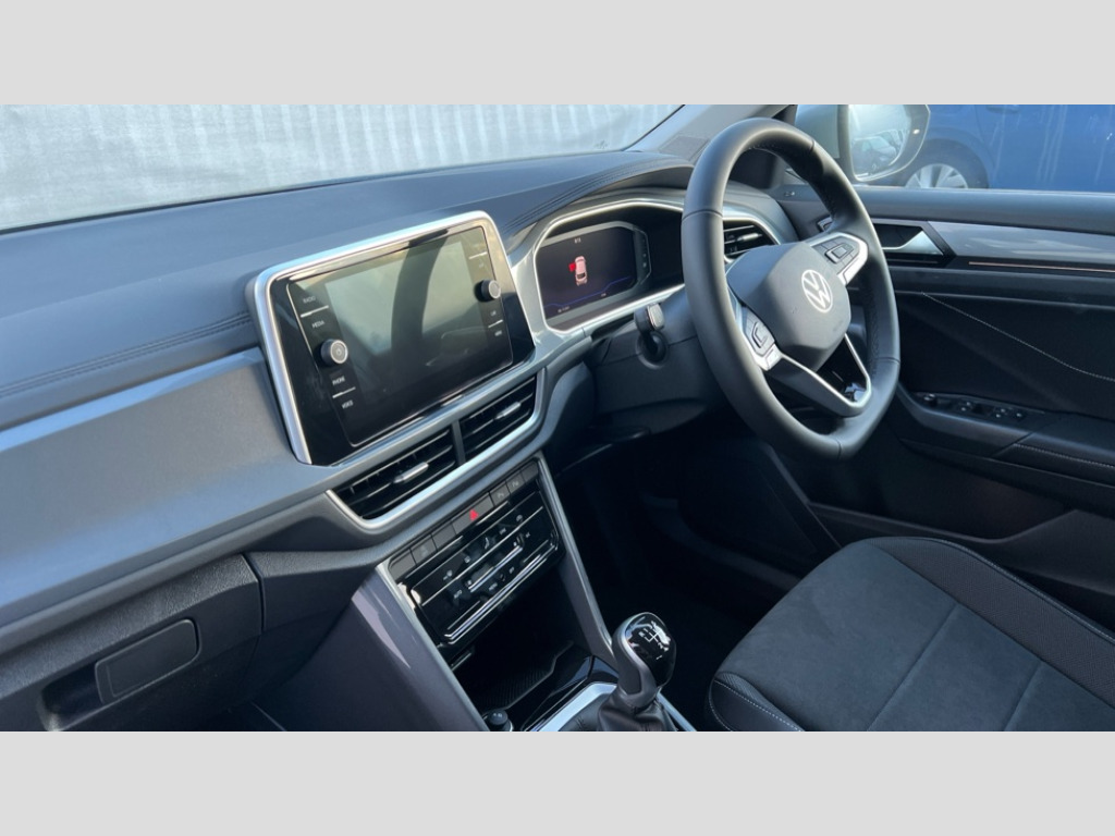 Volkswagen T-Roc 1.5 TSI Style 5dr 10.25" Digital cockpit pro, Advanced driver attention and drowsiness monitor, Emergency call service, Lane keeping system Lane Assist, Mobile phone interface, Modified key software - reduce switch off time for key status change to Long no motion, Online services, Park assist including front and rear parking sensors, Power assisted speed sensitive steering, Service interval indicator, Tailgate/trunk lid release from outside, Think blue trainer driver tips and journey analysis, Warning sound and light for front seatbelts unfastened, Wireless app connect, Battery regeneration during braking, Start/stop function with battery regeneration, DAB Digital radio, Diversity antenna for FM reception, Front and rear 6 speakers, Music playback - MP3, WMA and AAC files, Premium USB cable in choice of either Apple or Android smartphone compatibility, SD card slot, Simultaneous pairing of 2 compatible mobile devices, Title and cover art display, We Connect and We Connect Plus functionality, Auto dimming interior rear view mirror, Automatic hazard lights activation under emergency braking, Automatic headlight control with LED separate daytime running lights with coming/leaving home function, Body colour sports bumpers with silver metallic underbody fascia, Body coloured exterior mirror housings and door handles, Dynamic headlight range control with self adjusting whilst driving, Electrically adjustable and heated door mirrors, Extended roof spoiler, Exterior mirrors aspherical on driver side, convex on front passenger side, External USB type C socket and charging sockets, Front windscreen wiper with intermittent wipe and 4 position delay, Heated rear window, LED 3rd brake light, LED rear combination lamps, LED rear number plate lights, Light mode for poor weather, rain, fog or snow, Power windows with comfort operation and circuit breaker, Privacy glass for rear side windows and rear window, Rain sensor, Rear exhaust tailpipe, Rear fog light on one side and reversing lights on both sides, Rear side wing doors, Rear wash/wipe with intermittent wipe setting, Remote electrically foldable door mirrors, puddle lights and reverse activated passenger's door mirror, 12V power socket in centre console, 3 rear head restraints, 3 seat bench in 2nd row, 4 load lashing points in luggage compartment, Air care climatronic air conditoning system with active combination filter and 2-zone temperature control, Chrome plated radiator grille inserts, air vent surrounds and light switch surrounds, Door and side trim panel with leatherette insert, Drawer under drivers seat, Front + rear carpet mats, Front centre armrest, Front comfort sports seats, Front cupholders x 2, Front footwell illumination, Front seat back storage pockets, Glove compartment door with light, Instrument lighting, white adjustable panel illumination, Interior ambient lighting and surround lighting, Interior light delay, Isofix child seat preparation, Leather gearshift handle, LED interior light with switch off delay/dimmer and 2 front/rear LED reading lights, Load-through provision with cup holder when folded down ('Unsplit rear seat bench, split folding backrest, with centre armrest), Luggage compartment lighting, Non-folding front passenger seat backrest, Single front passenger seat, Storage compartment in left and right luggage area, Storage compartment in rear doors, Storage compartments in driver and front passenger doors, Sunvisors with illuminated vanity mirrors, Variable boot floor, height adjustable and removable, Driver assistance pack without proactive passenger protection - T-Roc, 3 point height adj front seatbelts + pretensioners, 3 point seatbelts in outer rear with ECE label, ABS, Child locks on rear doors, City emergency braking and pedestrian monitoring, Driver and front passenger airbag with front passenger airbag deactivation, Driver and front passenger safety-optimised head restraints, Drivers seatbelt reminder, Electronic parking brake, Electronic Stability Control (ESC) inc EDL (Electronic Differential Lock) and ASR (Traction Control), Front and rear passengers curtain airbag system including front side airbags, Predictive pedestrian protection, Rear disc brakes, Two tone horn, Tyre pressure loss indicator, Volkswagen roadside assistance, Deep iron grey decorative inserts in dashboard, centre console and front door trim panels, Trims for alloy wheels