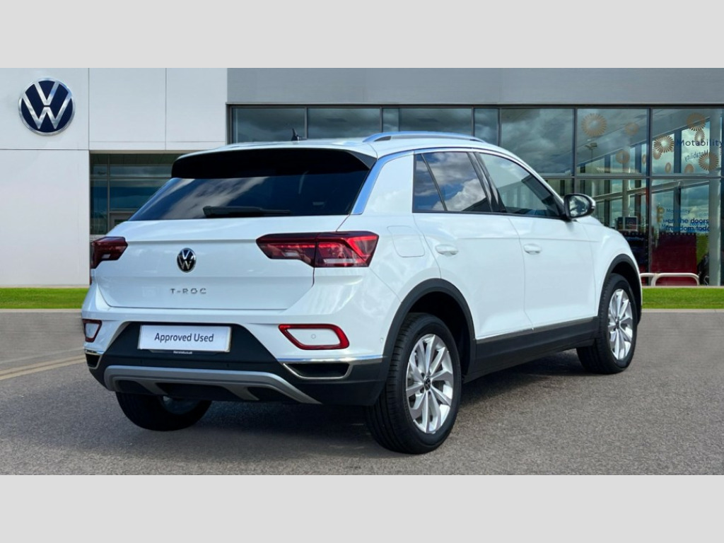 Give us a call and we guarantee to provide you with the best experience possible when buying your next vehicle. 10.25" Digital cockpit pro, Advanced driver attention and drowsiness monitor, Emergency call service, Lane keeping system Lane Assist, Mobile phone interface, Modified key software - reduce switch off time for key status change to Long no motion, Online services, Park assist including front and rear parking sensors, Power assisted speed sensitive steering, Service interval indicator, Tailgate/trunk lid release from outside, Think blue trainer driver tips and journey analysis, Warning sound and light for front seatbelts unfastened, Wireless app connect, Battery regeneration during braking, Start/stop function with battery regeneration, DAB Digital radio, Diversity antenna for FM reception, Front and rear 6 speakers, Music playback - MP3, WMA and AAC files, Premium USB cable in choice of either Apple or Android smartphone compatibility, SD card slot, Simultaneous pairing of 2 compatible mobile devices, Title and cover art display, We Connect and We Connect Plus functionality, Auto dimming interior rear view mirror, Automatic hazard lights activation under emergency braking, Automatic headlight control with LED separate daytime running lights with coming/leaving home function, Body colour sports bumpers with silver metallic underbody fascia, Body coloured exterior mirror housings and door handles, Dynamic headlight range control with self adjusting whilst driving, Electrically adjustable and heated door mirrors, Extended roof spoiler, Exterior mirrors aspherical on driver side, convex on front passenger side, External USB type C socket and charging sockets, Front windscreen wiper with intermittent wipe and 4 position delay, Heated rear window, LED 3rd brake light, LED rear combination lamps, LED rear number plate lights, Light mode for poor weather, rain, fog or snow, Power windows with comfort operation and circuit breaker, Privacy glass for rear side windows and rear window, Rain sensor, Rear exhaust tailpipe, Rear fog light on one side and reversing lights on both sides, Rear side wing doors, Rear wash/wipe with intermittent wipe setting, Remote electrically foldable door mirrors, puddle lights and reverse activated passenger's door mirror, 12V power socket in centre console, 3 rear head restraints, 3 seat bench in 2nd row, 4 load lashing points in luggage compartment, Air care climatronic air conditoning system with active combination filter and 2-zone temperature control, Chrome plated radiator grille inserts, air vent surrounds and light switch surrounds, Door and side trim panel with leatherette insert, Drawer under drivers seat, Front + rear carpet mats, Front centre armrest, Front comfort sports seats, Front cupholders x 2, Front footwell illumination, Front seat back storage pockets, Glove compartment door with light, Instrument lighting, white adjustable panel illumination, Interior ambient lighting and surround lighting, Interior light delay, Isofix child seat preparation, Leather gearshift handle, LED interior light with switch off delay/dimmer and 2 front/rear LED reading lights, Load-through provision with cup holder when folded down ('Unsplit rear seat bench, split folding backrest, with centre armrest), Luggage compartment lighting, Non-folding front passenger seat backrest, Single front passenger seat, Storage compartment in left and right luggage area, Storage compartment in rear doors, Storage compartments in driver and front passenger doors, Sunvisors with illuminated vanity mirrors, Variable boot floor, height adjustable and removable, Driver assistance pack without proactive passenger protection - T-Roc, 3 point height adj front seatbelts + pretensioners, 3 point seatbelts in outer rear with ECE label, ABS, Child locks on rear doors, City emergency braking and pedestrian monitoring, Driver and front passenger airbag with front passenger airbag deactivation, Driver and front passenger safety-optimised head restraints, Drivers seatbelt reminder, Electronic parking brake, Electronic Stability Control (ESC) inc EDL (Electronic Differential Lock) and ASR (Traction Control), Front and rear passengers curtain airbag system including front side airbags, Predictive pedestrian protection, Rear disc brakes, Two tone horn, Tyre pressure loss indicator, Volkswagen roadside assistance, Deep iron grey decorative inserts in dashboard, centre console and front door trim panels, Trims for alloy wheels