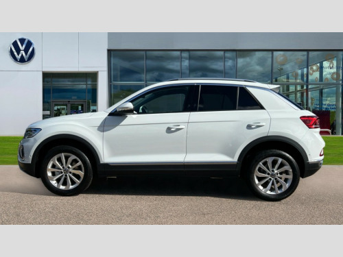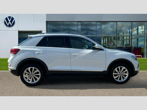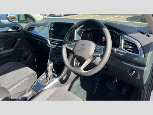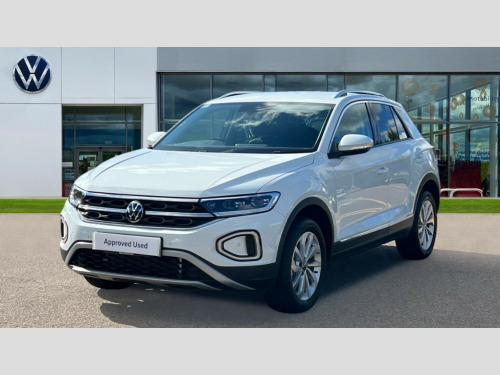 This 2025 Volkswagen T-Roc TSI Style is a Volkswagen manufacturer approved vehicle with only one owner from new. This stylish compact SUV features a 1.5 litre petrol engine, meeting Euro 6 emission standards. Inside, you'll find the Discover Media Navigation System complete with streaming and internet capabilities, alongside a front camera for parking assistance. Comfort is assured with the Air Care Climatronic Air Conditioning System, offering two zone temperature control and an active combination filter. The Driver Assistance Package includes adaptive cruise control, while automatic headlight control with LED separate daytime running lights and a coming home leaving home feature ensures visibility and convenience.