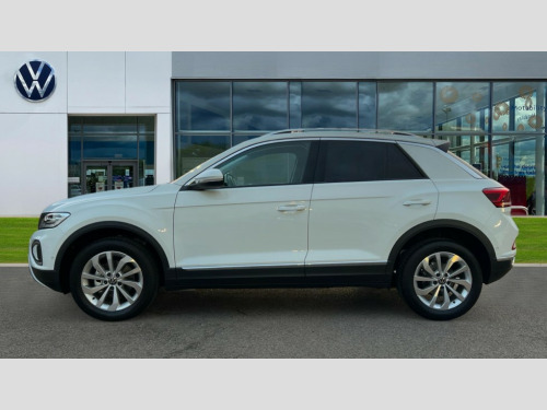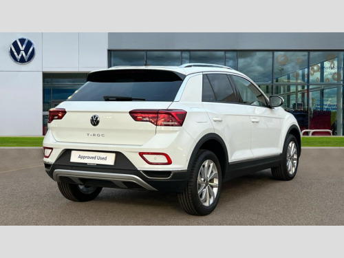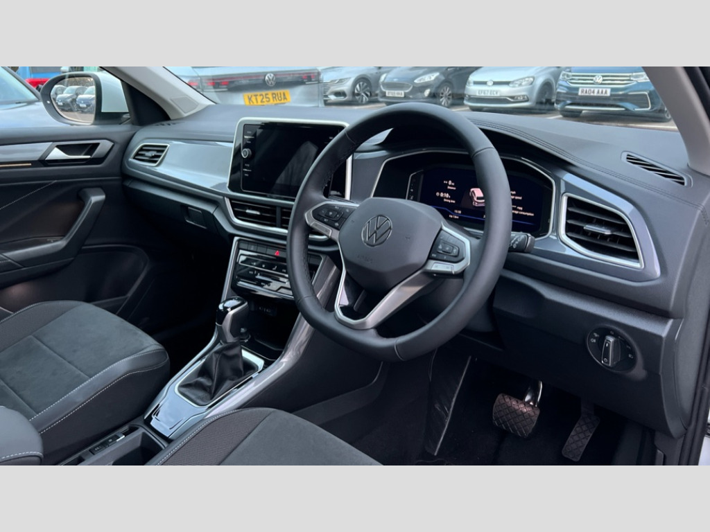 With an incredibly low mileage of just 7 miles, this 2025 Volkswagen T-Roc TSI Style presents as virtually new. This one owner vehicle is Volkswagen manufacturer approved and boasts a 1.5 litre Euro 6 petrol engine. Inside, you'll find the Discover Media Navigation System with streaming and internet capabilities, complemented by parking assistance featuring a front camera. The Driver Assistance Package includes adaptive cruise control, while the Air Care Climatronic air conditioning system with active combination filter and two zone temperature control ensures a comfortable cabin. For your convenience, there's a mobile phone interface with wireless inductive charging, and automatic headlight control with LED daytime running lights and a coming home leaving home feature.