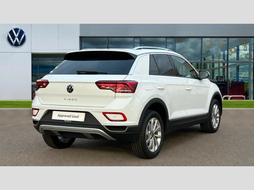 Give us a call and we guarantee to provide you with the best experience possible when buying your next vehicle. 10.25" Digital cockpit pro, Advanced driver attention and drowsiness monitor, Emergency call service, Lane keeping system Lane Assist, Mobile phone interface, Modified key software - reduce switch off time for key status change to Long no motion, Online services, Park assist including front and rear parking sensors, Power assisted speed sensitive steering, Service interval indicator, Tailgate/trunk lid release from outside, Think blue trainer driver tips and journey analysis, Warning sound and light for front seatbelts unfastened, Wireless app connect, Battery regeneration during braking, Start/stop function with battery regeneration, DAB Digital radio, Diversity antenna for FM reception, Front and rear 6 speakers, Music playback - MP3, WMA and AAC files, Premium USB cable in choice of either Apple or Android smartphone compatibility, SD card slot, Simultaneous pairing of 2 compatible mobile devices, Title and cover art display, We Connect and We Connect Plus functionality, Auto dimming interior rear view mirror, Automatic hazard lights activation under emergency braking, Automatic headlight control with LED separate daytime running lights with coming/leaving home function, Body colour sports bumpers with silver metallic underbody fascia, Body coloured exterior mirror housings and door handles, Dynamic headlight range control with self adjusting whilst driving, Electrically adjustable and heated door mirrors, Extended roof spoiler, Exterior mirrors aspherical on driver side, convex on front passenger side, External USB type C socket and charging sockets, Front windscreen wiper with intermittent wipe and 4 position delay, Heated rear window, LED 3rd brake light, LED rear combination lamps, LED rear number plate lights, Light mode for poor weather, rain, fog or snow, Power windows with comfort operation and circuit breaker, Privacy glass for rear side windows and rear window, Rain sensor, Rear exhaust tailpipe, Rear fog light on one side and reversing lights on both sides, Rear side wing doors, Rear wash/wipe with intermittent wipe setting, Remote electrically foldable door mirrors, puddle lights and reverse activated passenger's door mirror, 12V power socket in centre console, 3 rear head restraints, 3 seat bench in 2nd row, 4 load lashing points in luggage compartment, Air care climatronic air conditoning system with active combination filter and 2-zone temperature control, Chrome plated radiator grille inserts, air vent surrounds and light switch surrounds, Door and side trim panel with leatherette insert, Drawer under drivers seat, Front + rear carpet mats, Front centre armrest, Front comfort sports seats, Front cupholders x 2, Front footwell illumination, Front seat back storage pockets, Glove compartment door with light, Instrument lighting, white adjustable panel illumination, Interior ambient lighting and surround lighting, Interior light delay, Isofix child seat preparation, Leather gearshift handle, LED interior light with switch off delay/dimmer and 2 front/rear LED reading lights, Load-through provision with cup holder when folded down ('Unsplit rear seat bench, split folding backrest, with centre armrest), Luggage compartment lighting, Non-folding front passenger seat backrest, Single front passenger seat, Storage compartment in left and right luggage area, Storage compartment in rear doors, Storage compartments in driver and front passenger doors, Sunvisors with illuminated vanity mirrors, Variable boot floor, height adjustable and removable, Driver assistance pack without proactive passenger protection - T-Roc, 3 point height adj front seatbelts + pretensioners, 3 point seatbelts in outer rear with ECE label, ABS, Child locks on rear doors, City emergency braking and pedestrian monitoring, Driver and front passenger airbag with front passenger airbag deactivation, Driver and front passenger safety-optimised head restraints, Drivers seatbelt reminder, Electronic parking brake, Electronic Stability Control (ESC) inc EDL (Electronic Differential Lock) and ASR (Traction Control), Front and rear passengers curtain airbag system including front side airbags, Predictive pedestrian protection, Rear disc brakes, Two tone horn, Tyre pressure loss indicator, Volkswagen roadside assistance, Deep iron grey decorative inserts in dashboard, centre console and front door trim panels, Trims for alloy wheels