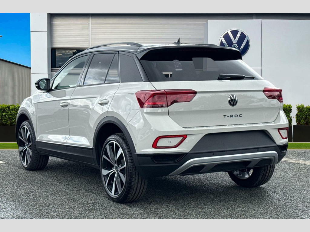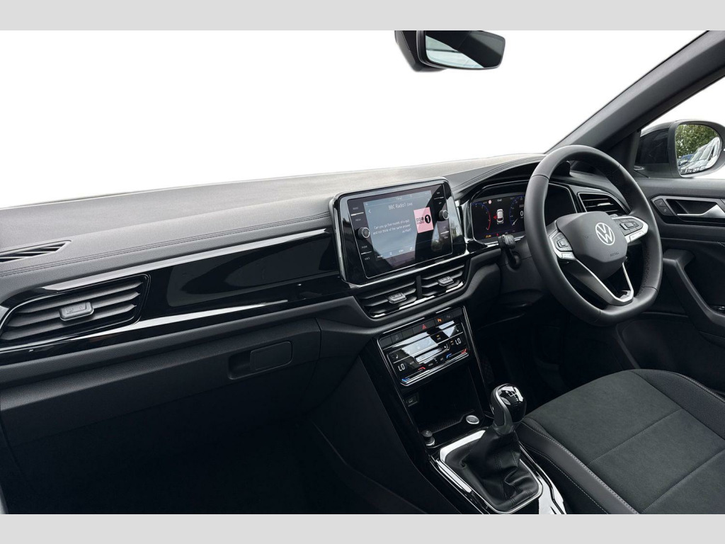Presenting the brand new Volkswagen T-Roc Style Design that is available to purchase at Wrexham Volkswagen. Powering this T-ROC is a 1.0 TSI 115PS engine with manual transmission. The exterior, which is finished in an Ascot Grey paintwork, has a range of features on offer. To the front of the vehicle you'll find the IQ Light LED matrix headlights that provide exceptional visibility, and to the side you'll find the rear tinted windows for passenger privacy and the stylish 19in Misano alloy wheels. For added convenience this T-ROC also features keyless access and starting, electric tailgate, roof rails and parking sensors that assist with maneuvering alongside the rear view camera.