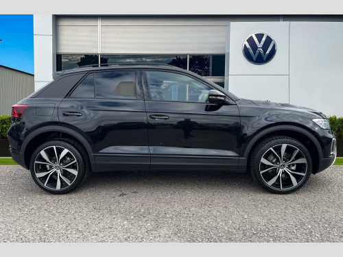Presenting the brand new Volkswagen T-Roc Style Design that is available to purchase at Wrexham Volkswagen. Powering this T-ROC is a 1.5 TSI 150PS engine with automatic transmission. The exterior is finished in a Grenadilla Black paintwork with the black styling pack, which is complimented by the 19in Misano alloy wheels to the side. The 'Style Design' trim comes with a range of features as standard such as the IQ.LIGHT LED Matrix headlights that provide outstanding visibility, rear tinted windows for passenger privacy, keyless access and electric tailgate for convenient accessibility, parking sensors that assist with maneuvering alongside the rear view camera, adaptive cruise control and more.