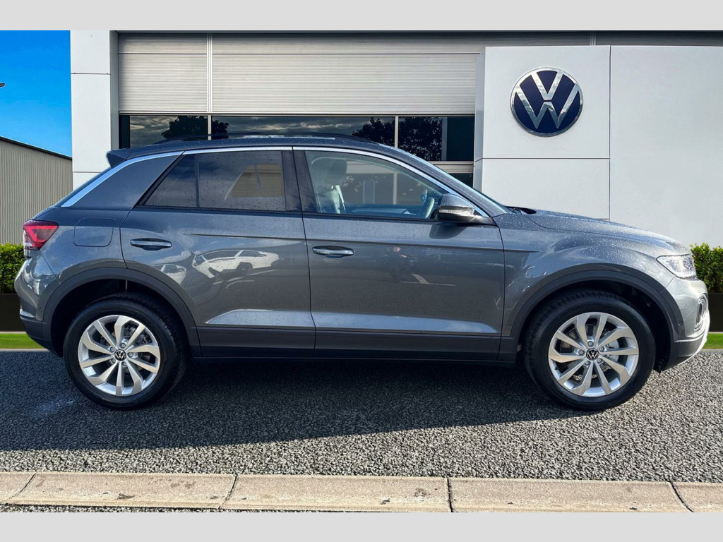 Presenting the brand new Volkswagen T-Roc Match that is available to purchase at Wrexham Volkswagen. This T-Roc is powered by a 1.5 TSI 150PS engine with manual transmission. The exterior is finished in an Indium Grey paintwork, which is complimented by the 17in Johannesburg alloy wheels to the side. The 'Match' trim comes with a range of features as standard such as the LED headlights that keep the roads well lit, the rear tinted windows for passenger privacy, a set of roof rails, keyless entry and starting for quick accessibility, and parking sensors that assist with maneuvering alongside the rear view camera.
