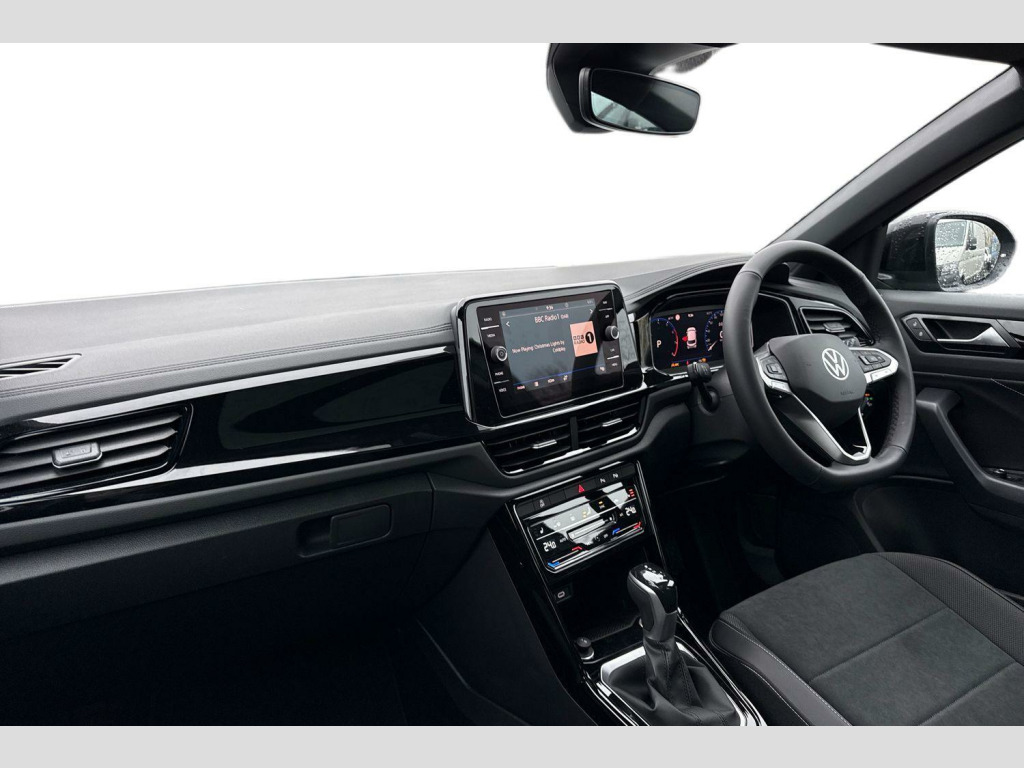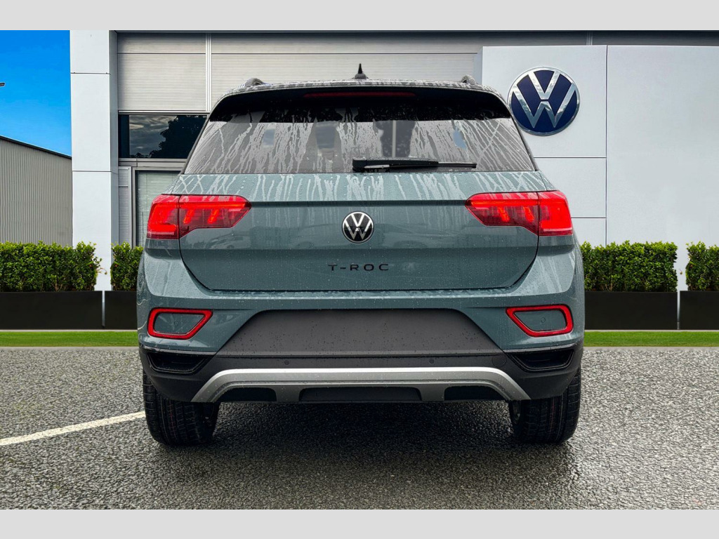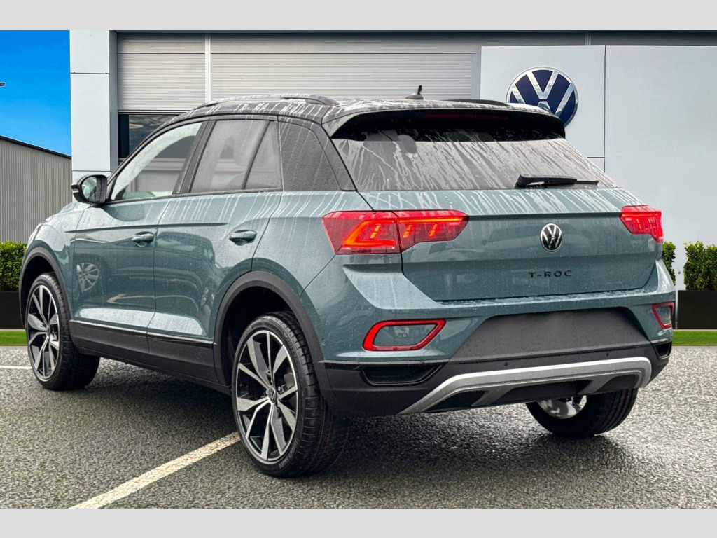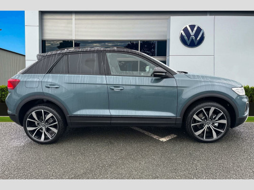 Presenting the brand new Volkswagen T-Roc Style Design that is available to purchase at Wrexham Volkswagen. Powering this T-ROC is a 1.5 TSI 150PS engine with automatic transmission. The exterior is finished in the 'Petrol Blue' paintwork with the black styling pack, which is complimented by the 19in Misano alloy wheels to the side. The 'Style Design' trim comes with a range of features as standard such as the IQ.LIGHT LED Matrix headlights that provide outstanding visibility, rear tinted windows for passenger privacy, keyless access and electric tailgate for convenient accessibility, parking sensors that assist with maneuvering alongside the rear view camera, adaptive cruise control and more.