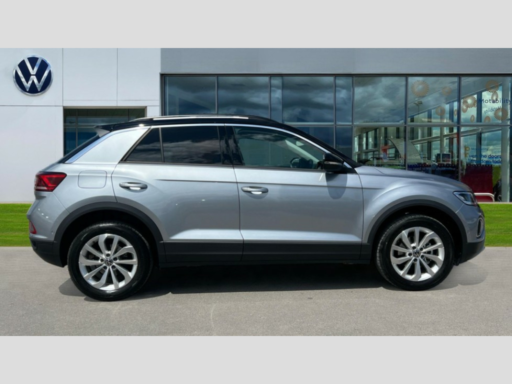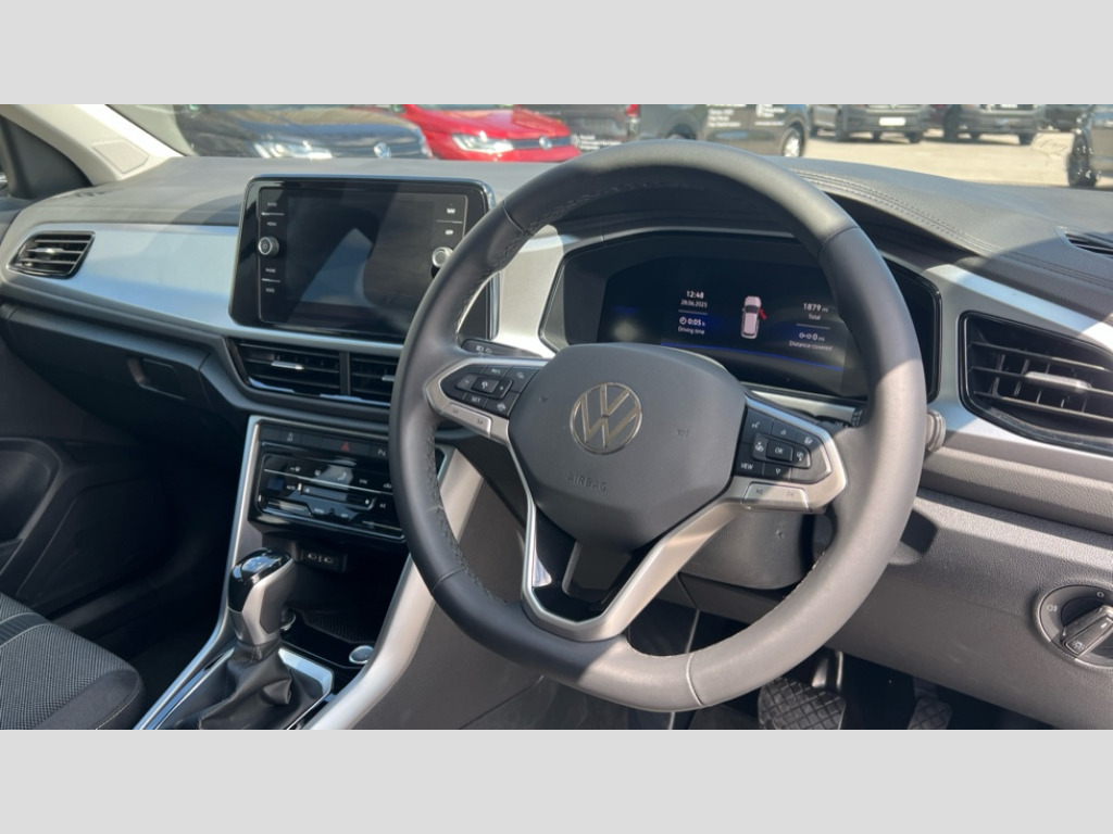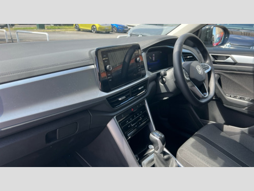Volkswagen T-Roc 1.5 TSI Match 5dr DSG Advanced driver attention and drowsiness monitor, Dynamic road sign display, Emergency call service, Lane keeping system Lane Assist, Mobile phone interface, Modified key software - reduce switch off time for key status change to Long no motion, Online services, Park assist including front and rear parking sensors, Power assisted speed sensitive steering, Rear view camera, Service interval indicator, Tailgate/trunk lid release from outside, Think blue trainer driver tips and journey analysis, Warning sound and light for front seatbelts unfastened, Wireless app connect, Battery regeneration during braking, Front shock absorption, Rear shock absorption chassis with increased ride height, Start/stop function with battery regeneration, DAB Digital radio, Diversity antenna for FM reception, Front and rear 6 speakers, Music playback - MP3, WMA and AAC files, Premium USB cable in choice of either Apple or Android smartphone compatibility, SD card slot, Simultaneous pairing of 2 compatible mobile devices, Title and cover art display, We Connect and We Connect Plus functionality, Auto dimming interior rear view mirror, Automatic hazard lights activation under emergency braking, Automatic headlight control with LED separate daytime running lights with coming/leaving home function, Black roof rails, Body coloured bumpers and radiator grille with chrome trim and front fog lamps with chrome bezel, Body coloured exterior mirror housings and door handles, Electrically adjustable and heated door mirrors, Extended roof spoiler, Exterior mirrors aspherical on driver side, convex on front passenger side, External USB type C socket and charging sockets, Front windscreen wiper with intermittent wipe and 4 position delay, Heated rear window, LED 3rd brake light, LED rear combination lamps, LED rear number plate lights, Power windows with comfort operation and circuit breaker, Privacy glass for rear side windows and rear window, Rain sensor, Rear exhaust tailpipe, Rear fog light on one side and reversing lights on both sides, Rear side wing doors, Rear wash/wipe with intermittent wipe setting, Remote electrically foldable door mirrors, puddle lights and reverse activated passenger's door mirror, 12V power socket in centre console, 3 rear head restraints, 3 seat bench in 2nd row, 4 load lashing points in luggage compartment, Air care climatronic air conditoning system with active combination filter and 2-zone temperature control, Black stitching for floor mats, Ceramique roof liner, Cloth upholstery, Door and side trim panel in cloth, Drawer under drivers seat, Driver/front passenger seat height adjustment, Front centre armrest, Front comfort sports seats, Front cupholders x 2, Front reading light, Front seat back storage pockets, Glove compartment door with light, Instrument lighting, white adjustable panel illumination, Interior ambient lighting and surround lighting, Interior light delay, Isofix child seat preparation, Leather gearshift handle, Load-through provision with cup holder when folded down ('Unsplit rear seat bench, split folding backrest, with centre armrest), Luggage compartment lighting, Lumbar support for driver's and front passengers seat, Non-folding front passenger seat backrest, Single front passenger seat, Storage compartment in left and right luggage area, Storage compartment in rear doors, Storage compartments in driver and front passenger doors, Sunvisors with illuminated vanity mirrors, Variable boot floor, height adjustable and removable, Driver assistance pack without proactive passenger protection - T-Roc Life/Match, 3 point height adj front seatbelts + pretensioners, 3 point seatbelts in outer rear with ECE label, ABS, Child locks on rear doors, City emergency braking and pedestrian monitoring, Driver and front passenger airbag with front passenger airbag deactivation, Driver and front passenger safety-optimised head restraints, Drivers seatbelt reminder, Electronic parking brake, Electronic Stability Control (ESC) inc EDL (Electronic Differential Lock) and ASR (Traction Control), Front and rear passengers curtain airbag system including front side airbags, Front disc brakes, Hill start assist, Predictive pedestrian protection, Rear disc brakes, Two tone horn, Tyre pressure loss indicator, Volkswagen roadside assistance, Alarm with interior protection, Keyless locking and starting system keyless access with safelock, Pewter matt decorative inserts for intrument panel, centre console and door panels at the front, Trims for alloy wheels