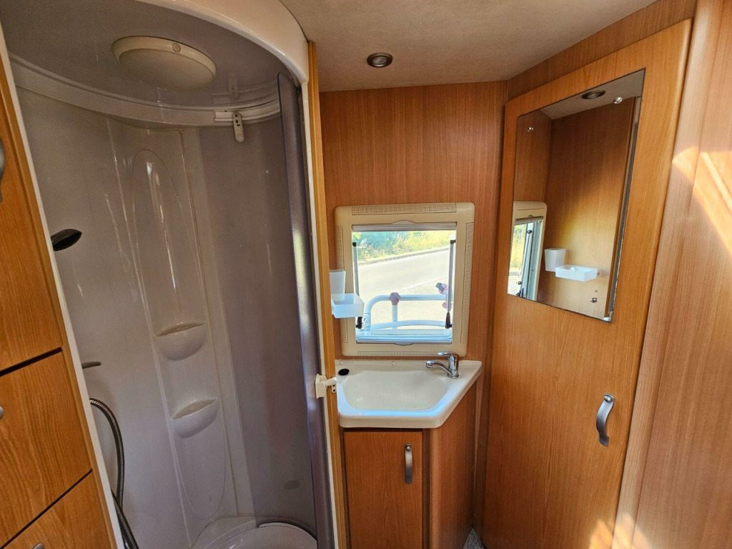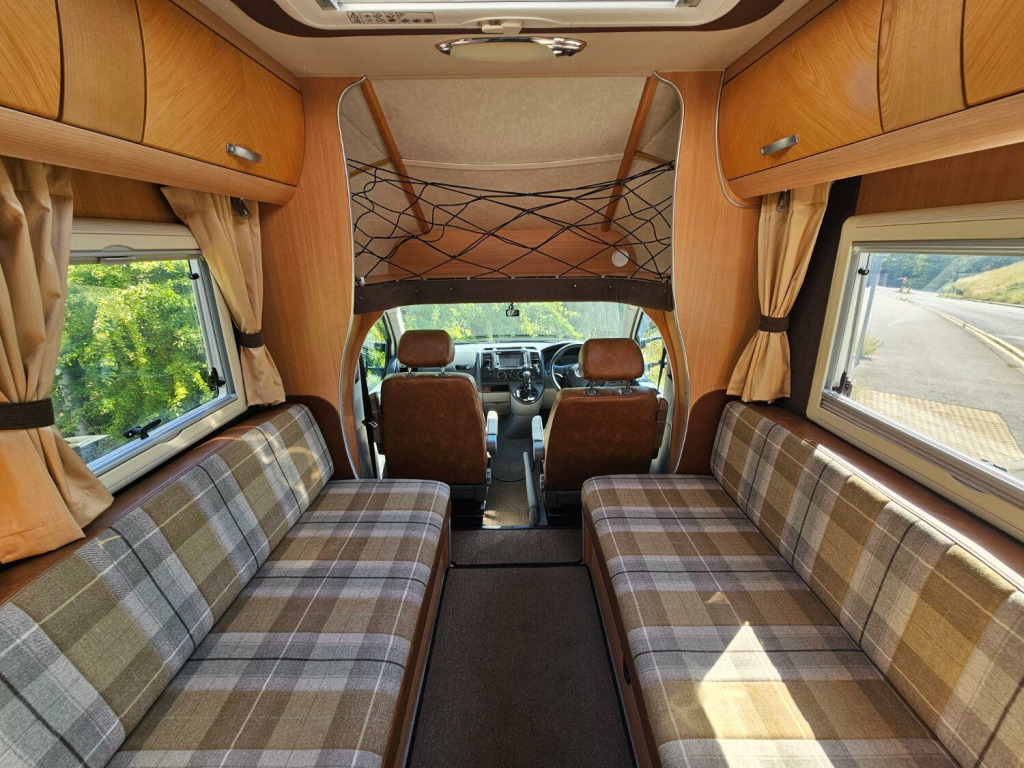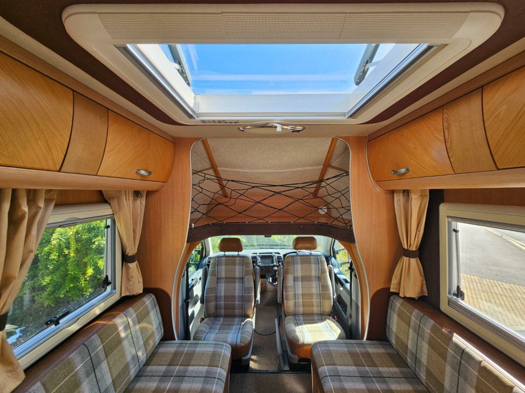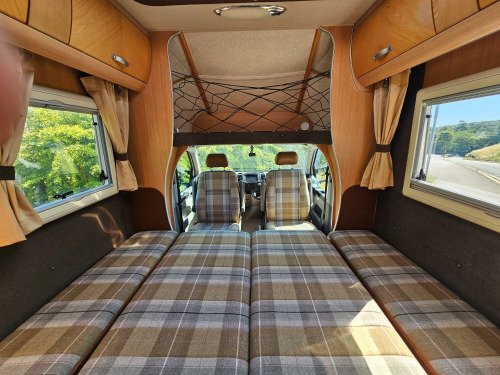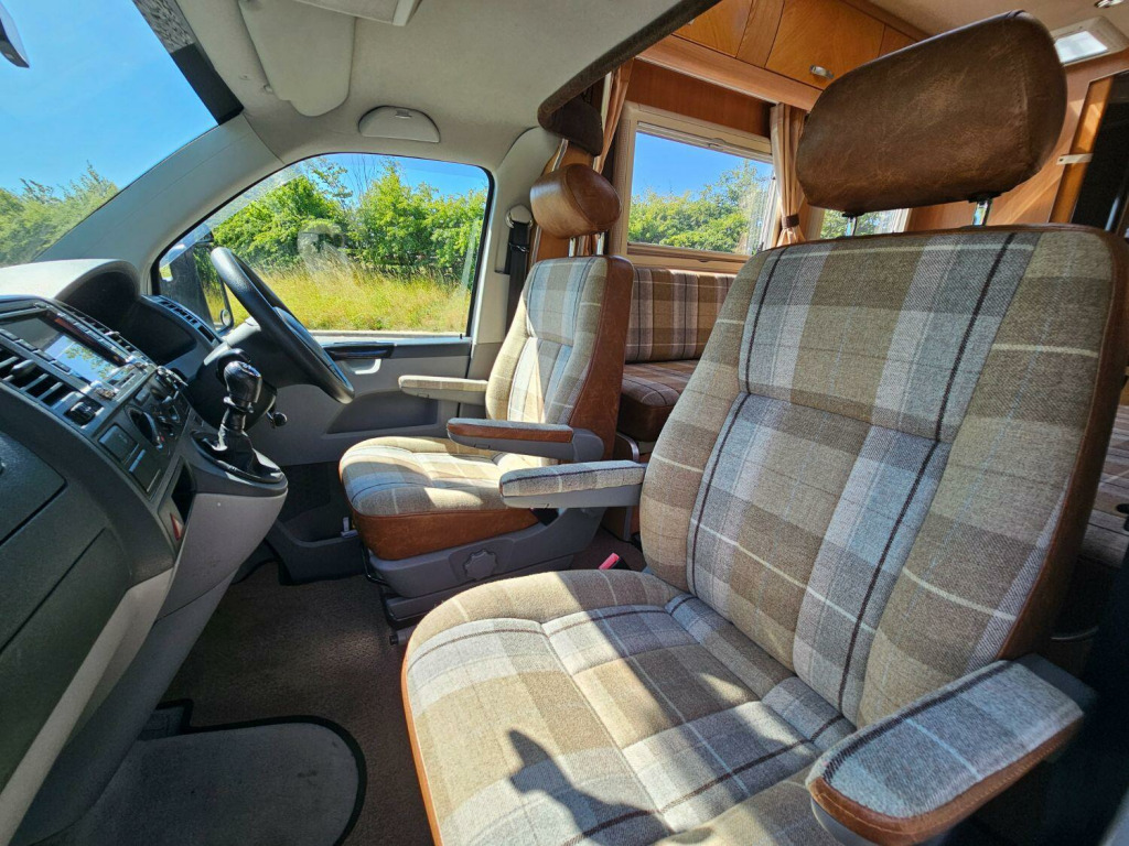 This is an attractive and lightweight 2 berth motorhome with a surprisingly roomy interior and luxurious washroom. Based on the VW Transporter with Alko chassis, its easy to drive, with a 5 speed gearbox and has an upgraded mulit media system with satnav. The accommodation is light and roomy, with a welcoming dinette area, lots of storage and a well equipped kitchen featuring pull out work surface, drawers and lockers, a dual fuel hob, gas oven and grill, dresser unit with integrated fridge. To the rear is the washroom offering fully lined shower cubicle, full height wardrobe, toilet and vanity sink. Domestic utilities include fresh and waste water tanks, Eberspacher diesel heating, dual fuel hot water by Truma. A 110W solar panel is roof mounted to charge the leisure battery in addition the mains and 12v engine charing system. Outside, you will find a roll out sun canopy awning, access to the passenger underbed store and a Fiamma two bike rack fitted. Recent solar panel installation. This unusual and well cared for VW coach built conversion comes with hookup cable, one gas bottle and levelling ramps, so is ready to go on new adventures. Habitation checked in February 2025, last serviced at 76,000 miles, advisory free MOT until April 2026.