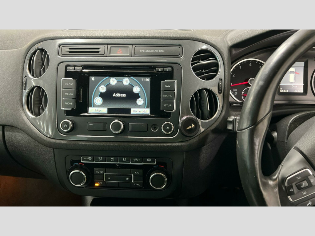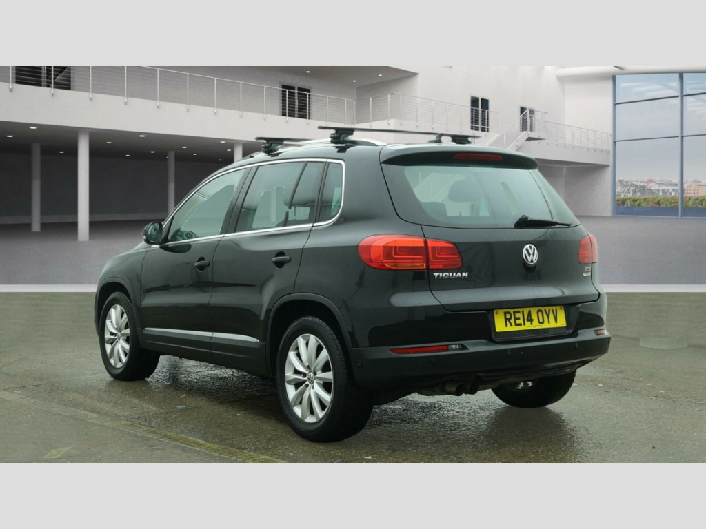 This 2014 Volkswagen Tiguan TSI Match presents a remarkable opportunity with its exceptionally low mileage of just 64,000 miles and a history of only two previous owners. This well maintained 1.4 litre petrol SUV, in its popular Match trim, offers a blend of practicality and comfort. It comes equipped with essential features designed to enhance your driving experience, including Bluetooth telephone preparation for seamless connectivity, and both front and rear parking sensors to assist with manoeuvring.The Tiguan TSI Match also boasts a 2 zone electronic climate control system, ensuring a comfortable cabin temperature for all occupants, and automatic dusk sensing headlights for added convenience and safety. Its performance is equally impressive, with an acceleration of 0-62mph achieved in a swift 8.9 seconds, demonstrating a responsive and engaging drive that sets it apart from other vehicles in its class. v socket - centre console, 12v socket - luggage compartment, 17in alloy wheels - new orleans, 2 zone electronic climate control with automatic air recirculation, abs - anti-lock braking system, asr - anti slip regulation, air vent surrounds - steel finish, airbags - curtain, airbags - driver, airbags - front passenger, airbags - front passenger with deactivation switch, airbags - front seat side impact, alarm with interior protection, anti-theft wheel bolts, armrest - front centre with storage compartment, automatic dimming rear view mirror, aux-in socket, bluetooth telephone preparation, body coloured bumpers, body coloured door handles, body-coloured door mirrors with integrated indicators, central locking - remote with 2 remote keys, chrome trimmed front air intake grille surround, colour screen - 5in, cup holders - front x2 rear x1, cup holders - rear x2, dash-mounted mp3 compatible cd player, dashboard and centre console - anthracite metallic, differential lock - electronic, door mirrors - electrically adjustable and heated, driver alert system, ebd - electronic brake pressure distribution, esp - electronic stability programme, electric windows - front and rear, electronic engine immobiliser, electronic parking brake with auto hold function, flat tyre indicator, folding front seat backrest, folding table on back of front seats, footwell illumination - front, front fog lights with cornering lights, front seat back storage pockets, front sports seats, glovebox - cooled and lockable, head restraints - front whiplash optimised, headlights - coming-leaving home function, headlights - dusk sensor - automatic driving lights, headlights - halogen clear - range adjustable, heated rear window, height and reach adjustable steering column, high level 3rd brake light, isofix child seat preparation for 2 rear seats, instrument lighting - white adjustable panel illumination, interior light delay, interior lighting delay, lights on warning buzzer, load-through provision, luggage compartment cover - removable, luggage compartment light, luggage compatrment - load lashing points x5, mdi - multi device interface with usb - ipod connection cables, multifunction computer, park assist including parking sensors front and rear, parking sensors - front, parking sensors - rear, power assisted steering - speed sensitive, rns 315 touch screen satellite navigation and dab radio system, radiator grille - black with chrome louvres, rain sensor, reading lights - front x2, rear wash wipe with intermittent wipe, rigid safety cell with front and rear crumple zones, roof rails - chrome plated, sd card reader, seatbelt reminder, seats - front lumbar support, seats - split folding rear backrests 60-40 - sliding and reclining, side window surrounds - chrome, side and rear protection pack - black with chrome-plated insert, silver metallic decorative inserts in door panels, spare wheel - space saver steel, speakers x8, split folding rear backrests 60-40, static cornering function, steering wheel - 3-spoke - leather trimmed, steering wheel - multifunction leather trimmed, storage compartment in drivers door for 1.0 litre bottle, storage compartment in passengers door for 1.5 litre bottle, storage compartment in roof console, storage tray in centre console, storage tray on dashboard, sun visors - vanity mirrors and illuminated, three rear head restraints, tinted glass - heat insulating rear 65 percent light absorbing from b pillar backwards, tyre pressure indicator, under seat drawers - front, unique bluemotion technology badging, warning triangle, windscreen wipers with intermittent wipe and 4 position delay