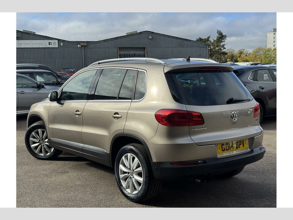This Volkswagen Tiguan TSI Match from 2014 presents an exceptional ownership proposition with its remarkably low mileage of just 35,000 miles, a testament to its single owner history. This Four Wheel Drive model, powered by a 1.4 litre petrol engine, boasts a full dealership service history, with its most recent service completed on 23rd April 2025 at 34,923 miles. The MOT remains valid until May 2026, offering peace of mind for the next owner. Notable features include front and rear parking sensors with parking assistance, 2 zone electronic climate control with automatic air recirculation, and automatic dusk sensing headlights.The Tiguan TSI Match offers a compelling driving experience, highlighted by its brisk 0-62mph acceleration in just 9.2 seconds, demonstrating its performance capabilities. The inclusion of Bluetooth telephone preparation further enhances convenience for everyday journeys. These aspects, combined with its careful single owner and comprehensive service record, position this Tiguan as a superior choice compared to other vehicles of its age and type.. 12V Socket - Centre Console, 12V Socket - Luggage Compartment, Aux-In Socket, Bluetooth Telephone Preparation, Colour Screen - 5in, Dash-mounted MP3 Compatible CD Player, MDI - Multi Device Interface with USB - iPod Connection Cables, RNS 315 Touch Screen Satellite Navigation and DAB Radio System, SD Card Reader, Speakers x8, Driver Alert System, Flat Tyre Indicator, Multifunction Computer, Park Assist including Parking Sensors Front and Rear, Parking Sensors - Front, Parking Sensors - Rear, Tyre Pressure Indicator, 17in Alloy Wheels - New Orleans, Anti-Theft Wheel Bolts, Body Coloured Bumpers, Body Coloured Door Handles, Body-Coloured Door Mirrors with Integrated Indicators, Chrome Trimmed Front Air Intake Grille Surround, Door Mirrors - Electrically Adjustable and Heated, Electric Windows - Front and Rear, Heated Rear Window, Radiator Grille - Black with Chrome Louvres, Roof Rails - Chrome Plated, Side and Rear Protection Pack - Black with Chrome-Plated Insert, Side Window Surrounds - Chrome, Spare Wheel - Space Saver Steel, Tinted Glass - Heat Insulating Rear 65 Percent Light Absorbing from B Pillar Backwards, Front Fog Lights with Cornering Lights, Headlights - Coming-Leaving Home Function, Headlights - Dusk Sensor - Automatic Driving Lights, Headlights - Halogen Clear - Range Adjustable, High Level 3rd Brake Light, Lights on Warning Buzzer, 2 Zone Electronic Climate Control with Automatic Air Recirculation, Air Vent Surrounds - Steel Finish, Armrest - Front Centre with Storage Compartment, Automatic Dimming Rear View Mirror, Cup Holders - Front x2 Rear x1, Cup Holders - Rear x2, Dashboard and Centre Console - Anthracite Metallic, Folding Front Seat Backrest, Folding Table on Back of Front Seats, Footwell Illumination - Front, Front Seat Back Storage Pockets, Front Sports Seats, Glovebox - Cooled and Lockable, Head Restraints - Front Whiplash Optimised, Height and Reach Adjustable Steering Column, Instrument Lighting - White Adjustable Panel Illumination, Interior Light Delay, Interior Lighting Delay, Load-Through Provision, Luggage Compartment Cover - Removable, Luggage Compartment Light, Luggage Compatrment - Load Lashing Points x5, Rain Sensor, Reading Lights - Front x2, Seats - Front Lumbar Support, Seats - Split Folding Rear Backrests 60-40 - Sliding and Reclining, Silver Metallic Decorative Inserts in Door Panels, Split Folding Rear Backrests 60-40, Steering Wheel - 3-Spoke - Leather Trimmed, Steering Wheel - Multifunction Leather Trimmed, Storage Compartment in Drivers Door for 1.0 litre bottle, Storage Compartment in Passengers Door for 1.5 Litre Bottle, Storage Compartment in Roof Console, Storage Tray in Centre Console, Storage Tray on Dashboard, Sun Visors - Vanity Mirrors and Illuminated, Three Rear Head Restraints, Under Seat Drawers - Front, Windscreen Wipers with Intermittent Wipe and 4 Position Delay, Power Assisted Steering - Speed Sensitive, ABS - Anti-Lock Braking System, Airbags - Curtain, Airbags - Driver, Airbags - Front Passenger, Airbags - Front Passenger with Deactivation Switch, Airbags - Front Seat Side Impact, Alarm with Interior Protection, ASR - Anti Slip Regulation, Central Locking - Remote with 2 Remote Keys, Differential Lock - Electronic, EBD - Electronic Brake Pressure Distribution, Electronic Engine Immobiliser, Electronic Parking Brake with Auto Hold Function, ESP - Electronic Stability Programme, ISOFIX Child Seat Preparation for 2 Rear Seats, Rear Wash Wipe with Intermittent Wipe, Rigid Safety Cell with Front and Rear Crumple Zones, Seatbelt Reminder, Warning Triangle. Full dealership history
