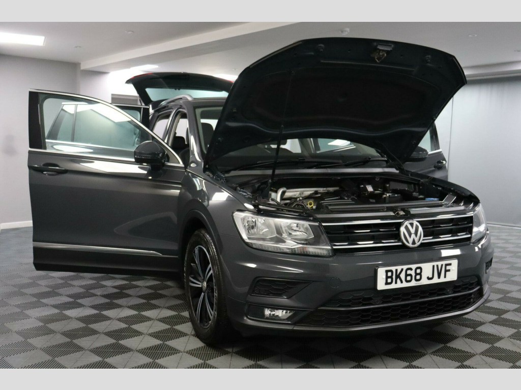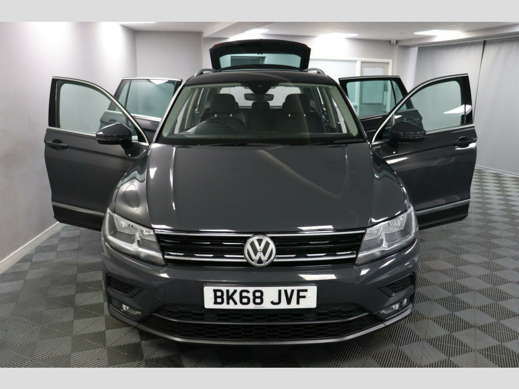 BK68JVF. The Volkswagen Tiguan is one of those SUVs that fits into family life without any fuss, and this SE Navigation model adds the features drivers genuinely use every day. A Lower Insurance Group, Better Fuel Economy and a Bigger Boot make this Tiguan a handy choice for families, school runs, weekend plans and anyone who needs space without jumping into something oversized.The cabin feels welcoming and easy to settle into. Discover Navigation runs through the touchscreen, giving quick access to maps, Apple CarPlay, Android Auto, Bluetooth and DAB Radio. Climate Control with 3-Zone settings keeps the whole car comfortable, and a 12V socket sits ready for chargers and gadgets.Out on the road, the Tiguan brings a calm, steady feel. Adaptive Cruise Control helps with longer stretches, and Parking Sensors front and rear take the guesswork out of tighter spaces. Lane Assist and Front Assist with Pedestrian Monitoring Detection offer reassurance in busy traffic, while the Electronic Parking Brake with Auto Hold keeps things neat at junctions and lights.A leather-trimmed multifunction steering wheel adds a smart touch, supported by Stop/Start Technology and a crisp 10.1-inch infotainment display.Reserve now and book a test drive.This car comes with a Good Service History (4 records), a new 12 month MOT with no advisories, a clear HPI report, two keys, and verified mileage for peace of mind.Finance is available, and we can provide a personalised video on request. Please note that some features (e.g., Navigation/CarPlay) may require an active subscription. Spec details can vary, so just ask if you’d like us to confirm anything.For more info or a finance quote, call ☎️ 0113 257 00 00.. Discover Navigation Touch-Screen Navigation-Radio System with Car-Net Guide and Inform, Adaptive Cruise Control and Speed Limiter, Apple CarPlay - Android Auto, Electronic Parking Brake with Auto Hold Function, Front Assist with Pedestrian Monitoring Detection and City Emergency Braking, Lane Assist, Bluetooth Connection, Automatic Dimming Rear View Mirror, Electrically Foldable Door Mirrors, Parking Sensors - Front and Rear, Isofix Child Seat Preparation - Easy-Fit - For 2 Outer Rear Seats, Steering Wheel - Multifunction - Leather Trimmed, Climate Control - 3Zone Electronic Air Conditioning with Automatic Air Recirculation, Stop/Start, DAB Radio, 12V Socket - Luggage Compartment, 18in Alloy Wheels - Patagonia, Driver Alert System, 10.1in Colour Touchscreen Infotainment System, Rhombus Cloth - Storm Grey.