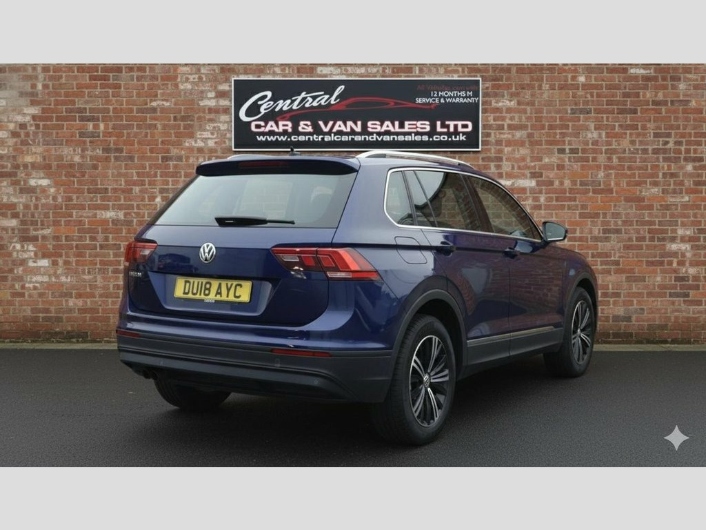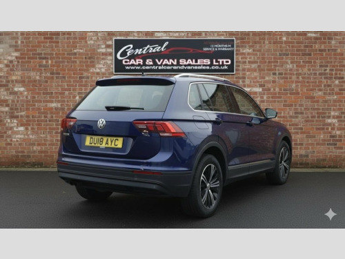 June 2018 Volkswagen Tiguan SE Navigator TSI Automatic 6-GTRONIC finished in gleaming metallic blue with two tone light/grey upholstery. The car has covered just 70,540 miles from new and the car has been regularly maintained with part service history and a recent brakes overhaul and the car drives outstanding, Being the 6g tronic the car is super smooth and comfortable to drive with the automatic/tiptronic transmission The car is ULEZ Compliant so no clean air zone charges The Tiguan is a super comfortable and reliable family SUV This example is economical returning 38MPG urban, 54mpg extra-urban and 46mpg combined Insurance group 15, Road tax is ?195 for 12 months. The car has a fantastic specification which includes power steering, multi function steering wheel, air conditioning, parking sensors, 18" alloy wheels, Shadow Line Paintwork, rear wiper, parcel shelf, spare wheel, rear trays on backs of seats, on board computer, satellite navigation, x2 keys, flat bottom steering wheel, DAB Digital radio, USB, AUX, Bluetooth, multiple airbags, ABS, traction control. What a gorgeous looking car this in this color! a great specification and a really well cared for and looked after car throughout don't miss out on this car! The car comes with a nationwide warranty which covers you across the U.K. we can arrange excellent rates of finance and you can apply online at www.centralcarandvansales.co.uk. We can take credit & debit card payments and we can take your car, van 12V Socket - Luggage Compartment, 12V Socket in Centre Console in Storage , 12V Socket on Rear of Front Centre Armre, 18 Degree Angle of Approach, 18in Alloy Wheels - Kingston, 18in Alloy Wheels - Patagonia, ABS - Anti-Lock Braking System, Active Bonnet, Adaptive Cruise Control, Airbags, Alarm with Interior Protection with Deac, Ambient Lighting, Atlantic Blue, Automatic Coming-Leaving Home Lighting F, Automatic Dimming Rear View Mirror, Automatic Hazard Light Activation Under , Black Grained Lower Door Protectors with, Body Coloured Bumpers and Door Handles, Body-Coloured Door Mirrors with Integrat, Car-Net App Connect, Car-Net Guide and Inform (3 Year Subscri, Caribbean Blue, Carpet Mats -