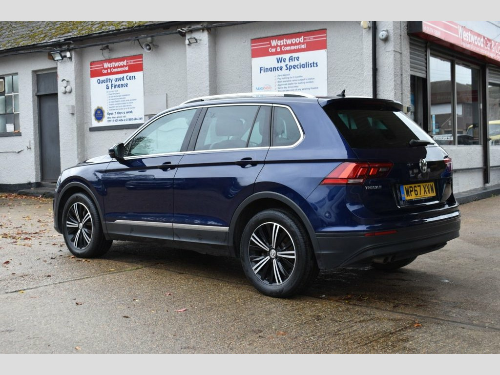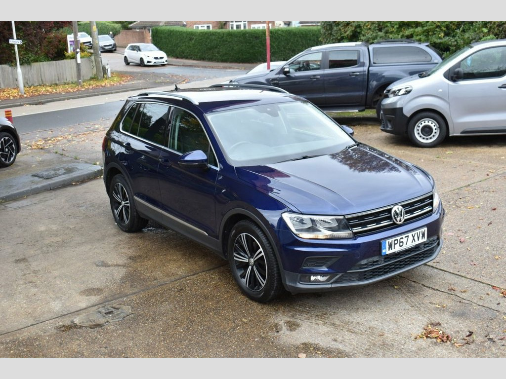 We are pleased to offer this 2018 Volkswagen Tiguan TSI SE Navigation. It boasts a full dealership service history and has had only one owner from new. This Euro 6 compliant model features a 1.4 litre petrol engine and comes equipped with a dusk sensor for automatic driving lights, adaptive cruise control for effortless journeys, and Car Net App Connect which seamlessly integrates your Android Auto or Apple CarPlay. Enjoy a comfortable cabin with 3 Zone electronic air conditioning, and navigate tight spaces with ease thanks to front and rear parking sensors. The car is in fantastic condition inside and out. This car offers an impressive efficiency with a highlight fuel economy of 49 mpg, alongside low CO2 emissions and a low insurance group, indicating it is more economical to run than many similar vehicles. Its performance is also noteworthy, achieving 0-60mph in just 9.2 seconds, demonstrating a good balance of power and efficiency. £0 deposit finance is available, all credit scores considered. Full Service History, Foglights, 6 Speed Gearbox, Child Seat ISOFIX Attachment - Rear, Rain Sensing Front Wipers, Automatic Headlights, Powerfold Door Mirrors, Electric Windows, Remote Central Locking, Bluetooth + Audio Streaming, USB Connection, DAB Radio, Privacy Glass, Adaptive Cruise Control, Front & Rear Parking Sensors, Alloy Wheels, Air Conditioning , Apple & Android Car Play, Satellite Navigation, Discover Navigation Pro Touch-Screen Nav, Atlantic Blue, Rhombus Cloth - Storm Grey, Lane Assist, Driver Alert System, Electronic Parking Brake with Auto Hold