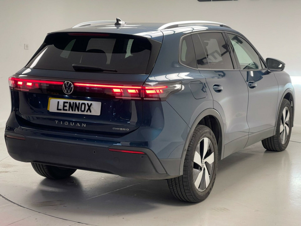This 2024 Volkswagen Tiguan TSI eHybrid Match presents a superb ownership proposition, having had only one owner from new. This impressive SUV is equipped with a 1.5 litre petrol plug in hybrid engine, meeting Euro 6 emission standards. The Match trim level comes with a Comfort Package, which includes a memory feature for the Park Assist system with SAFELOCK and Keyless Entry. Further enhancing the driving experience are Adaptive Chassis Control Pro with Driving Mode Selection and Adaptive Cruise Control. For convenient charging, a Mode 3 Type 2 to Type 2 16A charging cable is included.The Tiguan offers a generous boot space, making it ideal for families and those who need ample room for luggage or shopping. The inclusion of rear shock absorbers contributes to a smoother ride, while the Adaptive Chassis Control Pro allows you to tailor the car's handling to your preferences. These features, combined with the advanced hybrid technology and the vehicle's single owner provenance, highlight how this Volkswagen Tiguan is a well maintained and thoughtfully equipped choice. .9in infotainment display, 12v outlet in centre console rear and in luggage compartment, 12v socket in centre console, 18in alloy wheels - napoli - black diamond turned, 3-point seatbelts in front with seatbelt pretensioners, 3d led rear combination lamps - special signal pattern, abs - anti-lock braking system, acc - adaptive chassis control pro with driving mode selection, acc - adaptive cruise control, advanced driver attention and drowsiness monitor, air care climatronic 3-zone with rear air conditioning control panel, airbags, alarm with interior protection, ambient lighting with logo projection, automatic dimming rear view mirror, automatic headlight control with led separate daytime running lights and coming home-leaving home feature, bluetooth mobile phone interface, body coloured bumpers - air intake with chrome trim, body-coloured door mirrors and handles, carpet mats - front and rear, central locking system - keyless go, centre console with illuminated storage compartment with sliding cover and two drinks holders, charging cable - mode 3 - type 2-3 - 16a, comfort package inc memory feature for park assist with safelock, dab - digital radio reception, design package, digital cockpit pro, diversity antenna for fm reception, door and side trim panel in foam film and woven fabric, drivers and passengers safety optimised head restraints, dynamic road sign display, e-sim card for online connectivity, electric windows - front and rear, electronic parking brake with auto hold function, front assist - autonomous emergency braking with pedestrian and cyclist monitoring, front centre armrest, front comfort seats, front seats with height adjustment, headlight range control, heat insulating laminated glass windshield, high beam assist, isofix anchors for child seats on outer rear seats and front passenger seat - compatible with i-size, illuminated door handle recess, illuminated lightline between headlights and door handle recesses, infotainment package, interior ambient lighting - 10 colours, led headlamps with led separate signature running lights and dynamic cornering light, led rear combination lamps, lane change system with side assist - rear traffic alert and exit warning system, lane keeping system lane assist, light package, luggage compartment - variable load floor, multifunction front facing camera for distance control, oncoming vehicle braking when turning including swerve support, park assistance plus with parking sensors front and rear, power assisted steering - speed sensitive, power-adjustable lumbar support in front seats, rear bench seat - split folding, rear fog lamp on one side - reversing lamp on both sides, rear seat release - mechanical, rear shock absorbers, rear view camera system, remote electrically foldable door mirrors - puddle lights and reverse activated passengers door mirror, side and rear windows in heat-insulating glass, speakers x8, steering wheel - multifunction - leather wrapped - shift paddles, sun visors with illuminated vanity mirrors, tailgate lid unlocking from outside, three outer rear 3-point seat belts with ece label, three point seatbelts for centre rear seat, three rear head restraints, tool kit, two-tone horn, tyre mobility kit, tyre pressure loss indicator, warning sound and light for unfastened seat belts - front and rear, warning triangle, wireless app connect, e-call emergency call service