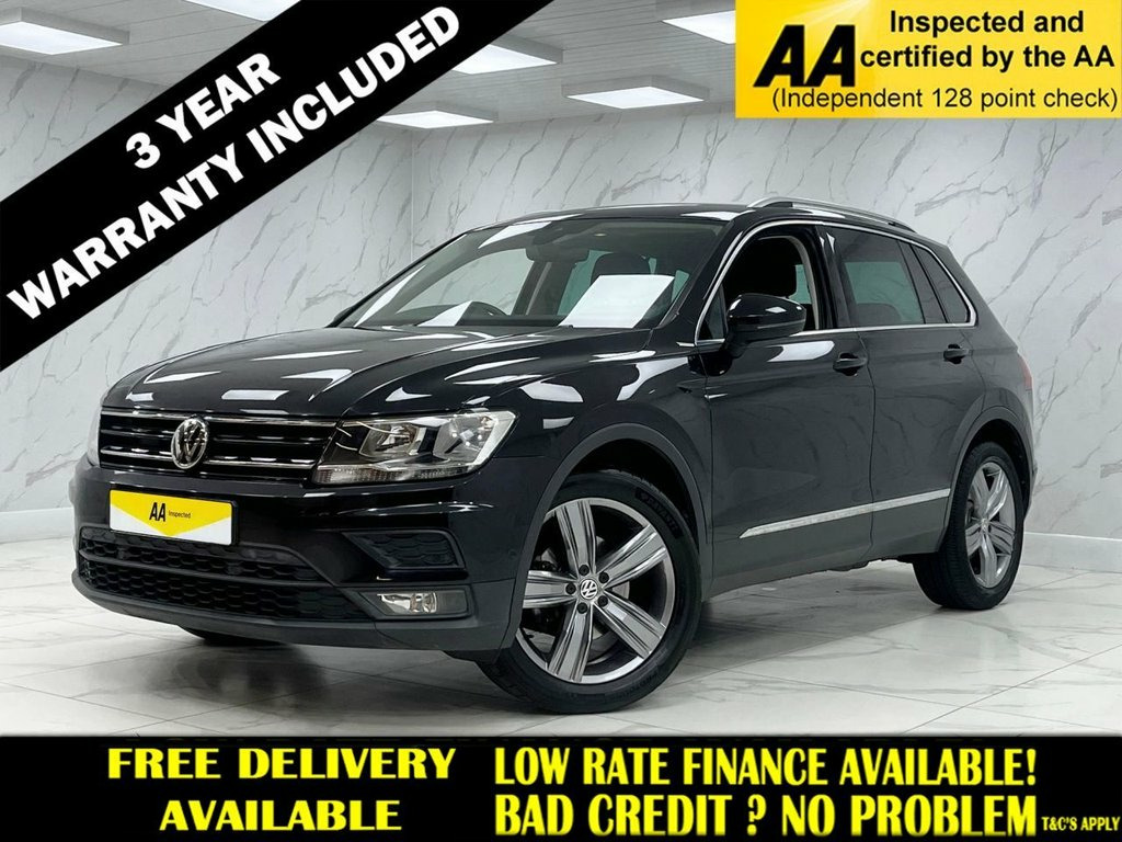 This 2019 Volkswagen Tiguan comes with a clear vehicle history check for added peace of mind. This Match trim model features a 1.5L petrol engine and meets Euro 6 emission standards. The vehicle comes with a 36-month warranty, and on purchase, you'll receive a 12-month MOT. Inside, you'll find a host of features designed for comfort and convenience, including 3Zone electronic air conditioning with automatic air recirculation, front and rear parking sensors with parking assistance, and Car-Net App Connect, which includes Android Auto and Apple CarPlay. The Composition Media System comes with Bluetooth connectivity, and adaptive cruise control is included for effortless motorway driving. The Tiguan stands out from similar vehicles with its low insurance group, potentially saving you money on your premiums. Furthermore, its low CO2 emissions mean it's kinder to the environment. We offer a free 3-year warranty with all our vehicles for peace of mind with your purchase, please ask your salesman for more information! Deep Black, Rhombus Cloth - Titan Black, 12V Socket - Luggage Compartment, 12V Socket in Centre Console in Storage , 12V Socket on Rear of Front Centre Armre, 18 Degree Angle of Approach, 19in Alloy Wheels - Victoria, ABS - Anti-Lock Braking System, Active Bonnet, Adaptive Cruise Control, Airbags, Alarm with Interior Protection with Deac, Automatic Coming-Leaving Home Lighting F, Automatic Dimming Rear View Mirror, Automatic Hazard Lights Activation Under, Black Grained Lower Door Protectors with, Body Coloured Bumpers and Door Handles, Body-Coloured Door Mirrors with Integrat, Car-Net App Connect, Car-Net Guide and Inform - 3 Year Subscr, Carpet Mats - Front and Rear, Chrome Side Window Sur