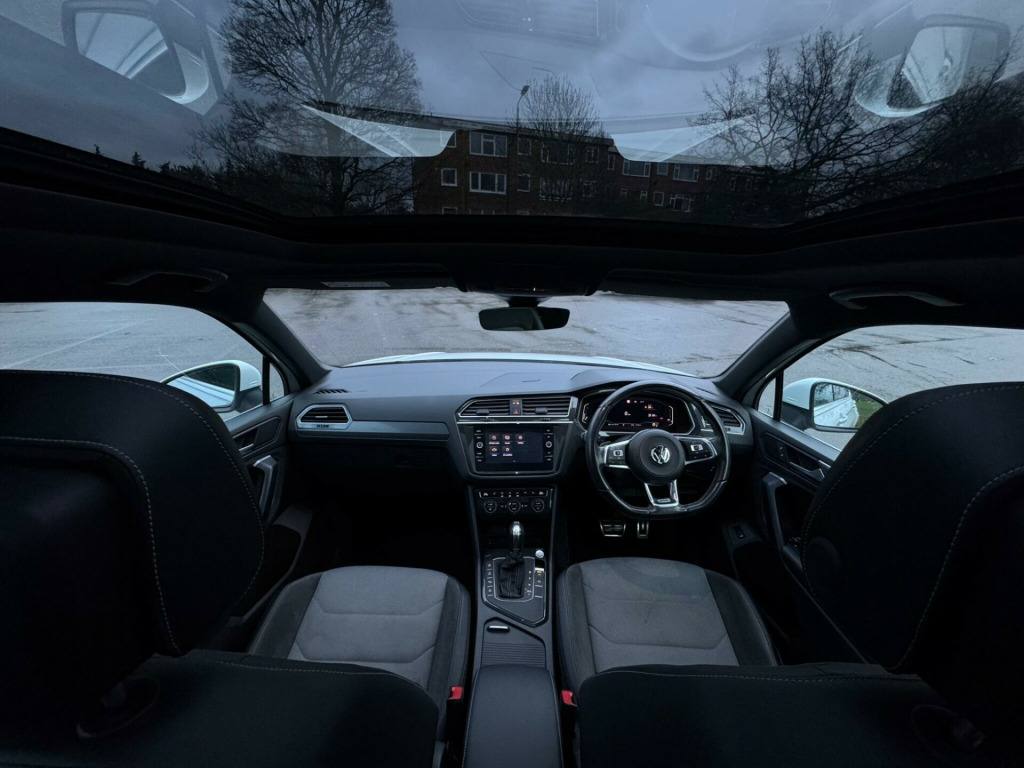 This 2019 Volkswagen Tiguan TSI EVO R-Line presents a superb ownership proposition, having been meticulously maintained by its single owner and boasting a clear vehicle history check. As a Euro 6 compliant model, it features a responsive 1.5 litre petrol engine, offering an efficient and enjoyable driving experience. The R-Line trim enhances its already stylish design, while a suite of advanced technology ensures convenience and safety. Notable features include Trailer Assist, which works in conjunction with Park Assist and a Rear View Camera, providing comprehensive parking assistance with front and rear sensors and a 360 degree camera via the Area View system. Keyless entry and start, coupled with a full electric tailgate, add to the effortless usability, while the Discover Navigation Pro system with integrated voice activation and gesture control, alongside Car-Net App-Connect, keeps you informed and entertained.The Tiguan R-Line stands out with its impressive acceleration, reaching 0-62mph in just 9.2 seconds, demonstrating its dynamic performance. This model also benefits from low CO2 emissions, making it an environmentally conscious choice, and a low insurance group, which can help reduce running costs. Furthermore, the generous boot space offers ample practicality for everyday needs and longer journeys. These highlights collectively indicate that this Volkswagen Tiguan offers a superior combination of performance, efficiency, technology, and practicality compared to many other vehicles in its class. ea view with park assist, discover navigation pro touch-screen navigation-dvd infotainment system with integrated voice activation - gesture control - car-net guide and inform plus and car-net app-connect, tyre pressure monitoring system, keyless entry-keyless start and full electric tailgate operation, trailer assist including park assist and rear view camera, park assist with rear view camera, headlight washers, 12v socket - luggage compartment, 12v socket in centre console in storage area, 12v socket on rear of front centre armrest, 18 degree angle of approach, 20in alloy wheels - suzuka, abs - anti-lock braking system, active bonnet, active info display, adaptive cruise control, airbags, alarm with interior protection with deactivation via infotainment system, aluminium-look decorative inserts in dash and door panels, ambient lighting pack, automatic coming-leaving home lighting function, automatic dimming rear view mirror, automatic hazard lights activation under emergency braking, black rooflining, body coloured bumpers and door handles, body-coloured door mirrors with integrated indicators, body-coloured roof spoiler - rear, car-net app connect, car-net guide and inform (3 year subscription from new), car-net security and service including ecall, carpet mats - front and rear, chrome side window surrounds, chrome trim on radiator grille - upper and lower, climate control - 3zone electronic air conditioning with automatic air recirculation, composition media system, cup holders - front x2, discover navigation touch-screen navigation-infotainment system with car-net guide and inform, driver alert system - fatigue detection, driver profile selection - choice of three settings - eco - normal and sport modes, drivers and passengers safety optimised head restraints, dusk sensor - automatic driving lights, dynamic light assist, esc - electronic stability control, electric windows - front and rear, electrically foldable door mirrors, electronic engine immobiliser, electronic parking brake with auto hold function, folding table on back of front seats, front air intake with chrome strip, front assist - radar sensor controlled distance monitoring system - city emergency braking system and predictive pedestrian protection, front centre armrest with storage compartment - longitudinal and height adjustable and two rear air vents, front fog lights with static cornering function, front footwell illumination, front passengers seat folding backrest, front seat back storage pockets, front seats with r-line logo on rear seat backrest, glovebox - cooled, heated front seats, heated rear window, heated windscreen washer jets, height and reach adjustable steering wheel, height-adjustable front three-point seat belts with tensioners, high level 3rd brake light, instrument lighting - white adjustable panel illumination, interior light delay, isofix child seat preparation - easy-fit - for 2 outer rear seats, led headlights with dynamic light assist, led rear lights, led rear number plate lights, lane assist, load lashing points x4 in luggage compartment, load through provision with two cup holders when folded down, luggage compartment cover - removable, luggage compartment light, multifunction computer, panoramic sunroof, parking sensors - front and rear, pedals - stainless steel, piano black decorative inserts in centre console, piano black front air intake and rear diffuser, power assisted steering - speed sensitive, pre-crash preventive occupant protection, premium usb cable, progressive steering, r-line styling pack, rain sensor, reading lights - front and rear x2 incorporating led technology, rear tinted glass - b pillar backwards - approx 65 percent tinted, rear wash wipe with intermittent wipe, remote central locking with 2 remote folding keys, remote tailgate unlocking via key fob, rigid safety cell with front and rear crumple zones, roof rails - silver anodised, seats - front lumbar support, seats - height adjustment - front, silver front underbody protection and rear diffuser, sliding rear bench seat, spare wheel - space saver steel, split folding rear seat backrests 40-20-40, steering wheel - multifunction - leather trimmed with paddle shift, storage compartment in drivers and front passenger door for 1.5 litre bottle, storage compartment in rear doors, storage compartment in roof console for sunglasses, storage compartment with soft touch opening cover - dashboard, storage compartments in lugga