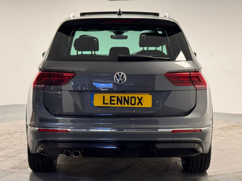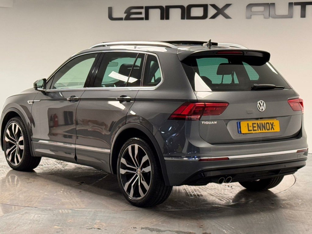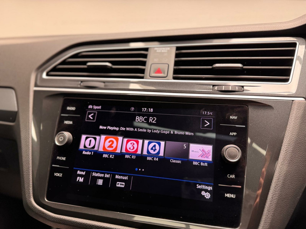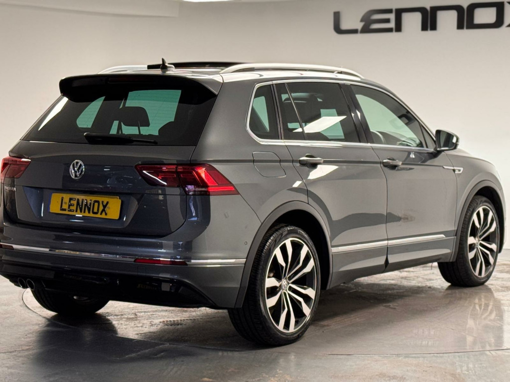 With only one previous owner and very low mileage of just 34038 miles for a 2019 registration year, this Volkswagen Tiguan R-Line Tech is a superb choice. The vehicle is a TSI EVO variant, with a 1.5L petrol engine and R-Line Tech trim. The car comes equipped with an array of features, including adaptive cruise control, heated front seats, front and rear parking sensors, automatic driving lights thanks to the dusk sensor, and LED headlights with dynamic light assist. This Euro 6 emission class vehicle combines practicality with modern technology for a smooth driving experience.This Tiguan stands out with its large boot space, offering ample room for luggage, shopping, or family essentials. Its low CO2 emissions mean it's kinder to the environment compared to similar vehicles. Furthermore, acceleration from 0-62mph in just 9.2 seconds ensures a responsive and engaging drive. degree angle of approach, 19in alloy wheels - victoria, 4motion active control, active bonnet, active info display, adaptive cruise control, alarm with interior protection with deactivation via infotainment system, ambient lighting pack, automatic dimming rear view mirror, black grained lower door protectors with chrome insert, body coloured bumpers and door handles, car-net app connect, car-net guide and inform - 3 year subscription, car-net security and service including ecall, chrome side window surrounds, climate control - 3zone electronic air conditioning with automatic air recirculation, coasting function, composition media system, dark grey decorative inserts in dash and door panels, discover navigation touch-screen navigation-infotainment system with car-net guide and inform, driver alert system - fatigue detection, driver profile selection - choice of three settings - eco - normal and sport modes, drivers and passengers safety optimised head restraints, dusk sensor - automatic driving lights, dynamic light assist, esc - electronic stability control, electrically foldable door mirrors, electronic parking brake with auto hold function, folding table on back of front seats, front air intake with chrome strip, front assist - radar sensor controlled distance monitoring system - city emergency braking system and predictive pedestrian protection, front fog lights with static cornering function, front footwell illumination, front passengers seat folding backrest, heated front seats, height-adjustable front three-point seat belts with tensioners, instrument lighting - white adjustable panel illumination, interior light delay, led headlights with dynamic light assist, led rear number plate lights, lane assist, load lashing points x4 in luggage compartment, load through provision with two cup holders when folded down, luggage compartment light, panoramic sunroof, parking sensors - front and rear, piano black decorative inserts in centre console, pre-crash preventive occupant protection, premium usb cable, reading lights - front and rear x2 incorporating led technology, rear tinted glass - b pillar backwards - approx 65 percent tinted, rear wash wipe with intermittent wipe, remote tailgate unlocking via key fob, rigid safety cell with front and rear crumple zones, roof rails - silver anodised, silver front underbody protection and rear diffuser, sliding rear bench seat, split folding rear seat backrests 40-20-40, three rear 3-point seat belts, three rear head restraints, two-tone horn, tyre pressure loss indicator, vanity mirrors - illuminated, warning sound and light for unfastened seat belts - front, warning triangle, windscreen wipers with intermittent wipe and 4 position delay, winter pack, xds electronic differential lock for improved traction and handling