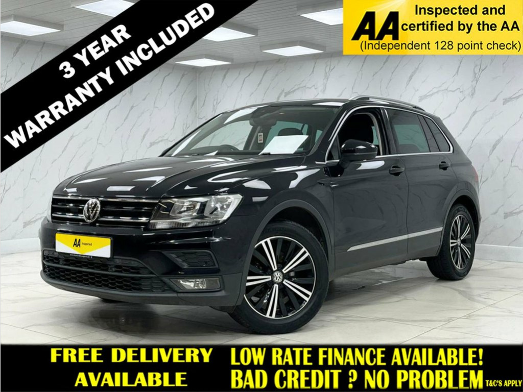This 2018 Volkswagen Tiguan TSI EVO SE presents an exceptional ownership proposition with its remarkably low mileage of just 39,760 miles and a single owner from new. This Euro 6 compliant 1.5 litre petrol model boasts a clear vehicle history check and an MOT valid until February 2026, offering peace of mind. Inside, you'll find a wealth of technology including the Composition Media System with Bluetooth connectivity, Car-Net App Connect for seamless smartphone integration with Android Auto and Apple CarPlay, and a 3Zone Electronic Air Conditioning system for personalised comfort. The Tiguan also features a Dusk Sensor for automatic driving lights and convenient front and rear parking sensors to aid manoeuvrability. The Tiguan TSI EVO SE offers a compelling blend of performance and practicality, indicated by its impressive acceleration from 0-60mph in just 9.3 seconds, which is better than many comparable vehicles. Its low insurance group rating further enhances its appeal as an economical choice. Furthermore, the generous boot space provides ample room for luggage, shopping, or equipment, making it a versatile option for families and individuals alike. Deep Black, Rhombus Cloth - Titan Black, 12V Socket - Luggage Compartment, 12V Socket in Centre Console in Storage , 12V Socket on Rear of Front Centre Armre, 18 Degree Angle of Approach, 18in Alloy Wheels - Patagonia, ABS - Anti-Lock Braking System, Active Bonnet, Adaptive Cruise Control, Airbags, Alarm with Interior Protection with Deac, Automatic Coming-Leaving Home Lighting F, Automatic Dimming Rear View Mirror, Automatic Hazard Lights Activation Under, Black Grained Lower Door Protectors with, Body Coloured Bumpers and Door Handles, Body-Coloured Door Mirrors with Integrat, Car-Net App Connect, Carpet Mats - Front and Rear, Chrome Side Window Surrounds, Chrome Trim on Radiator Grille -