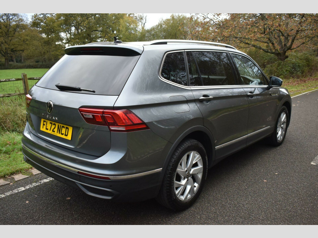 This 2022 Volkswagen Tiguan Allspace TSI Life offers the peace of mind that comes with having had only one owner from new. This Euro 6 compliant, 1.5 litre petrol model is presented in the Life trim and boasts seven seats, making it an exceptionally practical choice. It features Adaptive Cruise Control with Front Assist for intelligent distance monitoring, and Park Distance Control in both the front and rear to aid manoeuvring. The convenience of automatic headlights with LED daytime running lights and a coming home leaving home function is also included, alongside LED headlights for enhanced visibility. For modern connectivity, it offers a mobile phone interface with inductive charging for wireless phone charging.The Tiguan Allspace is designed for those who need versatility and space, highlighted by its generous boot capacity. Its performance is equally impressive, achieving 0-62mph in a swift 9.6 seconds, demonstrating a responsive driving experience. These features, combined with its single owner provenance and comprehensive equipment list, position this Tiguan Allspace as a superior option compared to similar vehicles on the market.Finished in Grey with cloth interior, one private owner from new, service history, privacy glass, chrome roof rails, 18'' alloy wheels, 7 seats, automatic, front and rear parkimng sensors, paddle shifts, cruise control, air con, eco start/stop function, eco start/stop function, Apple Car Play, Bluetooth, electric tailgate, HPI clear, finance available with this vehicle... for further information please contact us on 01483 236417. v outlet in centre console rear and in luggage compartment, 12v socket - centre console, 18in alloy wheels - frankfurt, 2 usb-c ports in the front and 1 usb-c charging socket on the centre console in the rear, 3 head restraints in rear, 3 rear three-point seat belts, 3-point seat belt for centre rear seat, 3-point seat belts in front with height adjustment and seat belt pretensioners, 3rd row of seats, 8 speakers, abs - anti-lock braking system, adaptive cruise control - including front assist - radar sensor controlled distance monitoring system, air care - climatronic 3 zone automatic climate control with enhanced air filter and controls in the rear, airstop tyres, alarm - anti-theft system with interior monitoring backup horn and tow protection, anti-theft wheel bolts, app-connect, automatic dimming rear view mirror, automatic headlight control with led separate daytime running lights and coming home-leaving home feature, battery regeneration - recuperation - energy recovery during braking, body coloured bumpers, carpet mats - front and rear, chrome mouldings on the side windows, comfort seats - front, curtain airbag system for front and rear passengers including side airbags in the front, dab+ - digital radio reception, decorative inserts - checker flag titanium, digital cockpit pro, discover navigation including streaming and internet, diversity antenna for fm reception, drawers under both front seats, driver alert system, driver and front passenger airbag with front passenger airbag deactivation, driver and front passenger seat height adjustment, drivers and front passengers safety optimised head restraints, drivers and front passengers sun visors with illuminated vanity mirrors, dynamic road sign display, esc - electronic stability control including edl - electronic differential lock and asr - traction control, electric boot lid, electric windows - front, electronic parking brake, emergency call service - e-call, exterior badge deletion, exterior mirror housings painted in silver, exterior mirrors - power-adjustable - separately heated, foldable front passenger seat backrest, front assist, front centre armrest, front footwell illumination, headlight range control, heat insulating glass windscreen, isofix child seat preparation for two rear child seats - compactable i-size, led headlights, led interior lighting, lane assist - lane keeping system, leather gearshifter, lumbar support for driver and front passenger seats, mobile phone interface - comfort - inductive charging feature, multifunction front facing camera, multifunction steering wheel, park distance control in front and rear, pedestrian monitoring, power assisted steering - speed sensitive, privacy glass, radio, rear fog light, remote central locking with 2 remote folding keys, silver roof rails, speedo and rev counter - electronic odometer - trip - service interval display and exterior temp gauge, standard rear combination lights, tool kit, two-tone horn, tyre mobility kit, tyre pressure loss indicator, warning buzzer for seatbelts if unfastened, warning triangle