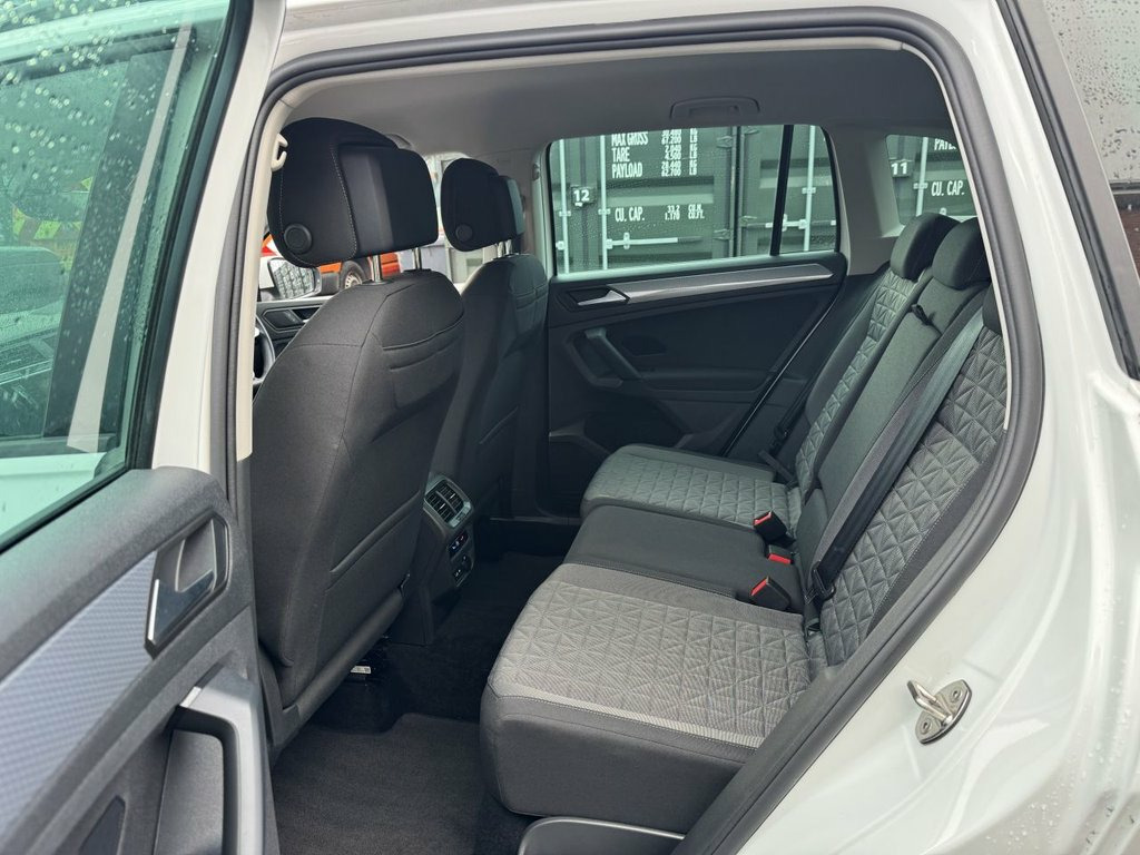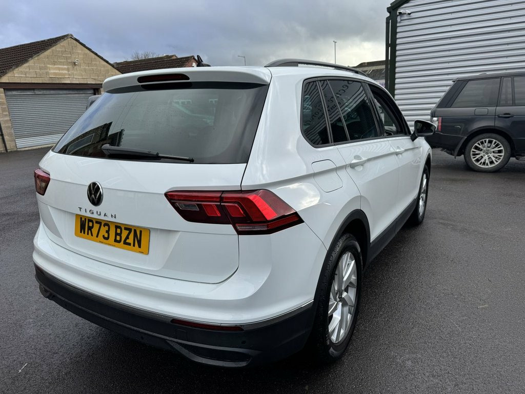 TEL 01225 705200, just arrived this lovely example of the VW Tiguan 1.5Lt TSI Life Petrol-manual 5-Dr SUV model finished in this nice White with two tone grey design cloth seats and Silver alloy wheels one owner from new and covered 37,900 miles, Onscreen Tech +++ just arrived so for more details please ring us on ( 01225 705200) thanks, this car is located at VICTORIA MOTORS CAR SITE OLD BROUGHTON ROAD MELKSHAM WILTSHIRE SN128BX TEL 01225 705200. 12V Socket in Centre Console in Storage , 12V Socket in Luggage Compartment, 12V Socket on Rear of Front Centre Armre, 18in Alloy Wheels - Frankfurt, 2 LED Reading Lights in Front and 2 in R, 2 USB-C Ports in the Front and 1 USB-C C, 3 Rear Three-Point Seat Belts with Tensi, Adaptive Cruise Control ACC including Sp, Air Conditioning - 3 Zone Electronic Cli, Airbags, Anti-Theft Alarm System with Interior Mo, Anti-Theft Wheel Bolts, App-Connect, Automatic Dimming Rear View Mirror, Automatic Headlight Control with LED Sep, Autonomous Emergency Braking Front Assis, Backrest Release for Left Front Seat, Bluetooth Mobile Phone Interface, Body Coloured Bumpers and Door Handles, Body Coloured Door M