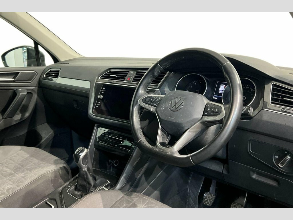 This 2021 Volkswagen Tiguan TSI Life boasts a clear vehicle history and has had only one owner, offering you peace of mind. Powered by a 1.5 litre petrol engine, this Euro 6 compliant model is registered in 2021 and features a MOT valid until May 2026. Its Life trim level includes a wealth of notable features designed for comfort and convenience, such as Adaptive Cruise Control, App Connect with Android Auto and Apple CarPlay, automatic dusk sensing headlights, front and rear parking sensors, and the Discover Media Navigation Infotainment System with Bluetooth connectivity. The Tiguan TSI Life offers a compelling package that sets it apart from other vehicles in its class. Its impressive acceleration, reaching 0-60mph in just 9.4 seconds, demonstrates its responsive performance. Furthermore, the generous boot space ensures practicality for all your needs, while its low insurance group rating makes it an economical choice for everyday driving. 1 x USB-C Connection, 12V Socket - Luggage Compartment, 12V Socket in Centre Console in Storage , 12V Socket on Rear of Front Centre Armre, 18in Alloy Wheels - Frankfurt, Adaptive Cruise Control, Airbags, Alarm with Interior Protection with Deac, App-Connect, Automatic Coming-Leaving Home Lighting F, Automatic Dimming Rear View Mirror, Automatic Hazard Lights Activation Under, Black Grained Lower Door Protectors with, Body Coloured Bumpers and Door Handles, Body-Coloured Door Mirrors with Integrat, Carpet Mats - Front and Rear, Climate Control - 3Zone Electronic Air C, Cup Holders - Front x2, Discover Media Navigation Infotainment S, Door Mirrors - Electrically Adjustable a, Driver Alert Sys
