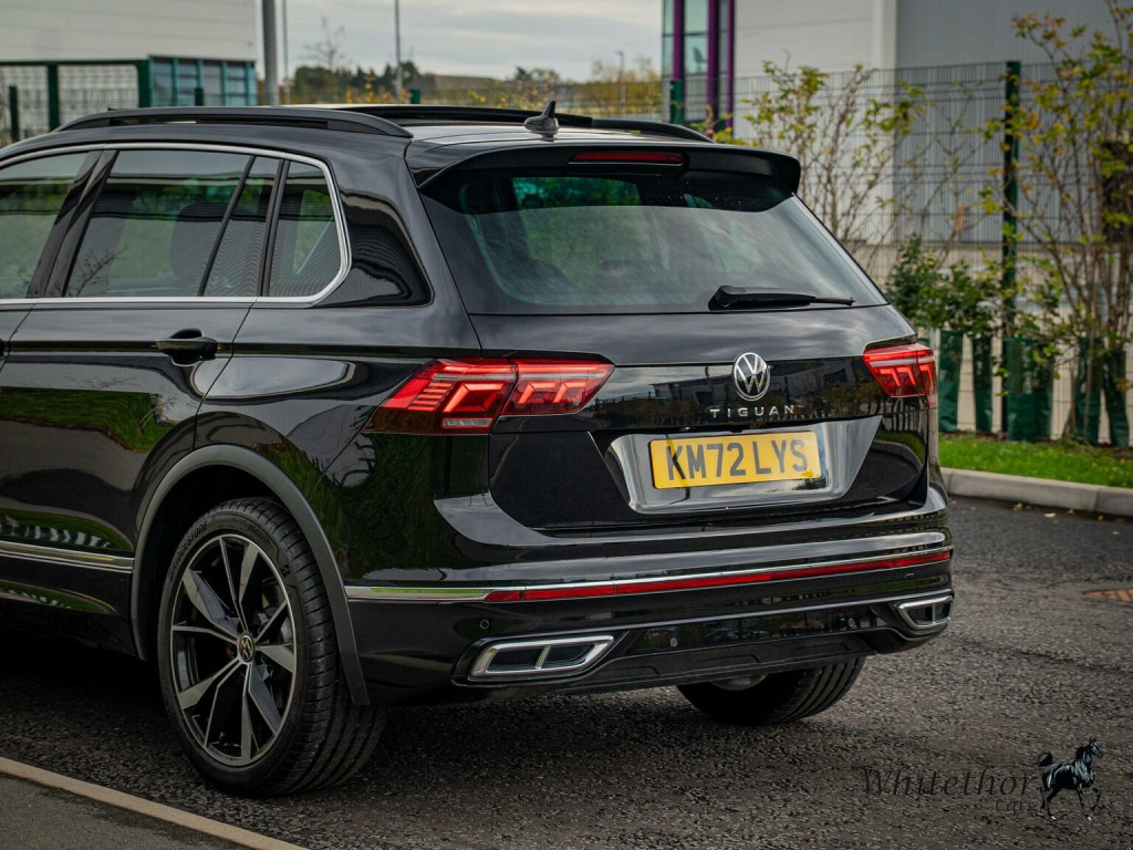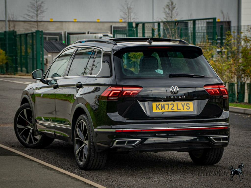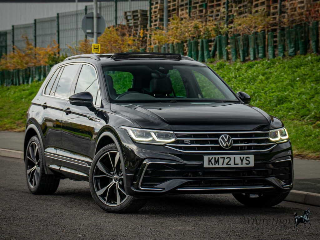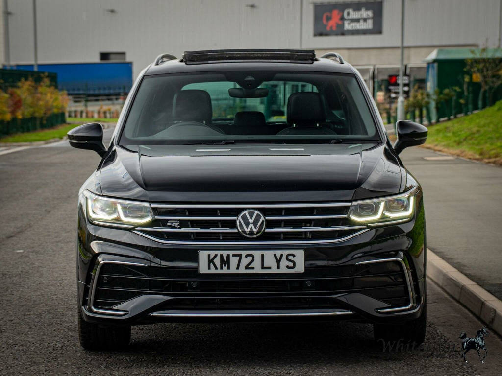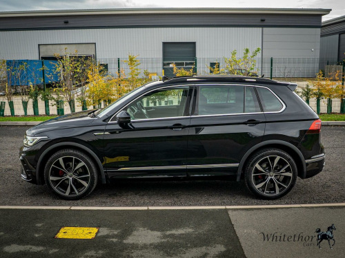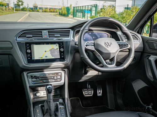 FREE DELIVERY WITHIN 200 MILES – Here we have a stunning Volkswagen Tiguan R-Line finsihed in Deep Black Pearl Effect. This being the R-Line came with fantastic spec from the factory, with things such as: 20in Misano Alloy Wheels in Black with Diamond-Turned Surface – Digital Cockpit Pro – Discover Media Navigation Infotainment System including Streaming and Internet – Ambient Lighting Pack – Adaptive Cruise Control ACC with Predictive Cruise Control – Heated Front Seats – Heated Leather Trimmed Three Spoke Multifunction Capacitive Touch-Sensitive Steering Wheels and Gear Knob – High Beam Assist – LED Plus Self-Levelling Dipped and Main Beam Headlights – Park Assist – and much more. , This example also boasts optional extras such as: Panoramic Sunroof – Vienna Leather in Black/Crystal Grey – Rear View Camera – Mobile Phone Interface and Inductive Charging Feature – Privacy Glass – and more. First 2 Services carried out by VW, Last serviced on 30.7k, First MOT due 11 January 2026 (If you would like this carried ahead of its due date please advise), 3 Month £2000 Claim Limit Warranty is included with the sale but the option to upgrade to a 12M, 24M, & 36M £5000 Claim Limit Nation Wide Premium Autoguard Warranty with Breakdown Cover is available. Multiple Finance Options, Competitive Part Exchange Prices. All Cars Are HPI, MotorCheck & Experian Clear. Further Vehicle Delivery Options Also Available. All Rights Reserved - Whitethor cars exercise all reasonable care and skill in providing you with vehicle information and data. The specification is attained through HPI, Experian & Autotrader VRM. Options Sold as packs may be shown individually, spec check is a guide so please contact us or physically verify any info that is crucial.