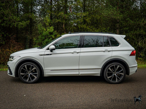 FREE DELIVERY WITHIN 200 MILES – Here we have a stunning Volkswagen Tiguan R-Line finished in Pure White. This being the R-Line means it comes with generous spec from the factory, but this example also boasts a plethora of optional extras such as: Sliding Panoramic Sunroof – Vienna Leather in Black/Crystal Grey – Rear View Camera – Full Size Spare Wheel – Voice Activation – and more. , Some highlights from the R-Line factory trim that this car comes with include: Digital Cockpit Pro – Adaptive Cruise Control ACC with Predictive Cruise Control – 20in Misano Alloy Wheels – Ambient Lighting Pack – App-Connect – Assistance Pack Plus – Discover Media Navigation Infotainment System including Streaming and Internet – Heated Front Seats – Heated Leather Trimmed Three Spoke Multifunction Capacitive Touch-Sensitive Steering Wheels and Gear Knob – Keyless Entry – LED Plus Self-Levelling Dipped and Main Beam Headlights – LED Rear Lights – and more. This car has had 4 services in total (2 VW, 2 Independent) last carried out at 52,000 miles. The MOT expires October 2026. 3 Month £2000 Claim Limit Warranty is included with the sale but the option to upgrade to a 12M, 24M, & 36M £5000 Claim Limit Nation Wide Premium Autoguard Warranty with Breakdown Cover is available. Multiple Finance Options, Competitive Part Exchange Prices. All Cars Are HPI, MotorCheck & Experian Clear. Further Vehicle Delivery Options Also Available. All Rights Reserved - Whitethor cars exercise all reasonable care and skill in providing you with vehicle information and data. The specification is attained through HPI, Experian & Autotrader VRM. Options Sold as packs may be shown individually, spec check is a guide so please contact us or physically verify any info that is crucial.