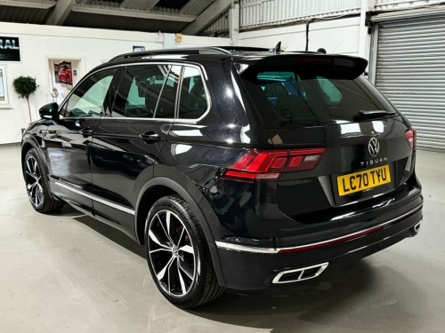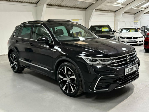 This 2020 Volkswagen Tiguan TSI R-Line presents an exceptional opportunity with its remarkably low mileage of just 14161 miles, a testament to its single owner history and clear vehicle history check. As a Euro 6 compliant model, it features a responsive 1.5 litre petrol engine, offering an engaging 0-60mph time of 9.2 seconds. The R-Line trim enhances its appeal with a host of desirable features, including a panoramic sunroof that floods the cabin with light, a convenient rear view camera for effortless parking, and the Discover Media navigation system complete with streaming and internet capabilities, all accessible via Bluetooth. Further enhancing your driving experience, this Tiguan is equipped with Side Assist, providing blind spot assistance and rear traffic alerts, alongside keyless entry for ultimate convenience. These carefully selected features, combined with its impressive performance and low mileage, clearly set this Volkswagen Tiguan apart from other vehicles in its class, offering a refined and well equipped package for any discerning driver. Panoramic Sunroof, 20in Alloy Wheels - Misano - Black - Dia, Rear View Camera, Deep Black, 1 x USB-C Connection, 12V Socket - Luggage Compartment, 12V Socket in Centre Console in Storage , 12V Socket on Rear of Front Centre Armre, Adaptive Cruise Control - ACC with Predi, Airbags, Alarm with Interior Protection with Deac, Ambient Lighting Pack, App-Connect, Assistance Pack Plus, Automatic Coming-Leaving Home Lighting F, Automatic Dimming Rear View Mirror, Automatic Hazard Lights Activation Under, Black Grained Lower Door Protectors with, Black Rooflining, Body Coloured Bumpers and Door Handles, Body-Coloured Door Mirrors with Integrat, Body-Coloured Roof Spoiler - Rear, Chrome Plated Electri