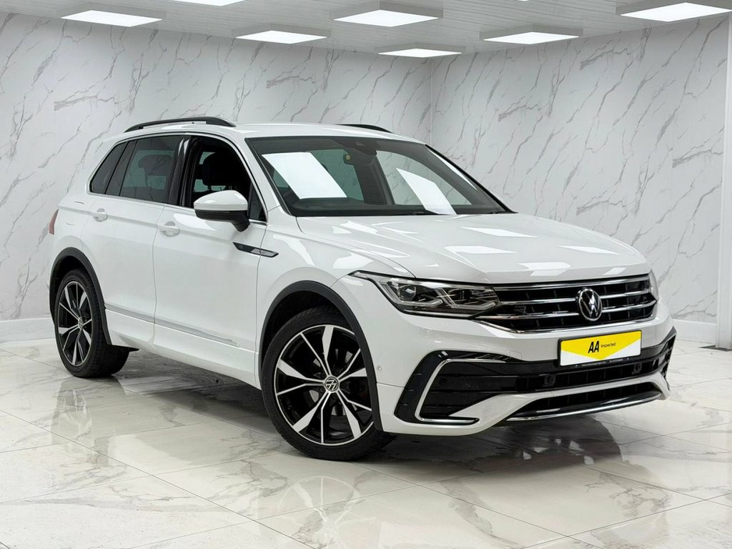This 2021 Volkswagen Tiguan TSI R-Line offers a superb ownership history, having been meticulously maintained by just one owner from new. This stylish SUV is powered by an efficient 1.5 litre petrol engine, meeting Euro 6 emissions standards. It comes equipped with the desirable Assistance Pack Plus, which includes Blind Spot Assistance and front and rear parking sensors, making manoeuvring effortless. Inside, you'll find a sophisticated 3 zone electronic climate control system, ensuring comfort for all occupants, and the Discover Media Navigation system with Bluetooth connectivity. Seamlessly integrate your smartphone using App-Connect, supporting both Android Auto and Apple CarPlay, and enjoy the convenience of keyless entry. The Tiguan TSI R-Line boasts impressive performance, accelerating from 0-60mph in a brisk 9.2 seconds, demonstrating its responsive nature. This particular model stands out with its generous boot space, offering ample room for luggage, shopping, or sports equipment, a practical advantage over many other vehicles in its class. The combination of its advanced technology, comfortable interior, and strong performance makes this Tiguan a compelling choice for those seeking a well appointed and capable family car. Pure White, 12V Socket in Centre Console in Storage , 12V Socket in Luggage Compartment, 12V Socket on Rear of Front Centre Armre, 2 LED Reading Lights in Front and 2 in R, 2 USB-C Ports in the Front and 1 USB-C C, 20in Alloy Wheels - Misano - Black - Dia, 3 Rear Three-Point Seat Belts with Tensi, Adaptive Cruise Control - ACC with Predi, Air Conditioning - 3 Zone Electronic Cli, Airbags, Ambient Lighting Pack, Anti-Theft Alarm System with Interior Mo, Anti-Theft Wheel Bolts, App-Connect, Assistance Pack Plus, Automatic Coming-Leaving Home Lighting F, Automatic Dimming Rear View Mirror, Automatic Hazard Lights Activation Under, Black Grained Lower Door Protectors with, Black Rooflining, Body